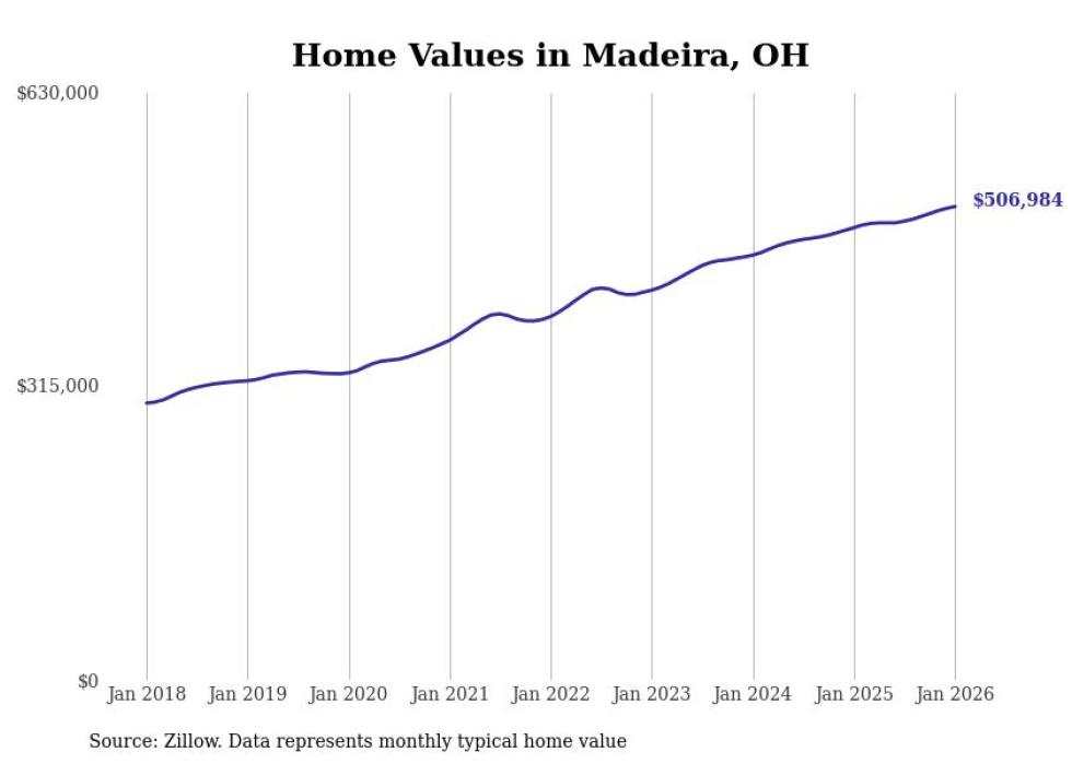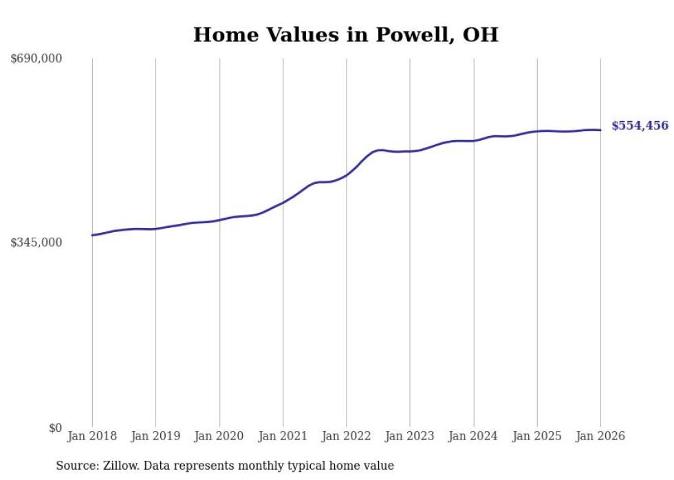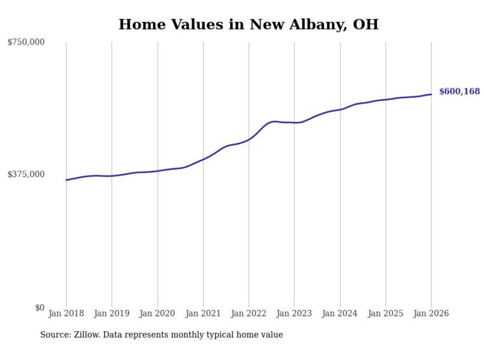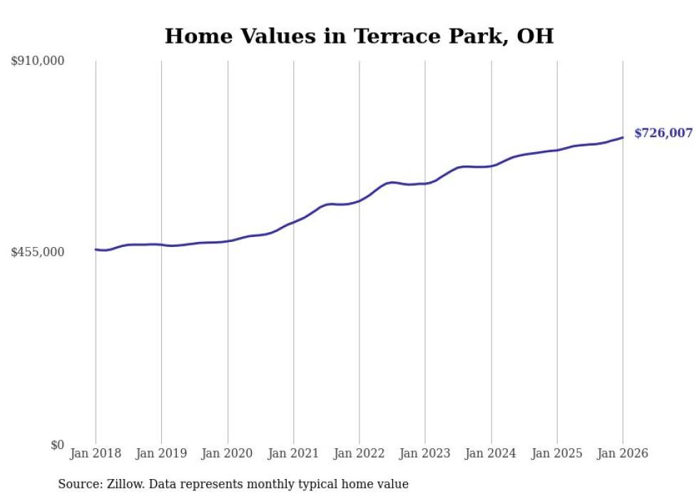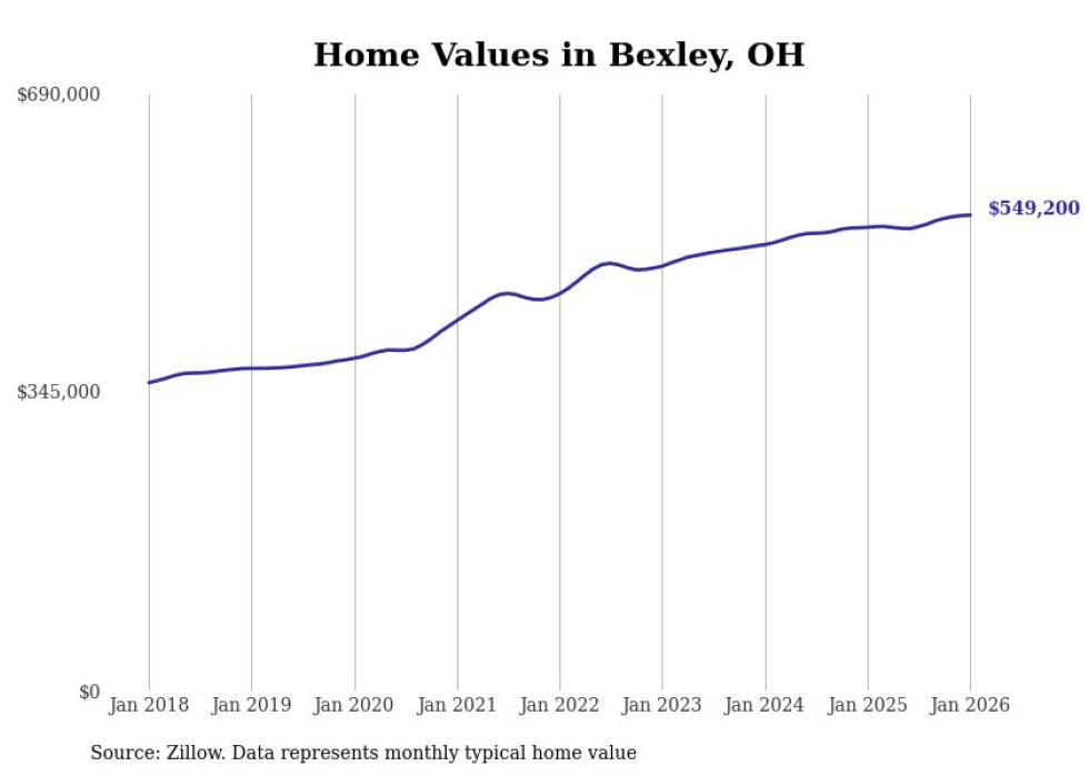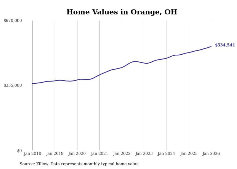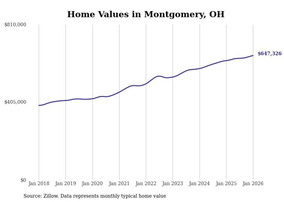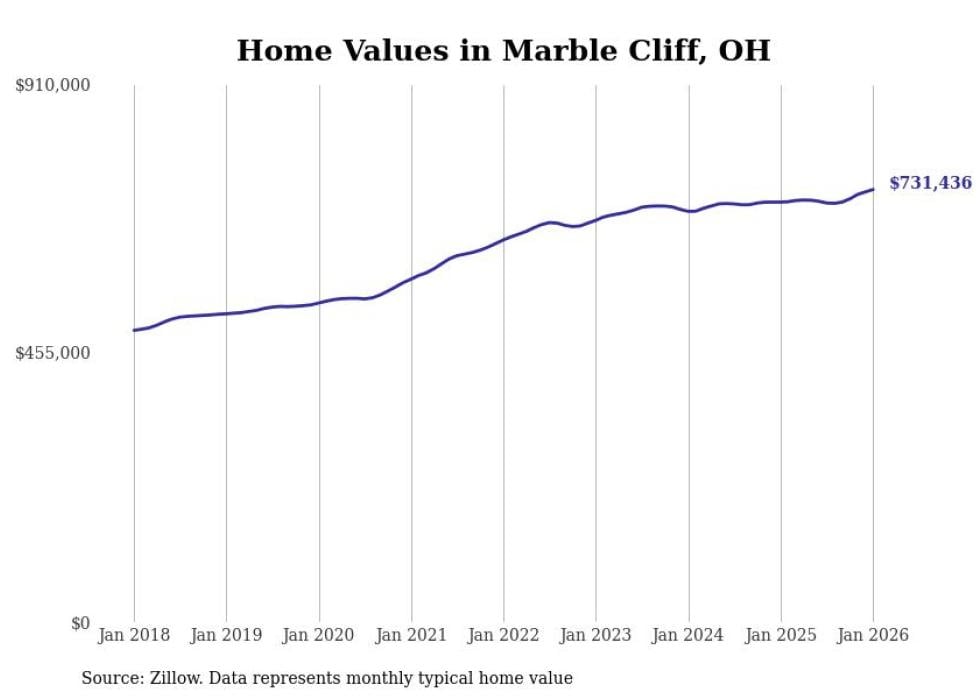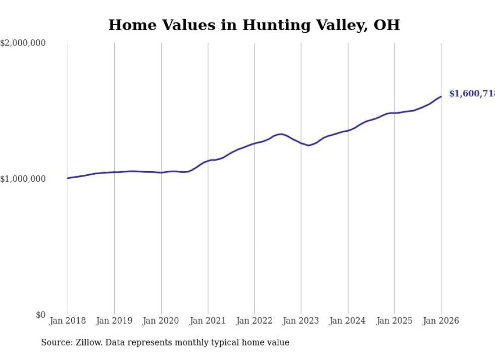 Stacker compiled a list of cities with the most expensive homes in Ohio using data from Zillow. Cities are ranked by the Zillow Home Values Index for all homes as of January 2026. The charts in this story were created automatically using Matplotlib.