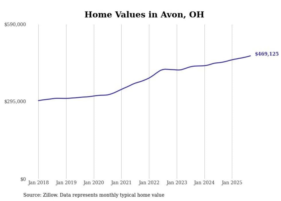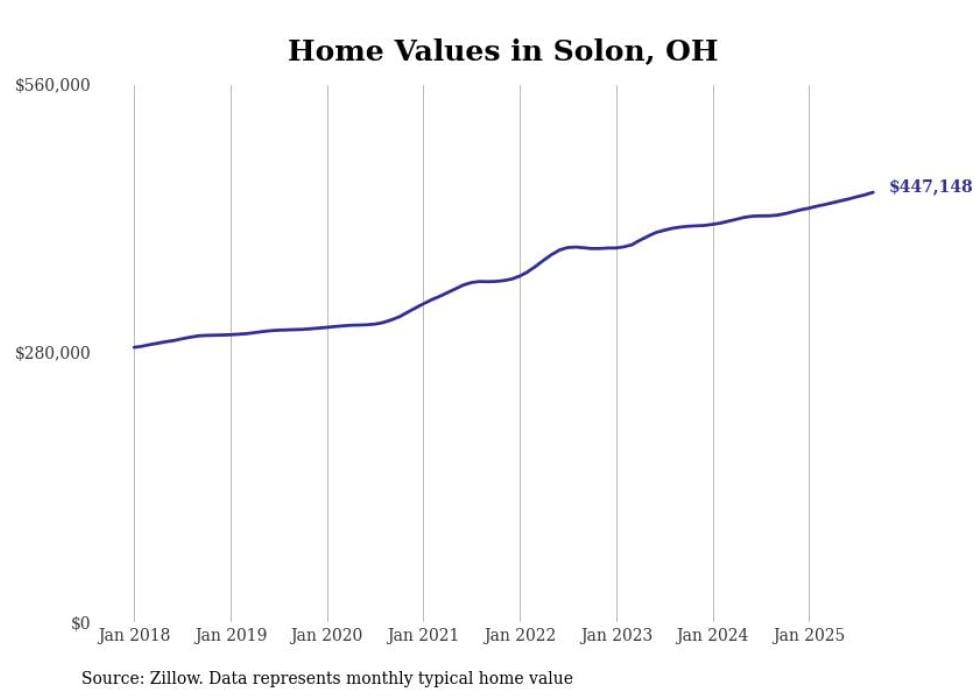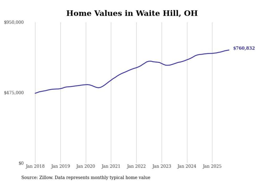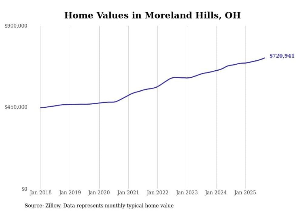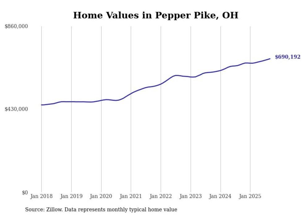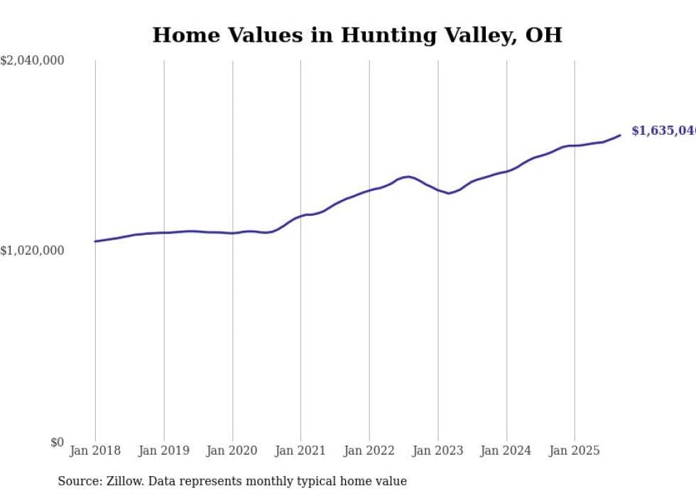 Stacker compiled a list of cities with the most expensive homes in the Cleveland-Elyria, OH metro area using data from Zillow. Charts show the monthly typical home value since January 2018.