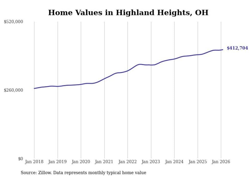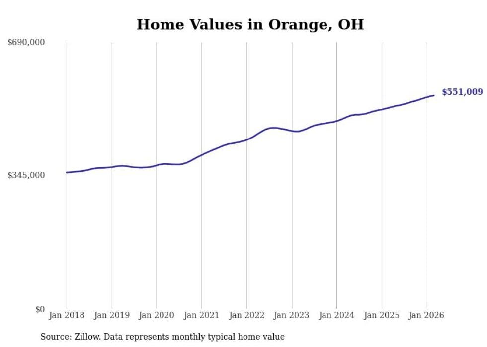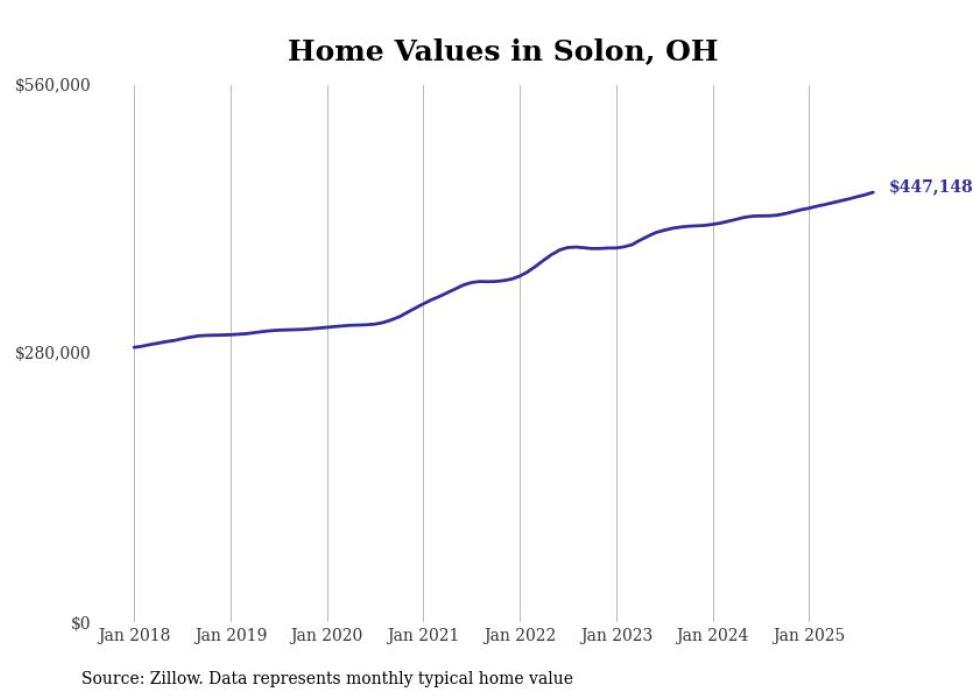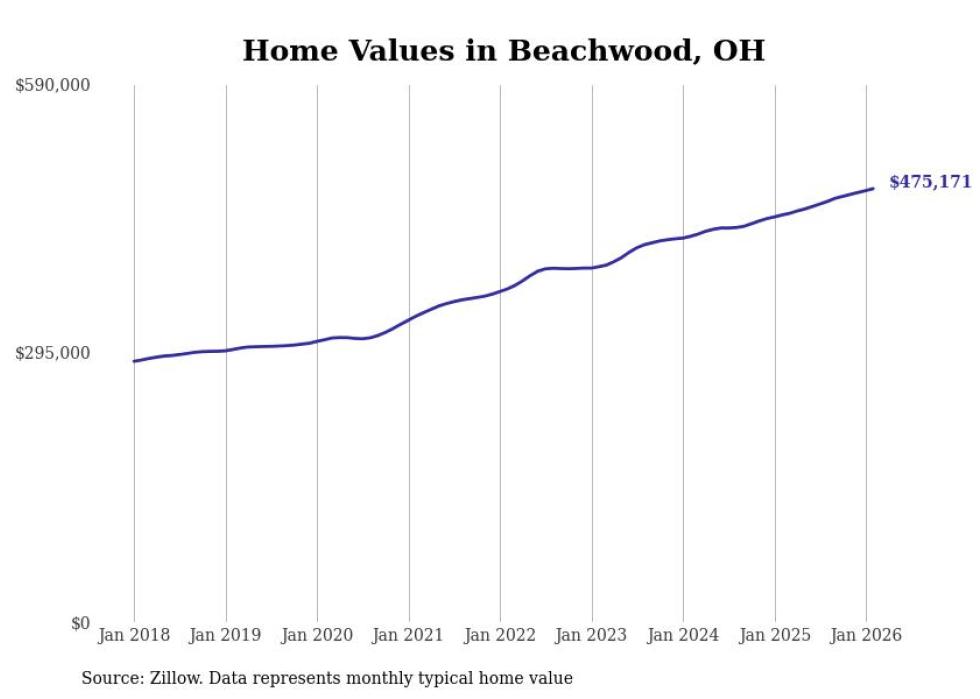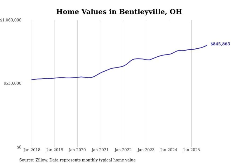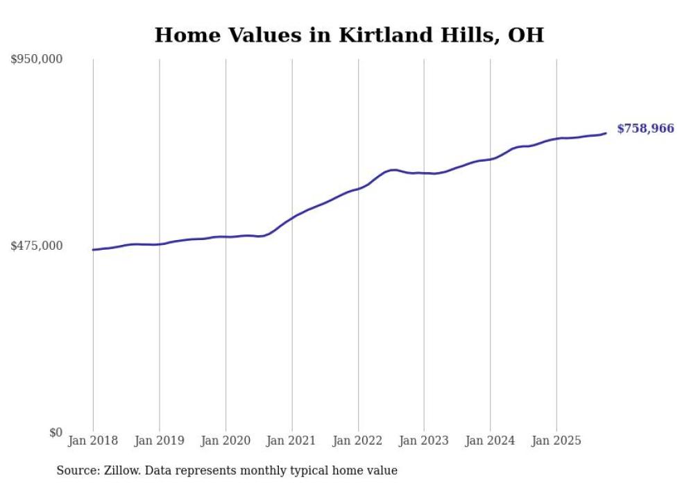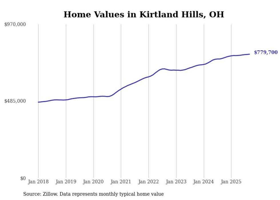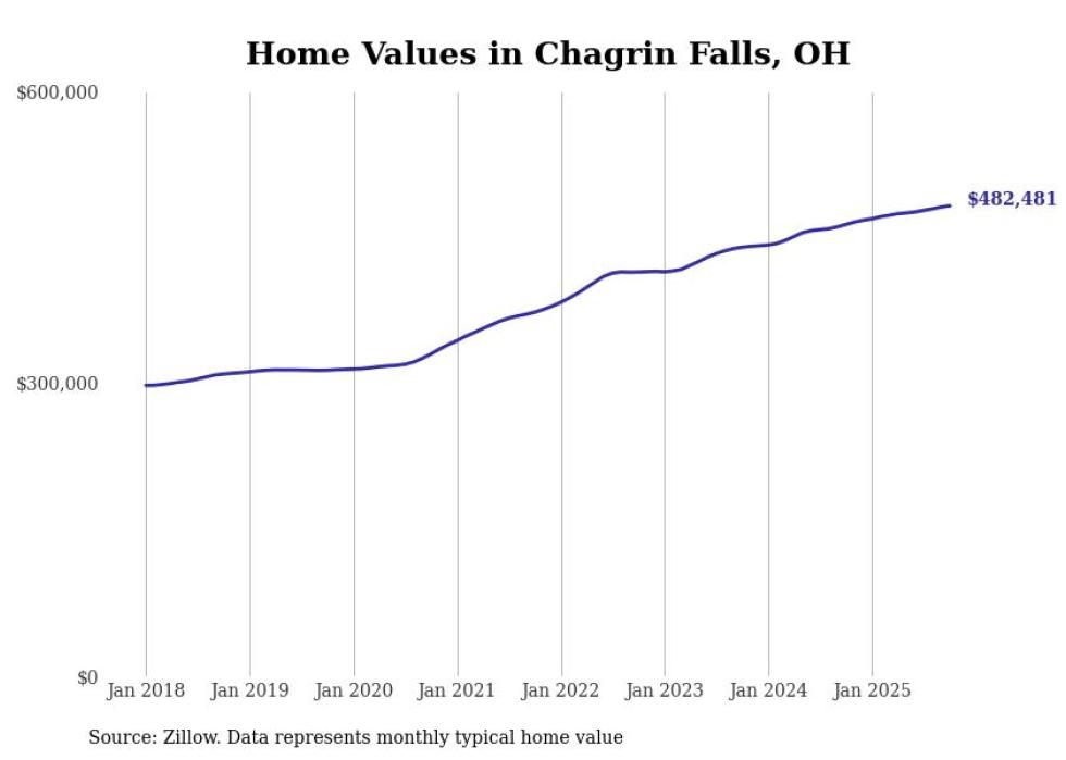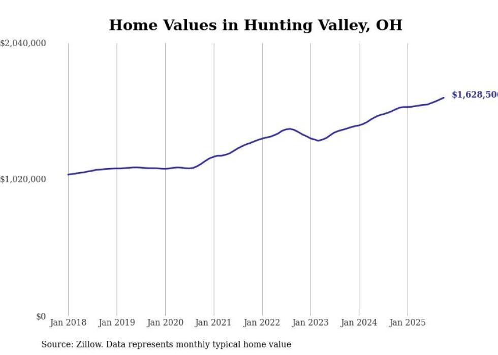 Stacker compiled a list of cities with the most expensive homes in the Cleveland metro area using data from Zillow. Charts show the monthly typical home value since January 2018. Data was available for 109 cities and towns.
