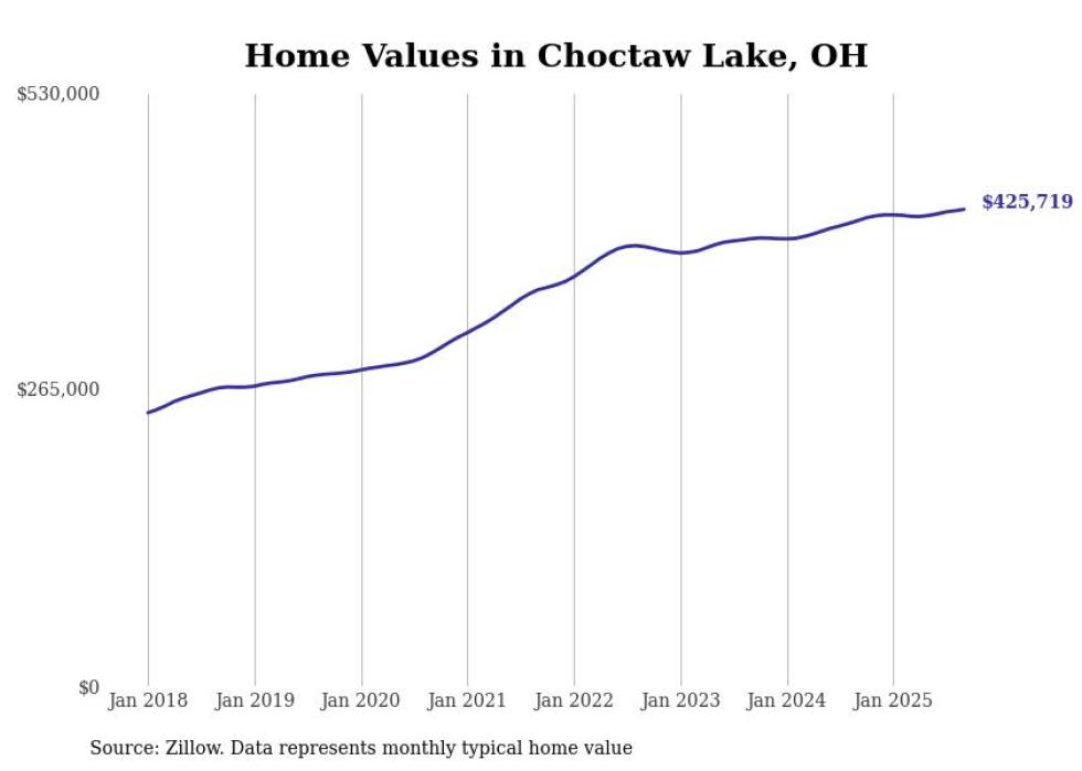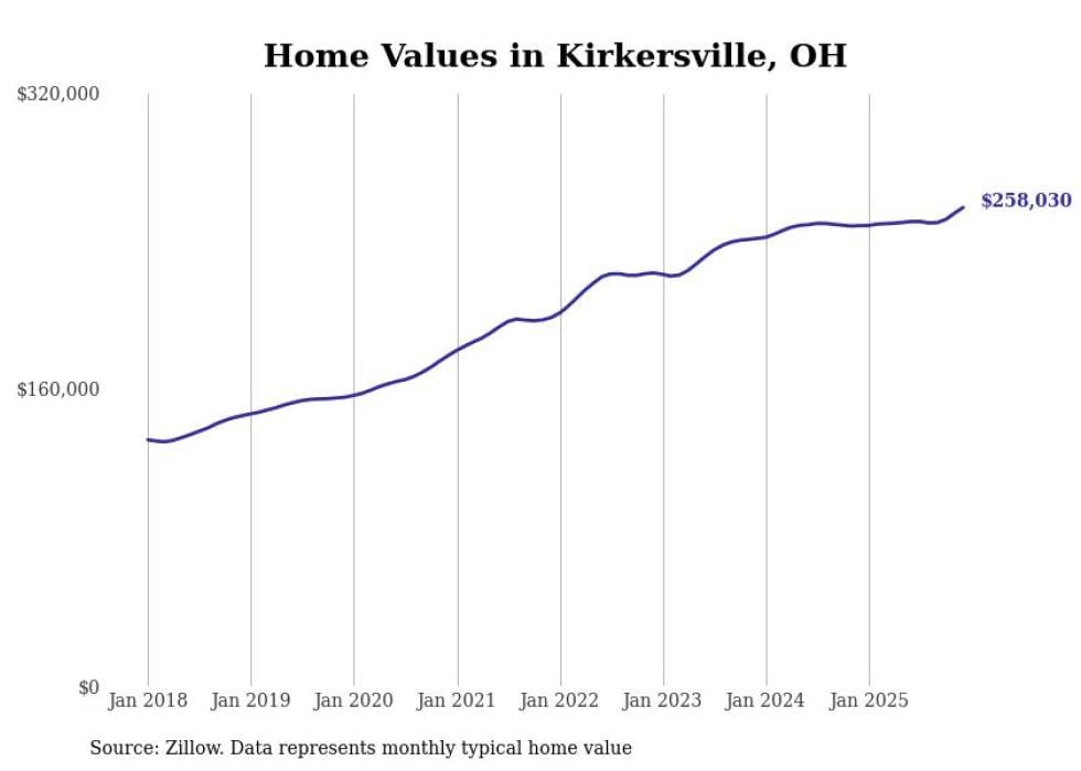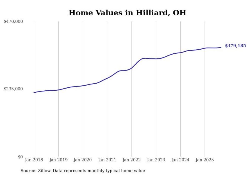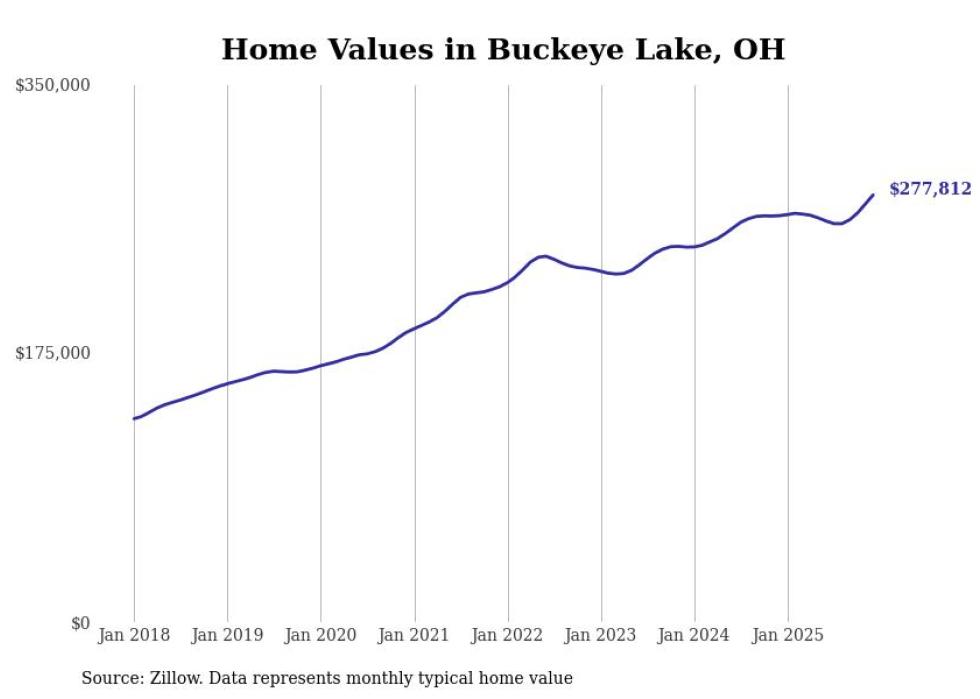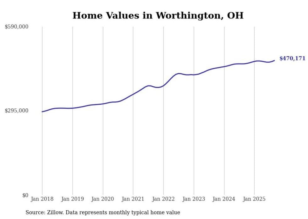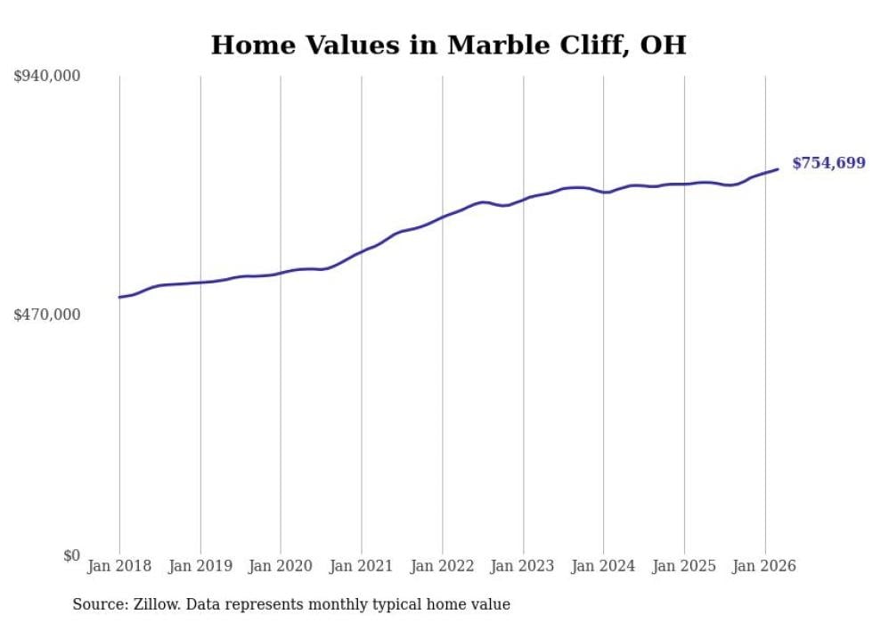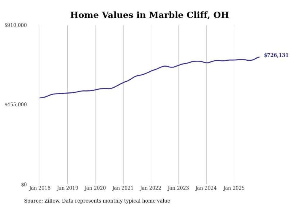 Stacker compiled a list of cities with the most expensive homes in the Columbus, OH metro area using data from Zillow. Charts show the monthly typical home value since January 2018.
