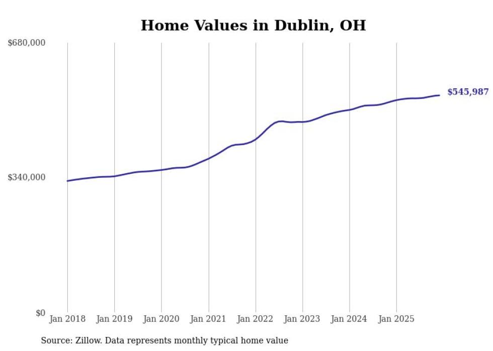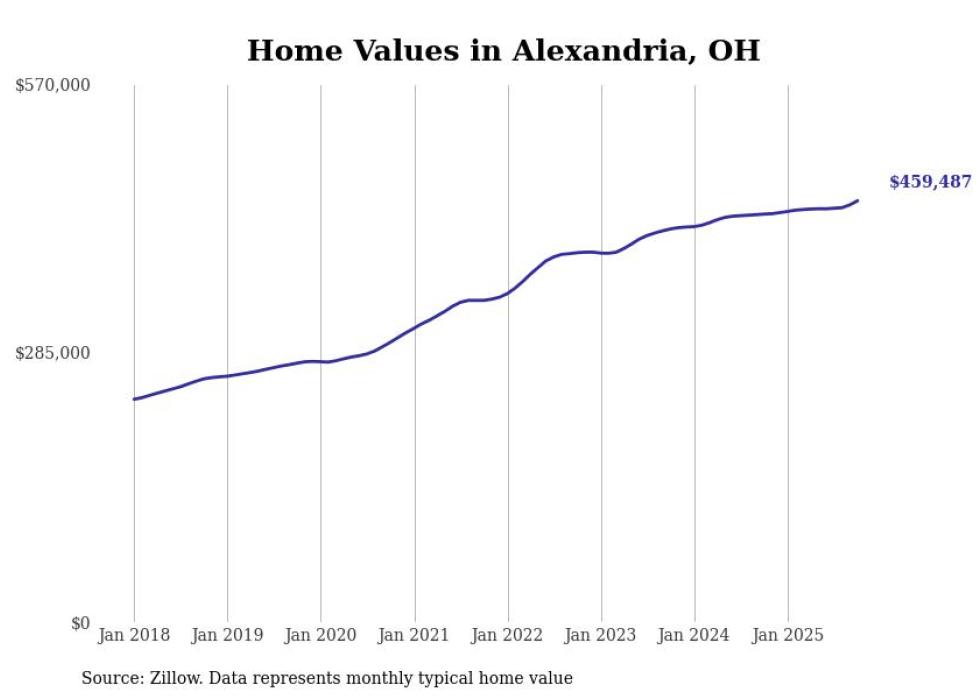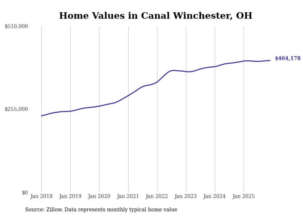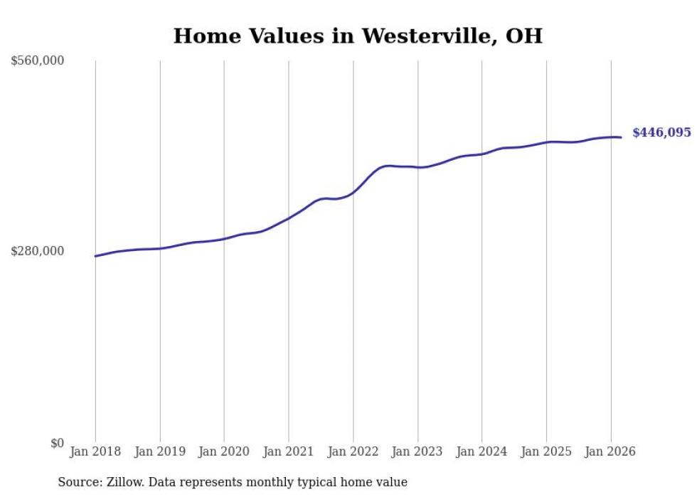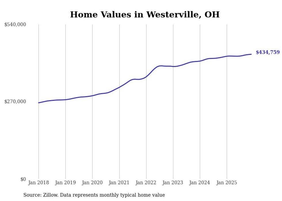 Stacker compiled a list of cities with the most expensive homes in the Columbus metro area using data from Zillow. Charts show the monthly typical home value since January 2018. Data was available for 98 cities and towns.