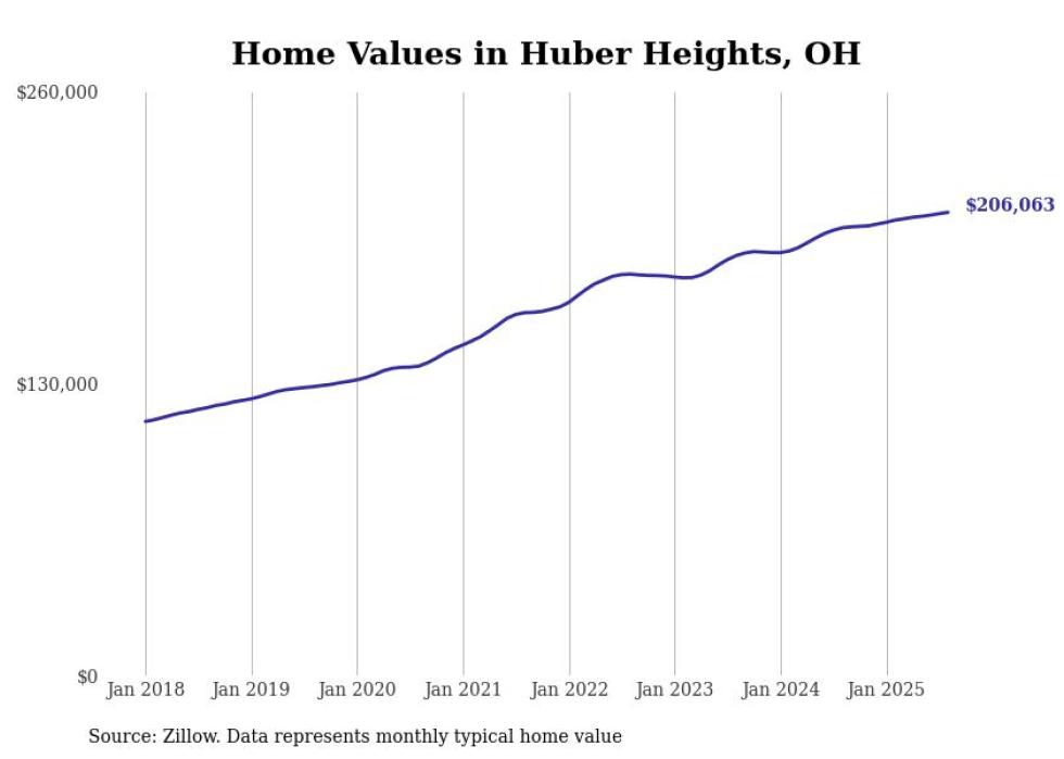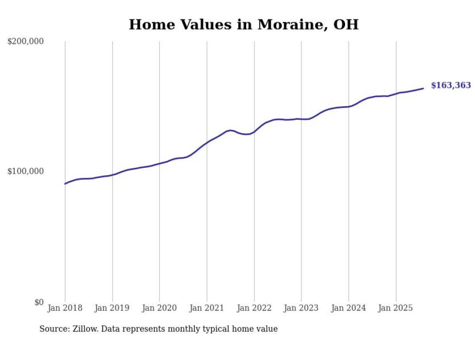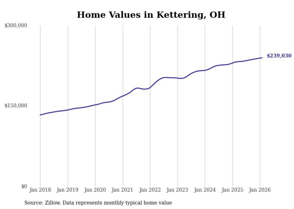 Stacker compiled a list of cities with the most expensive homes in the Dayton-Kettering, OH metro area using data from Zillow. Charts show the monthly typical home value since January 2018.