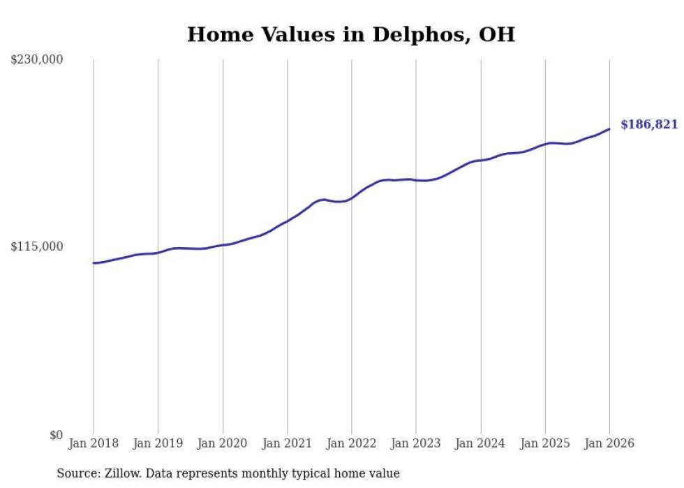 Stacker compiled a list of cities with the most expensive homes in the Lima, OH metro area using data from Zillow. Charts show the monthly typical home value since January 2018.