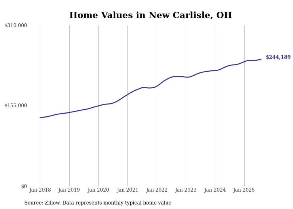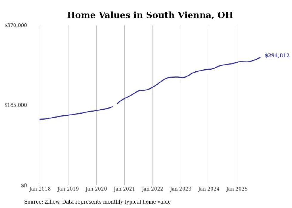 Stacker compiled a list of cities with the most expensive homes in the Springfield, Ohio metro area using data from Zillow. Charts show the monthly typical home value since January 2018. All 8 cities and towns with data available were included in the list.