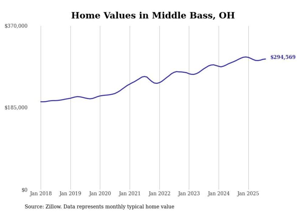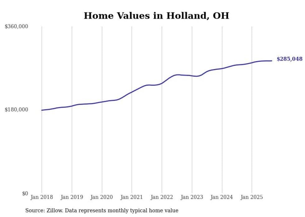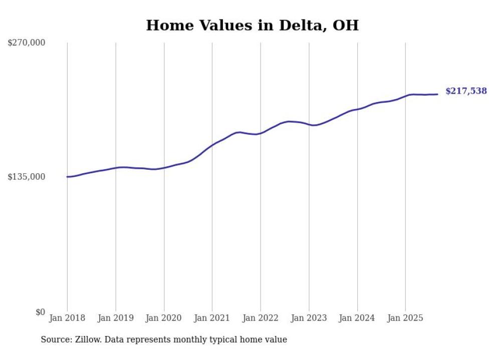 Stacker compiled a list of cities with the most expensive homes in the Toledo, OH metro area using data from Zillow. Charts show the monthly typical home value since January 2018.