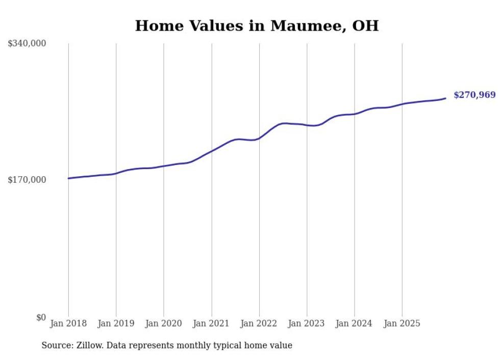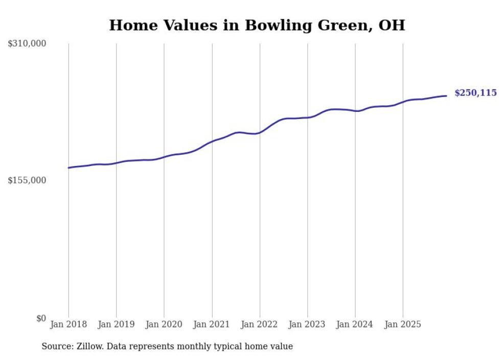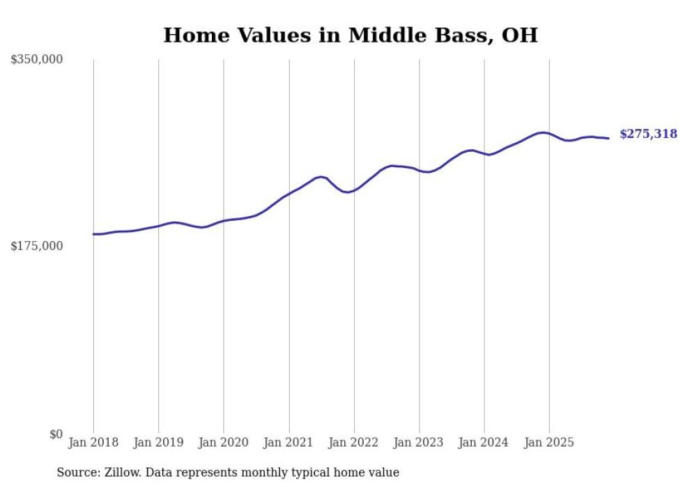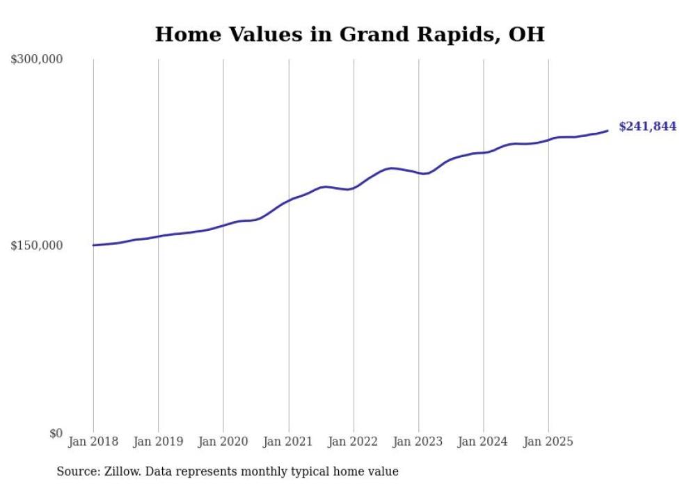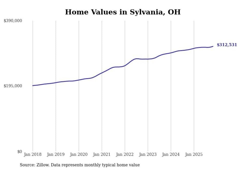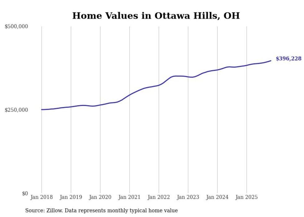 Stacker compiled a list of cities with the most expensive homes in the Toledo metro area using data from Zillow. Charts show the monthly typical home value since January 2018. Data was available for 49 cities and towns.