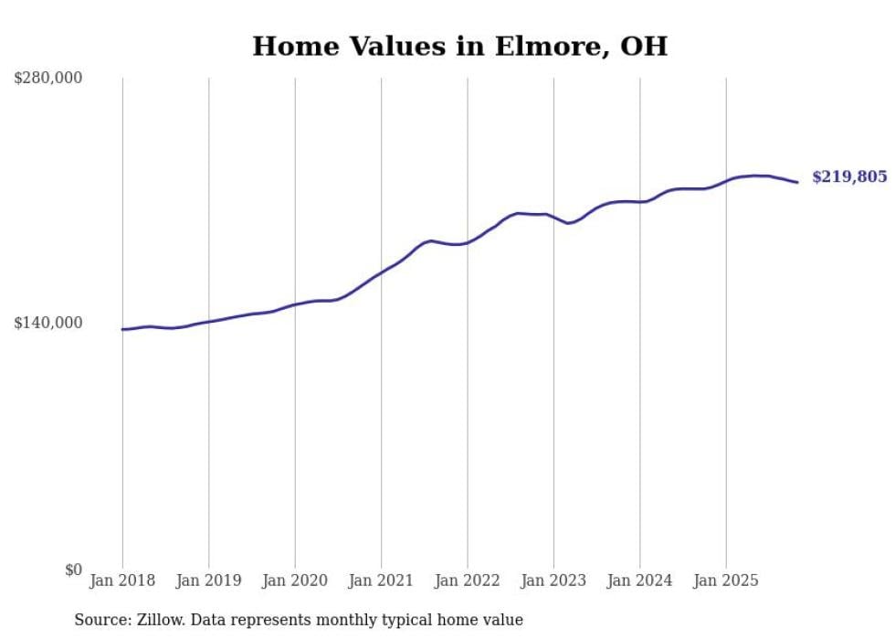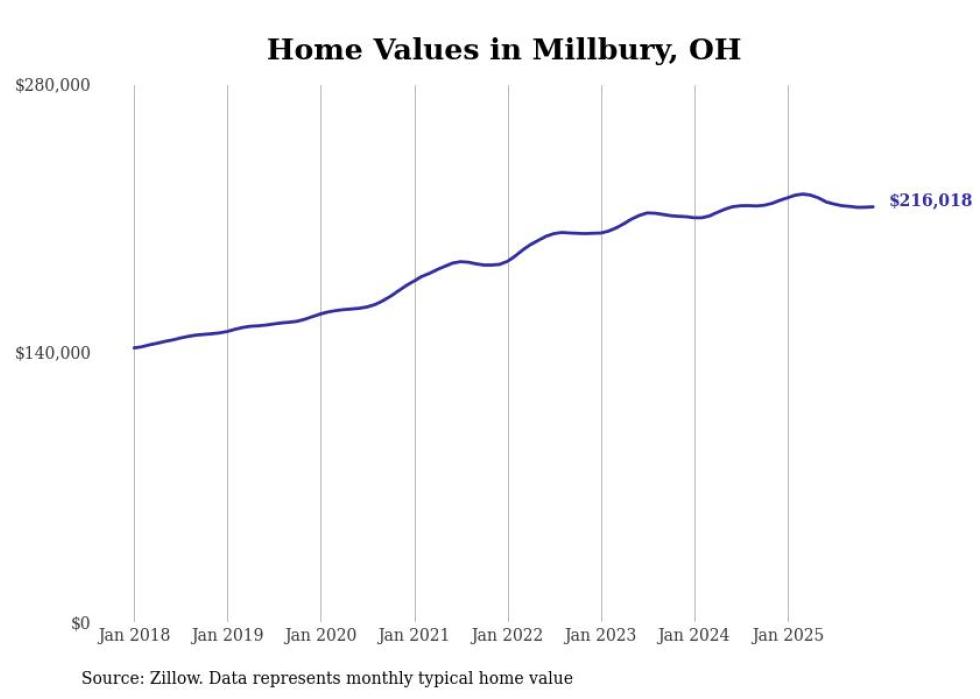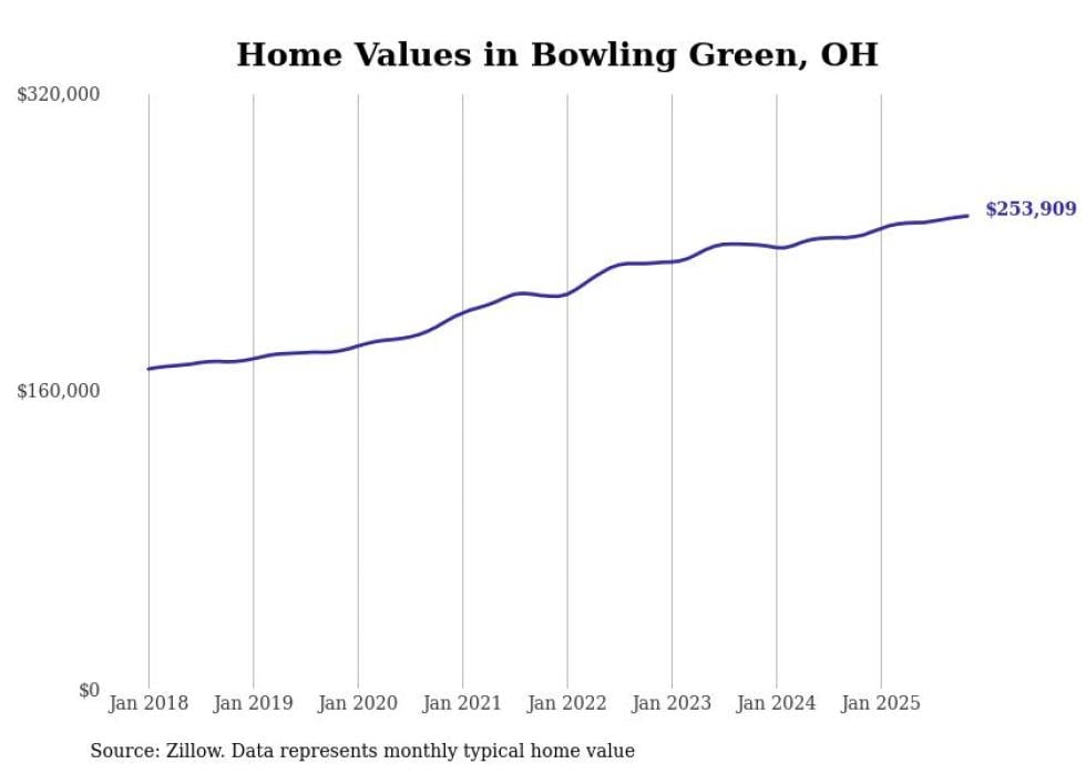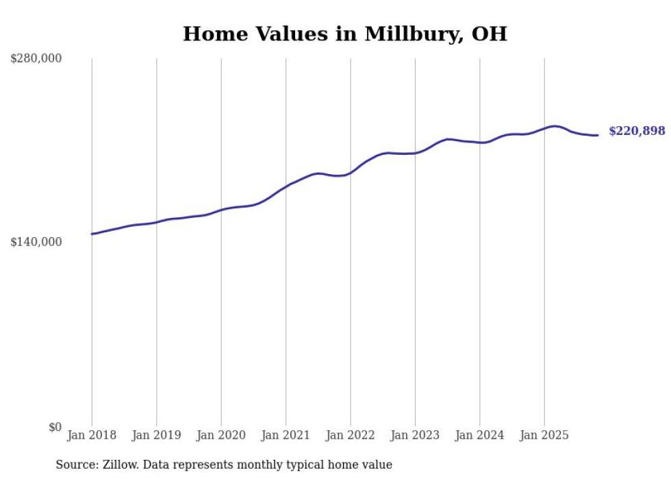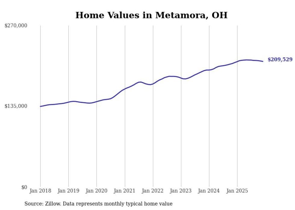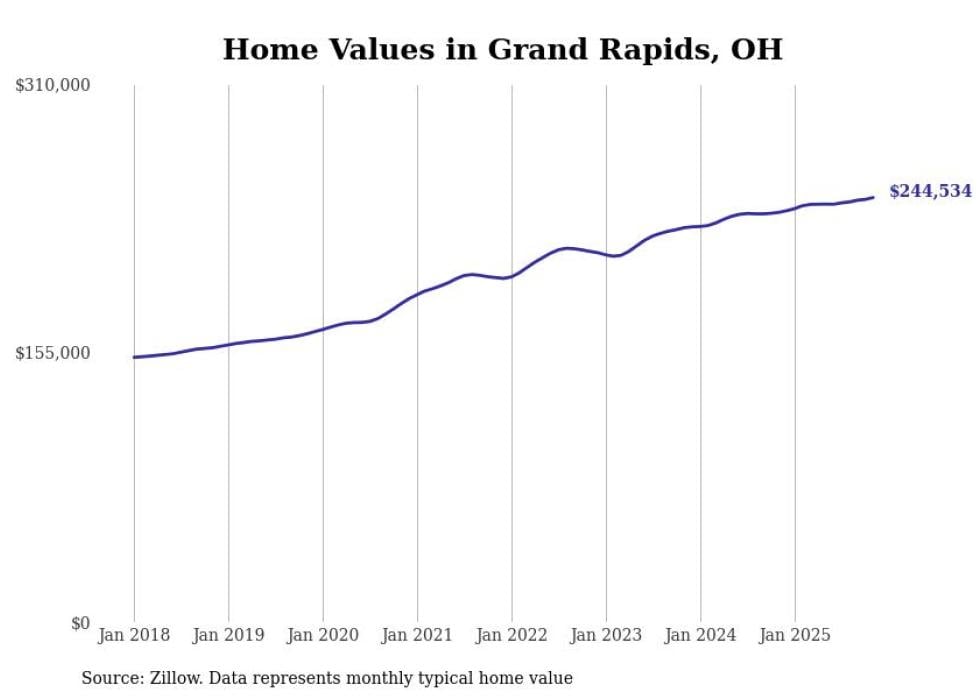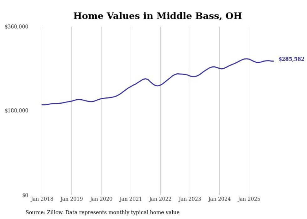 Stacker compiled a list of cities with the most expensive homes in the Toledo metro area using data from Zillow. Charts show the monthly typical home value since January 2018. Data was available for 49 cities and towns.