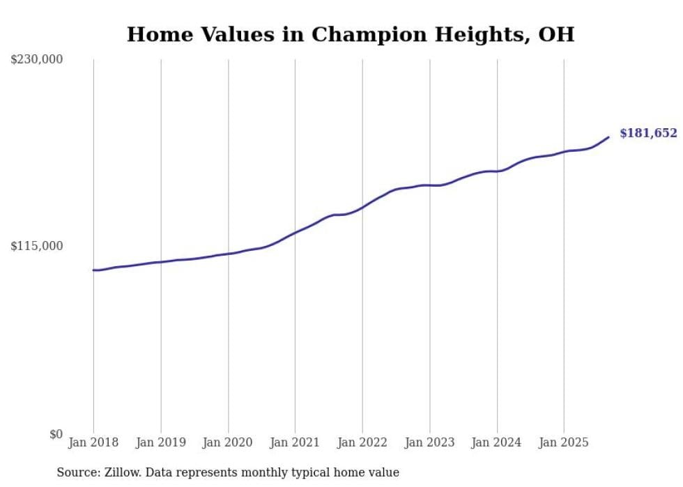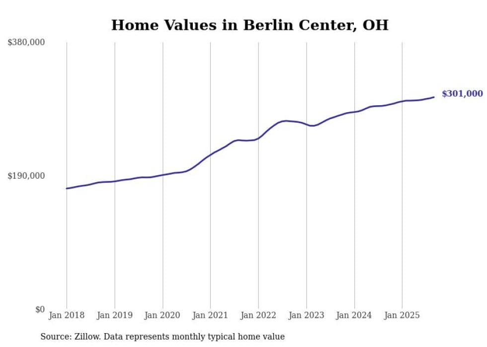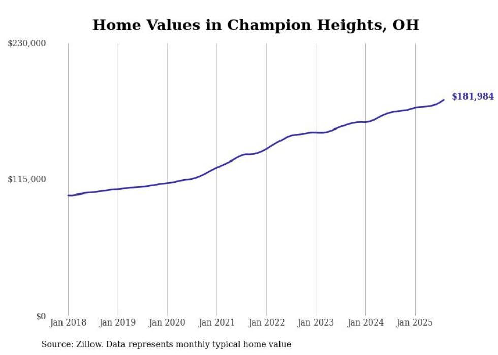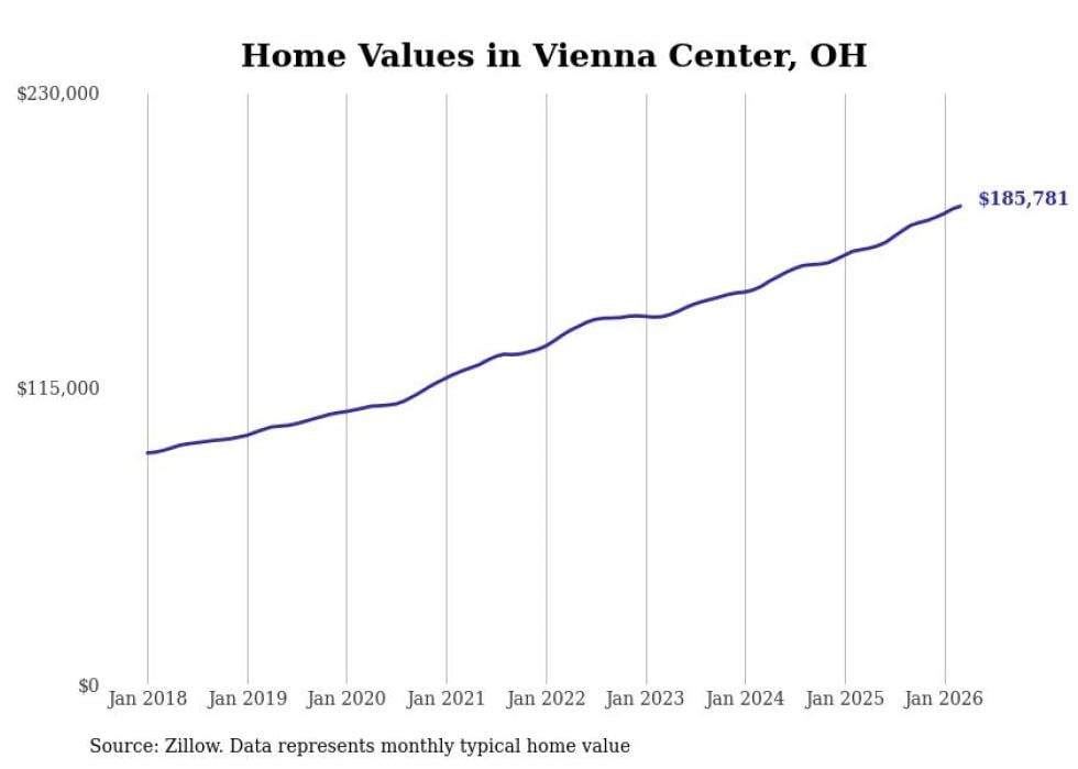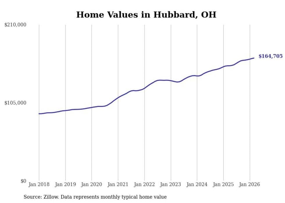 Stacker compiled a list of cities with the most expensive homes in the Youngstown-Warren-Boardman, OH-PA metro area using data from Zillow. Charts show the monthly typical home value since January 2018.