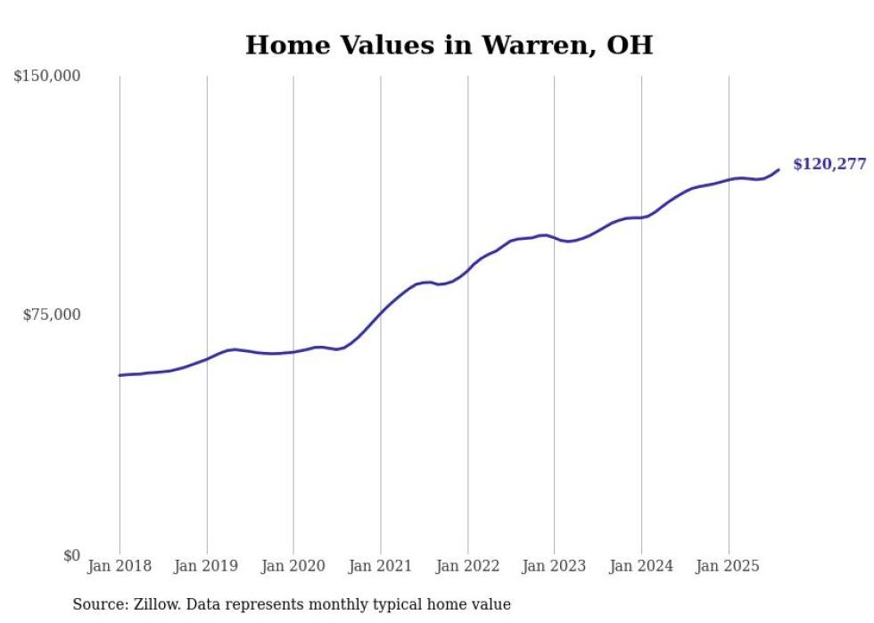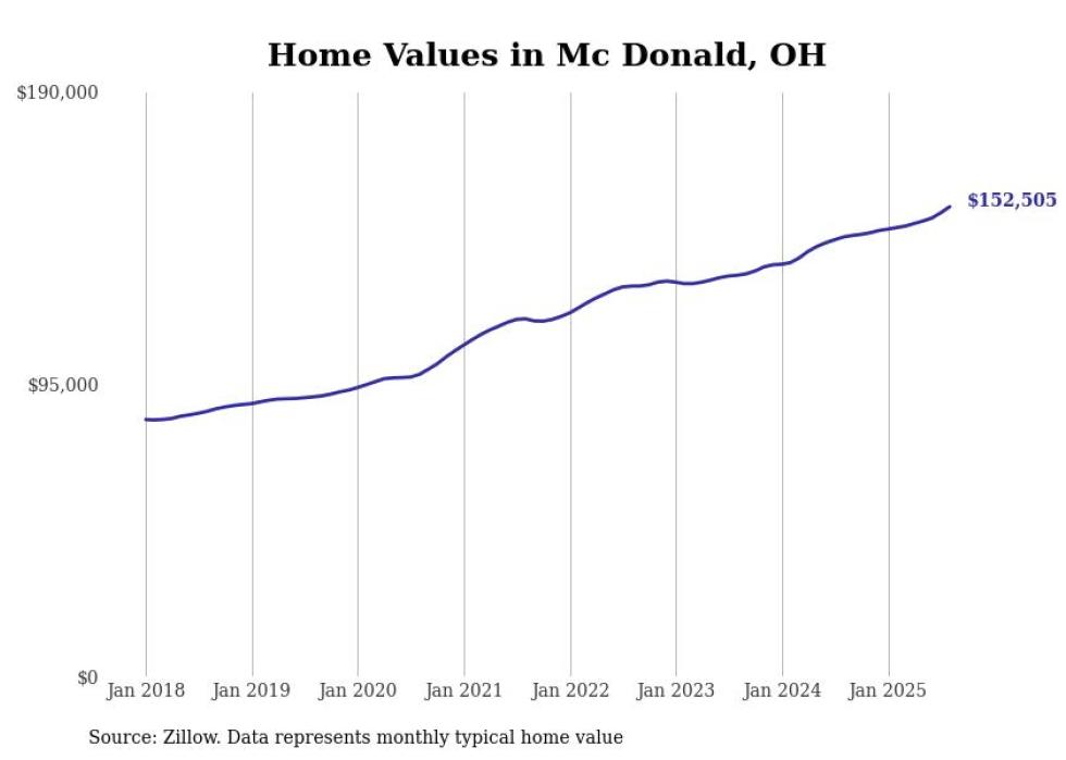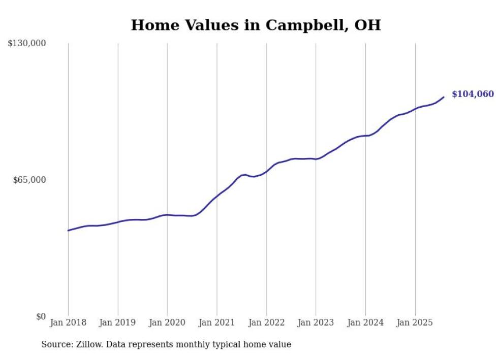 Cities with the fastest-growing home prices in the Youngstown metro area