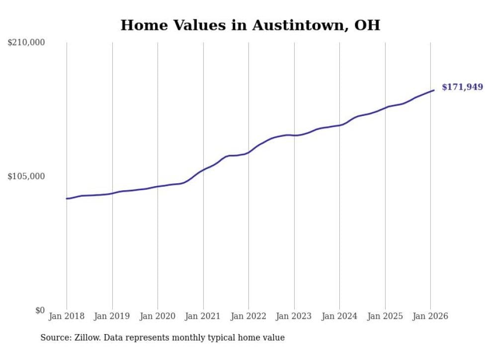 Stacker compiled a list of cities with the most expensive homes in the Youngstown metro area using data from Zillow. Charts show the monthly typical home value since January 2018. Data was available for 47 cities and towns.