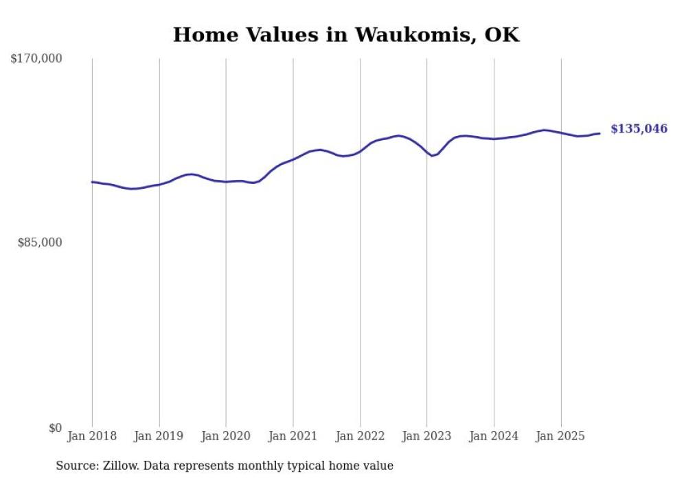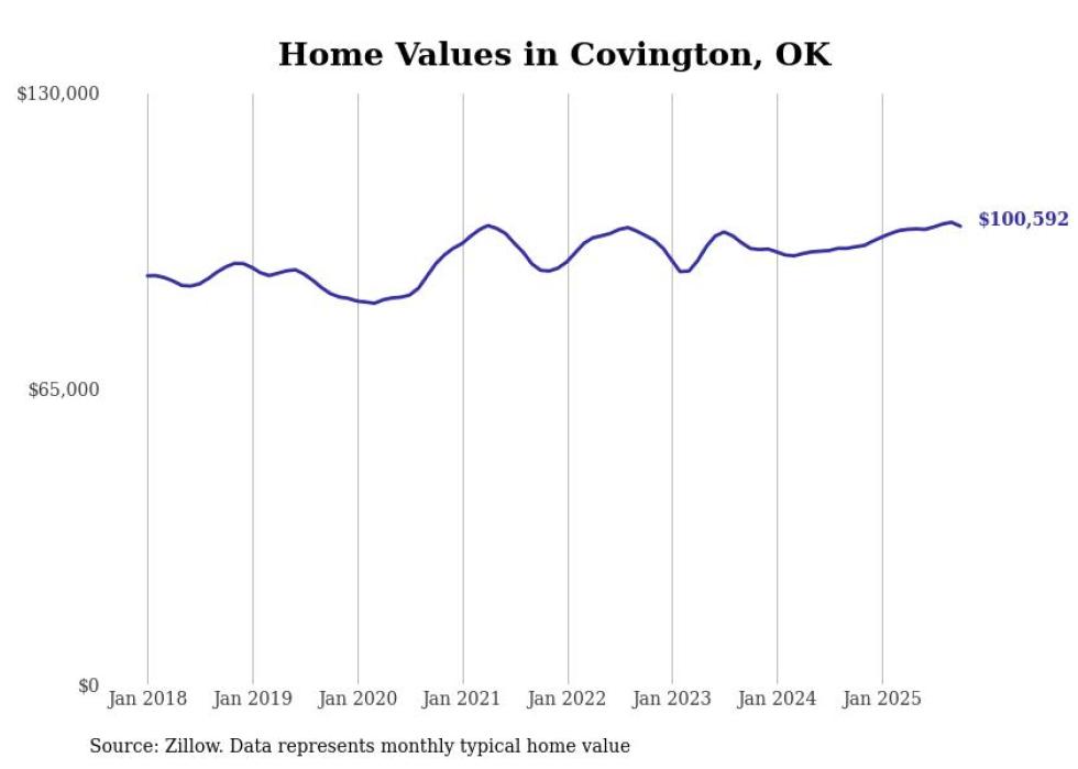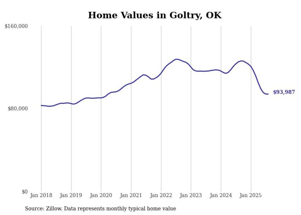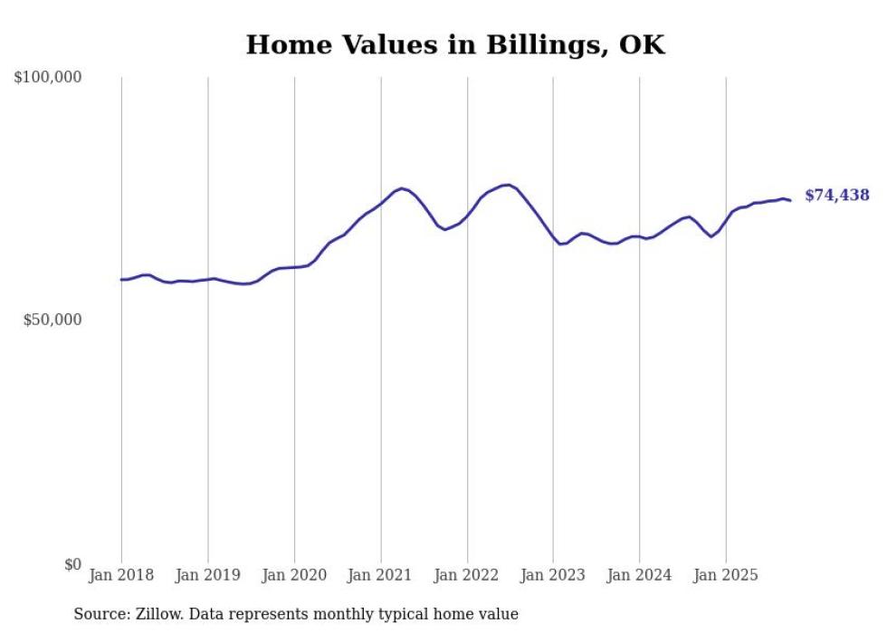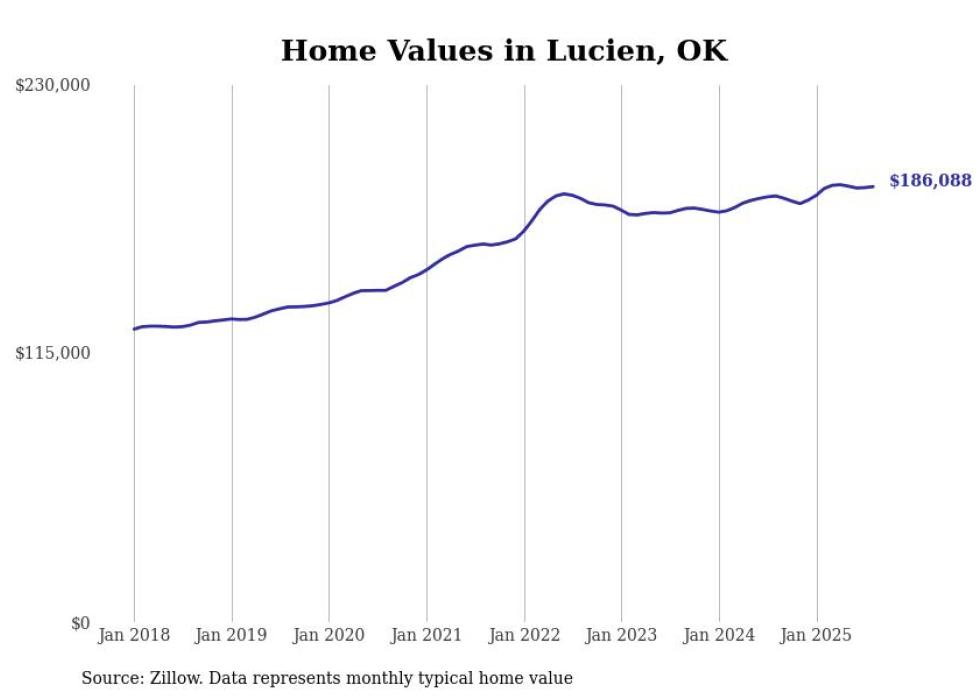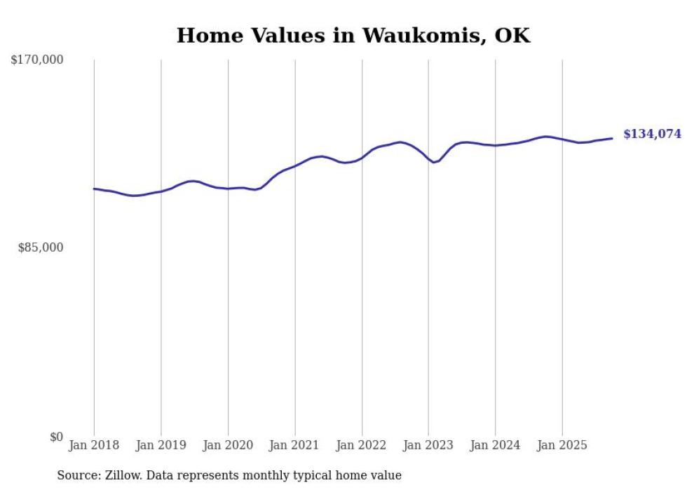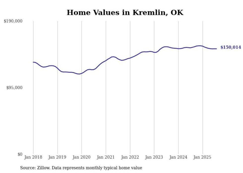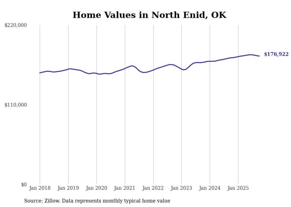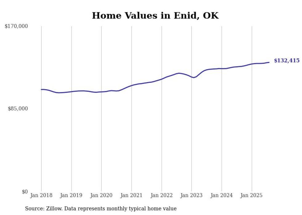 Stacker compiled a list of cities with the most expensive homes in the Enid, OK metro area using data from Zillow. Charts show the monthly typical home value since January 2018.