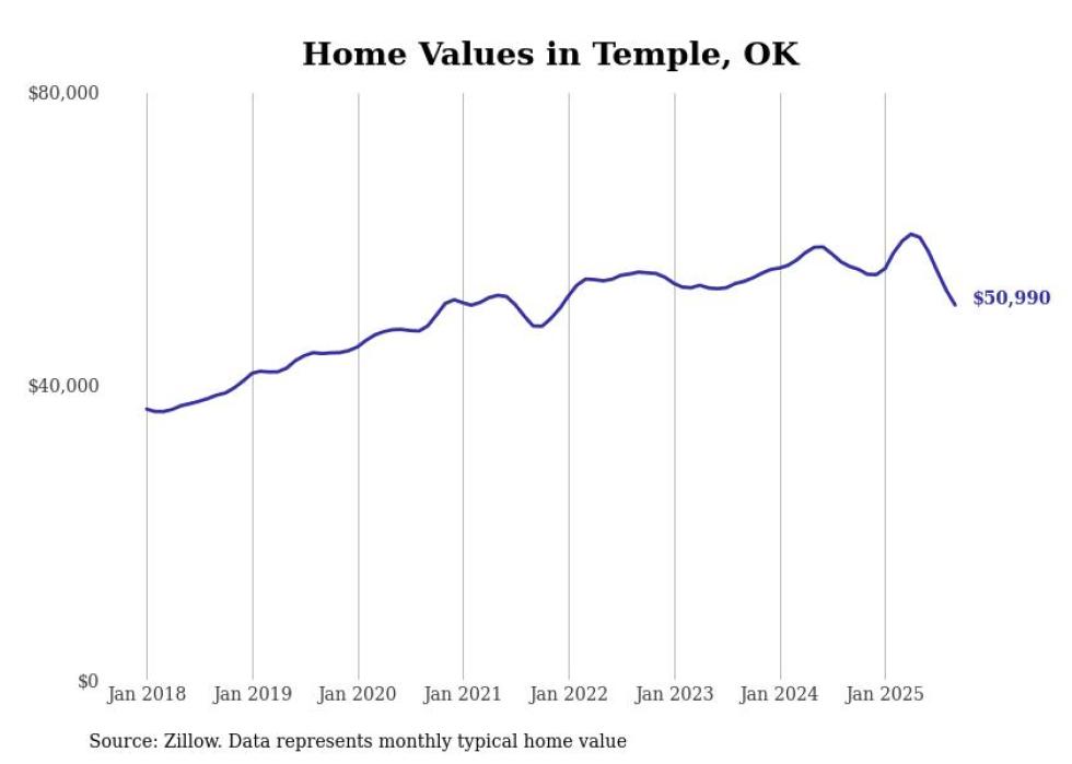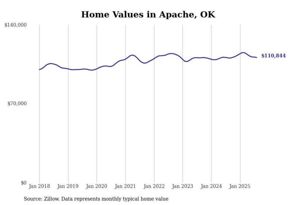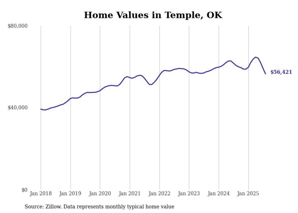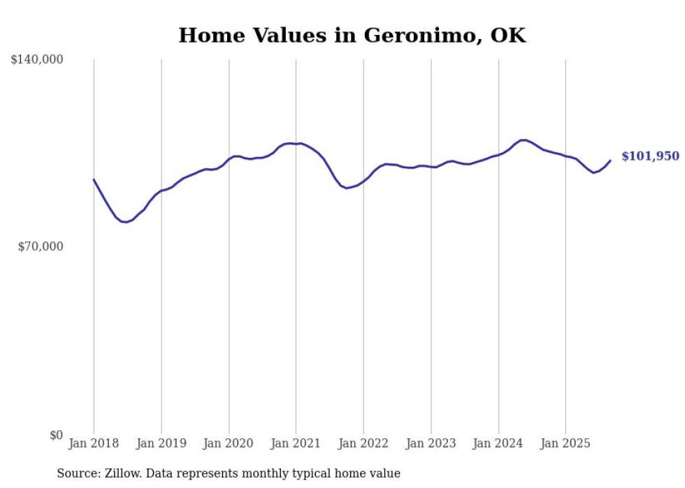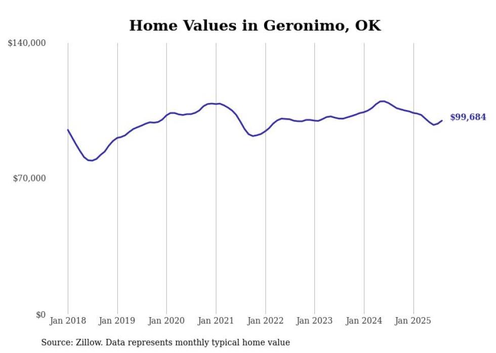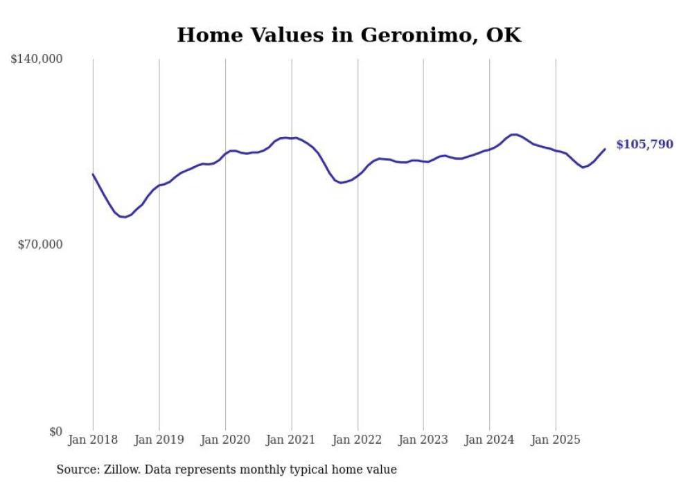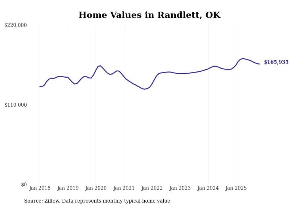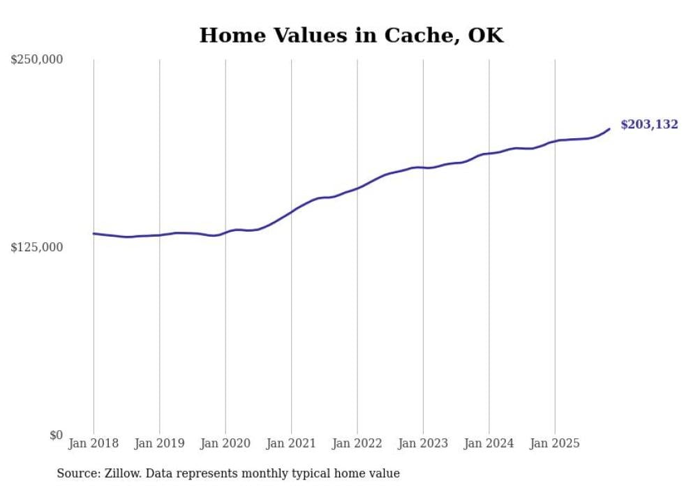 Stacker compiled a list of cities with the most expensive homes in the Lawton, OK metro area using data from Zillow. Charts show the monthly typical home value since January 2018.