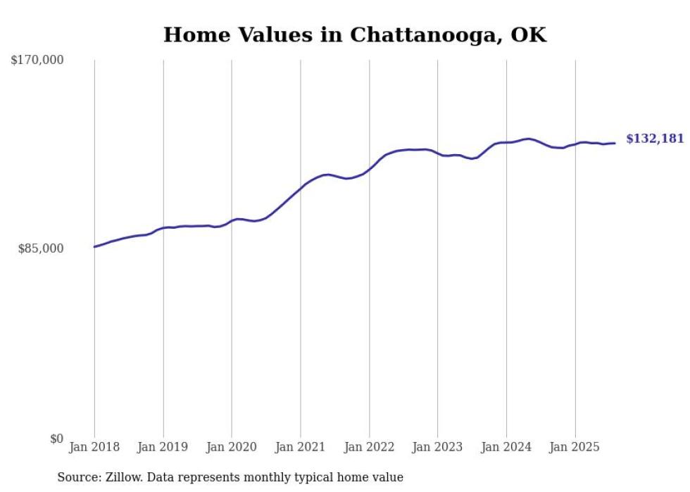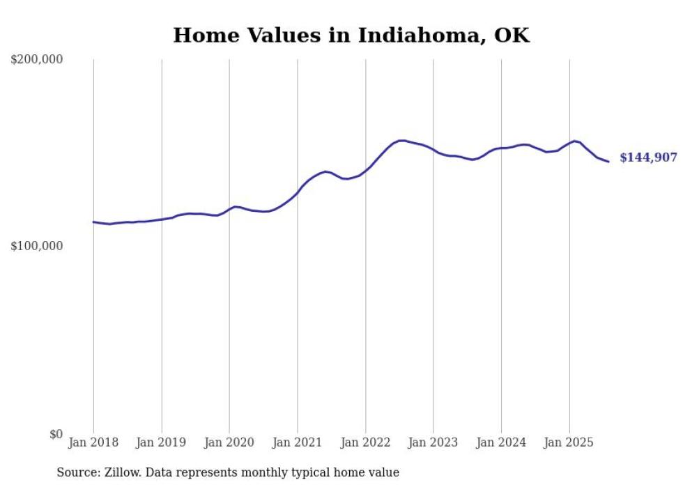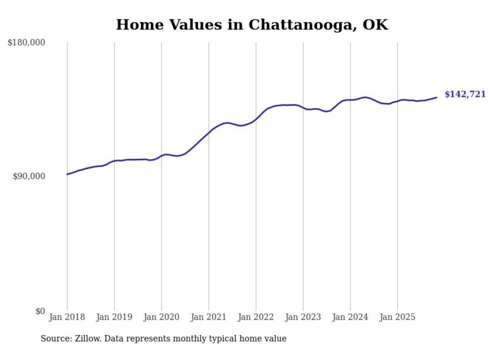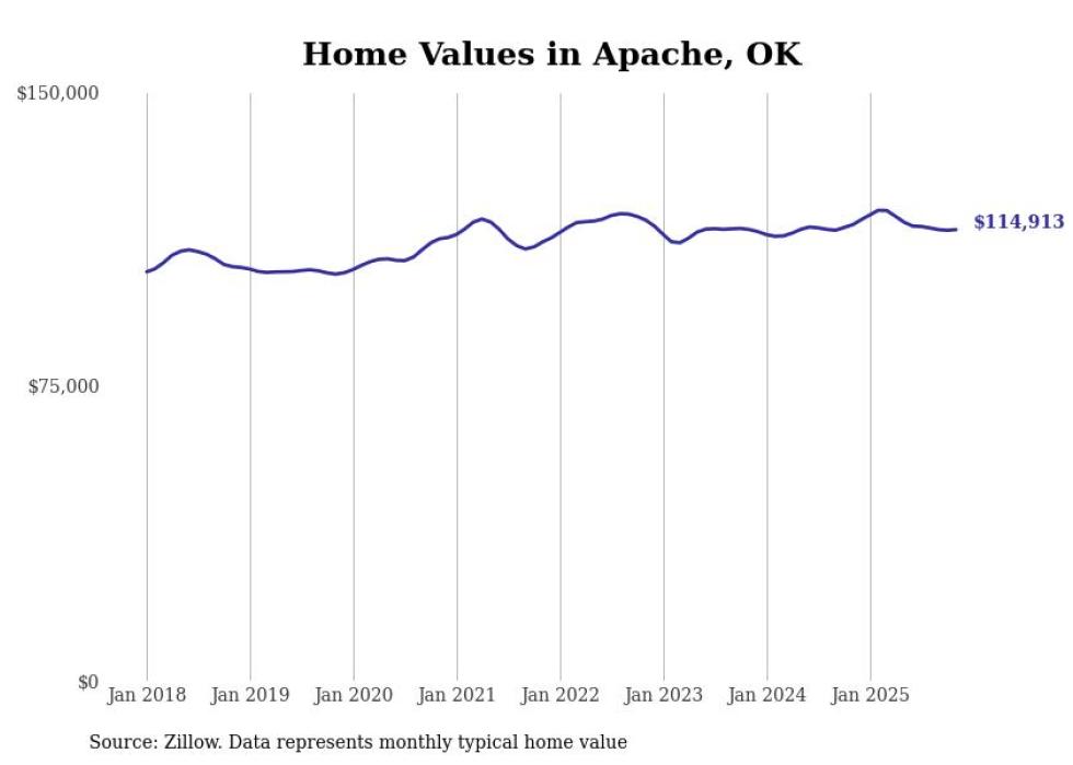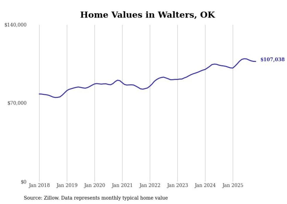 Stacker compiled a list of cities with the most expensive homes in the Lawton metro area using data from Zillow. Charts show the monthly typical home value since January 2018. All 13 cities and towns with data available were included in the list.