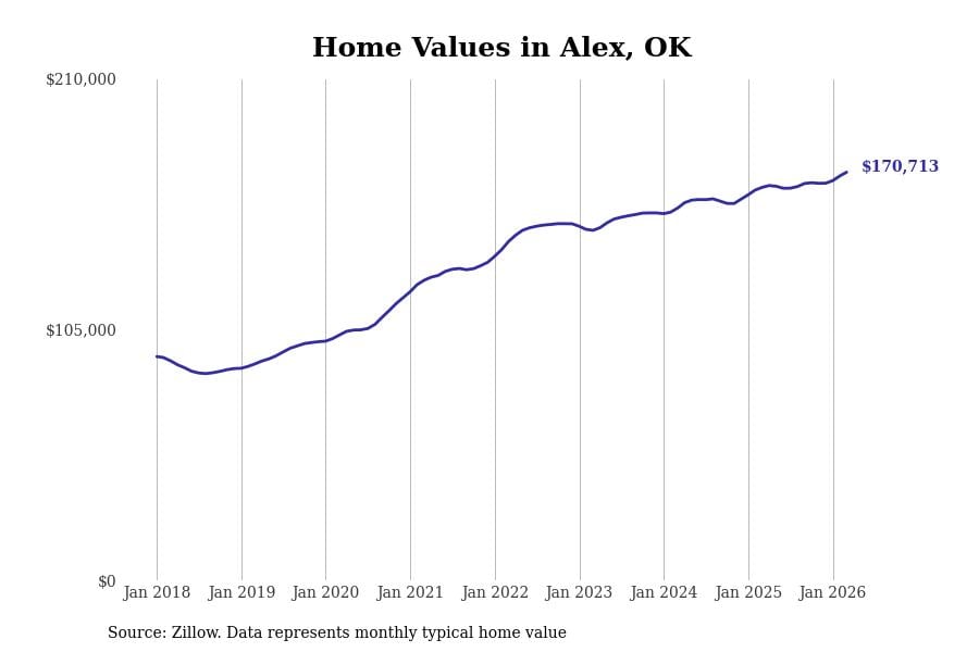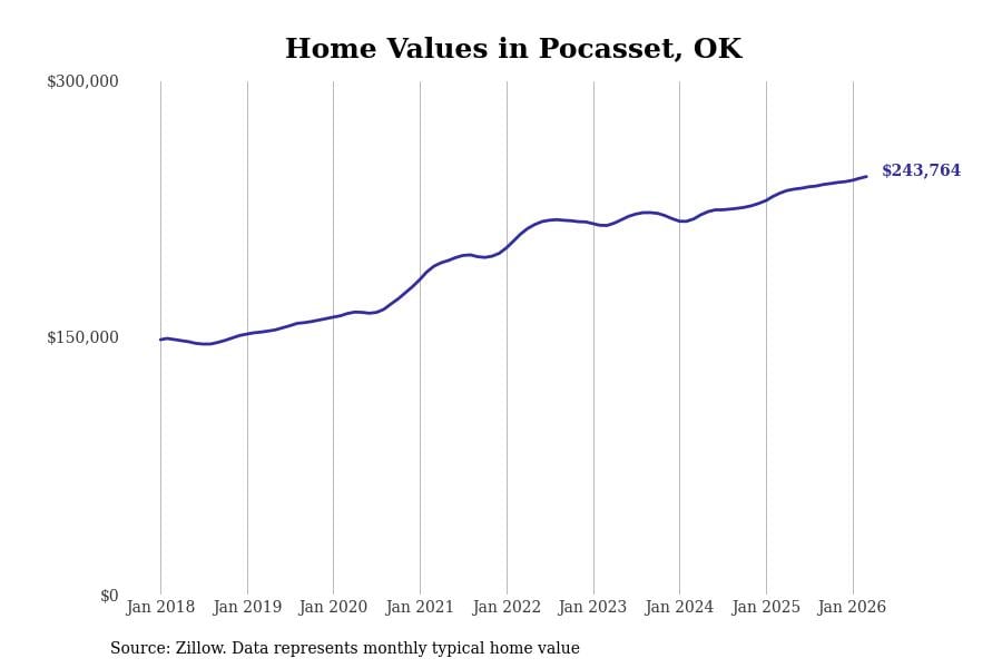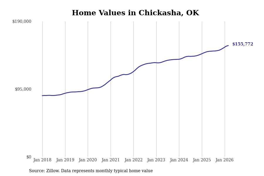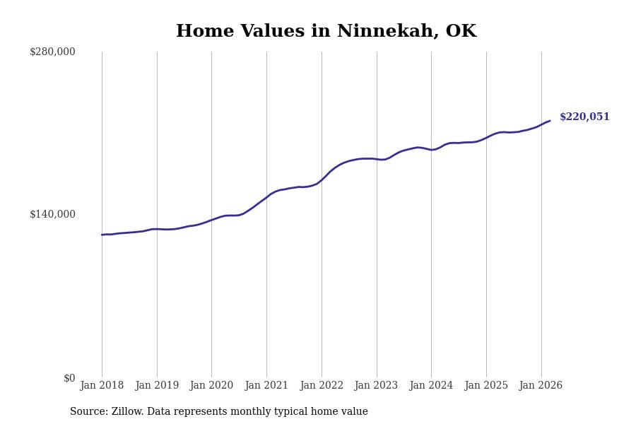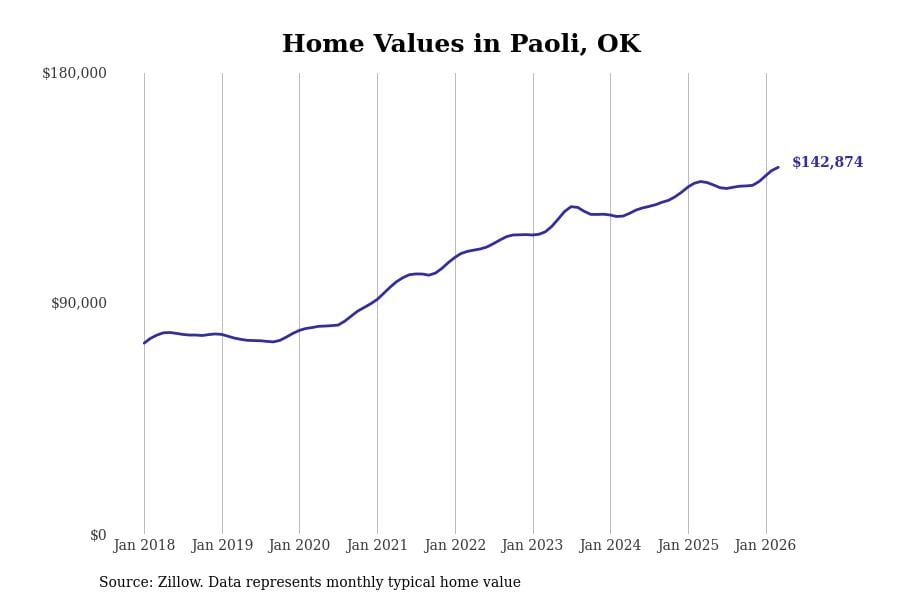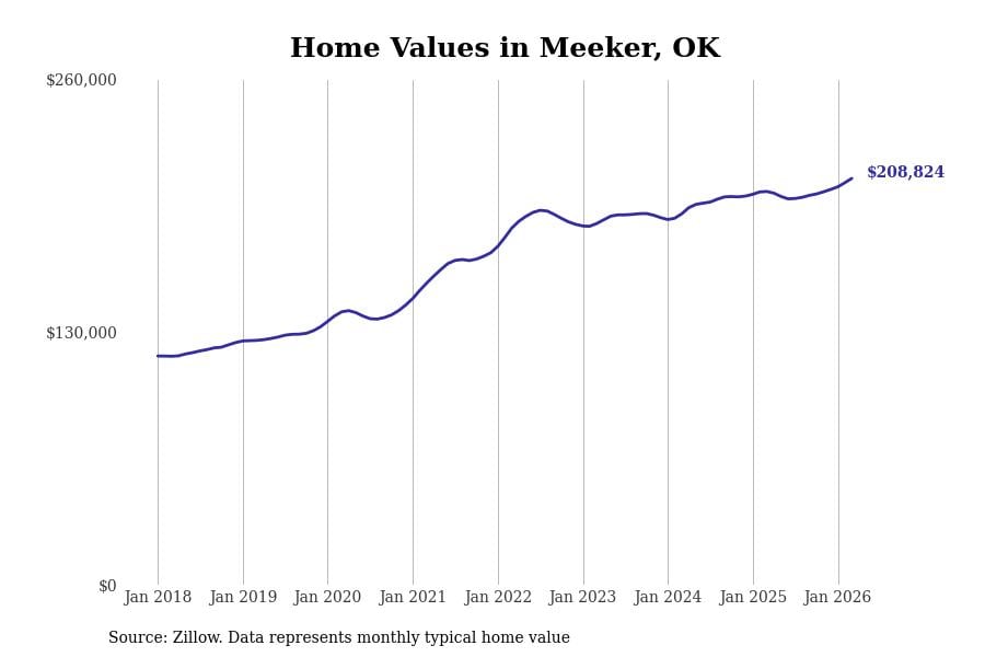 Stacker compiled a list of cities with the most expensive homes in the Oklahoma City, OK metro area using data from Zillow. Charts show the monthly typical home value since January 2018.