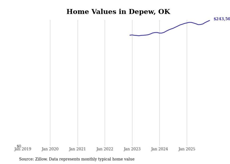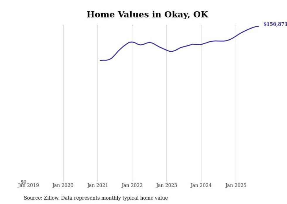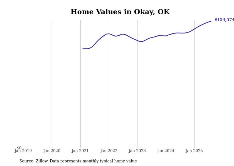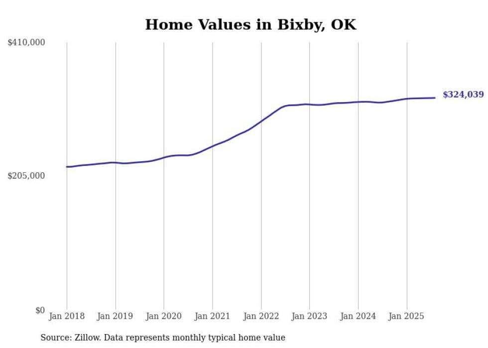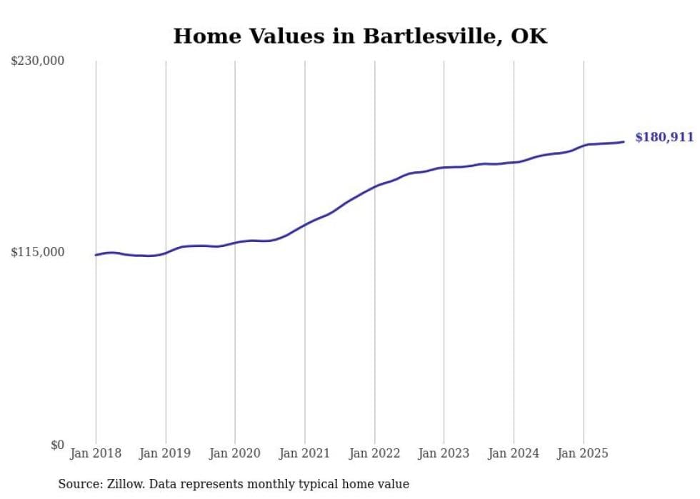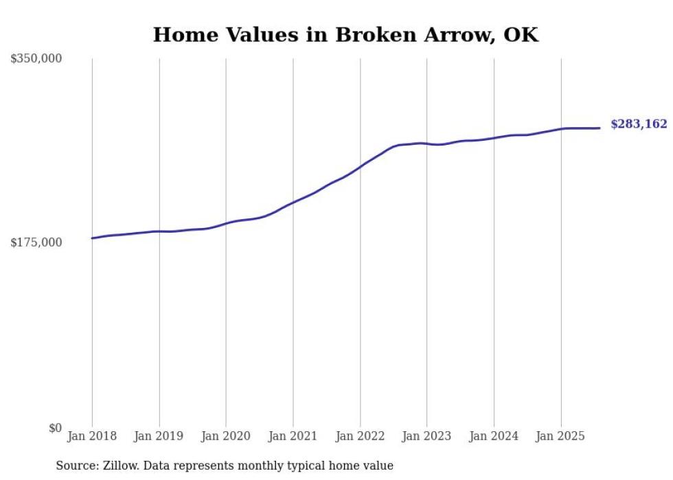 Stacker compiled a list of cities with the most expensive homes in the Tulsa, OK metro area using data from Zillow. Charts show the monthly typical home value since January 2018.