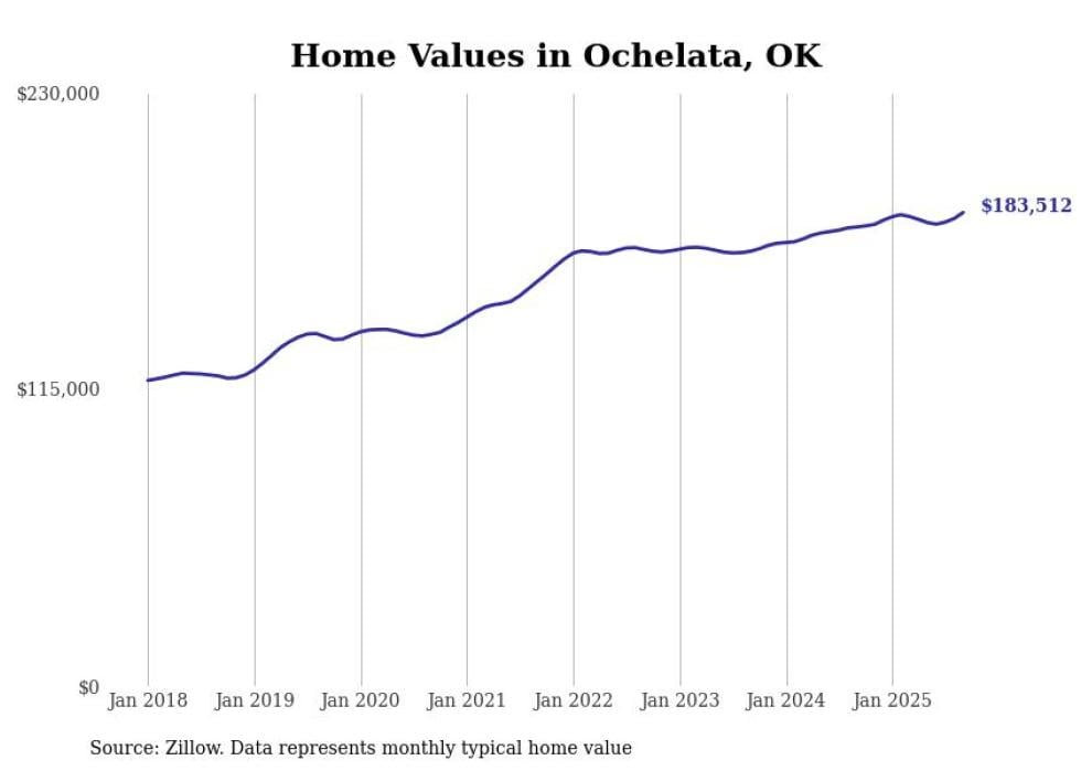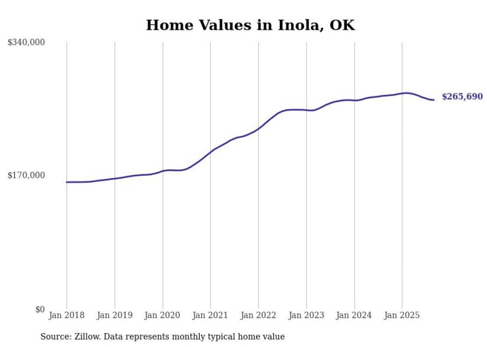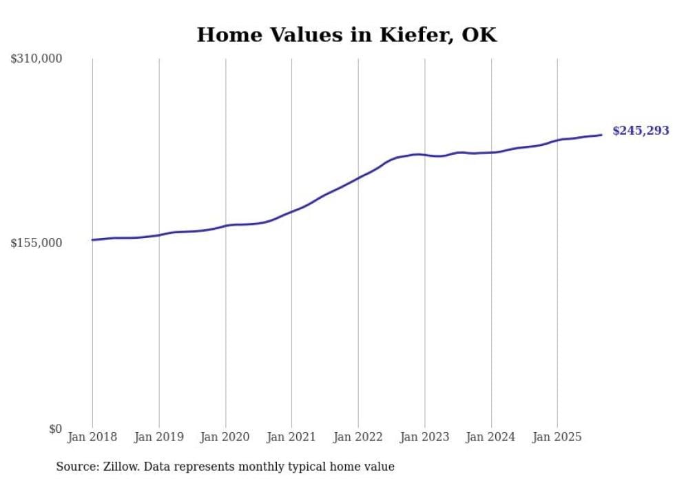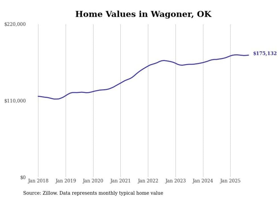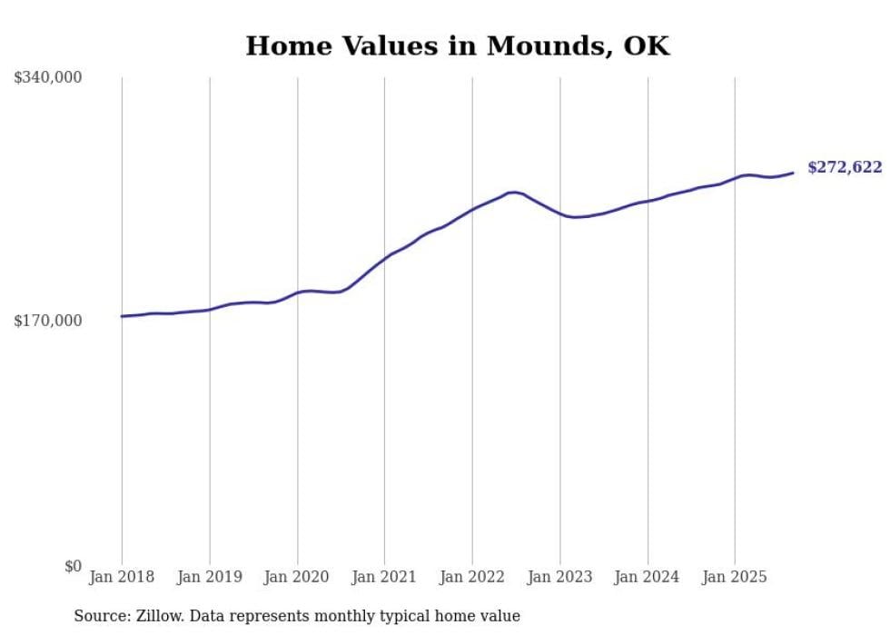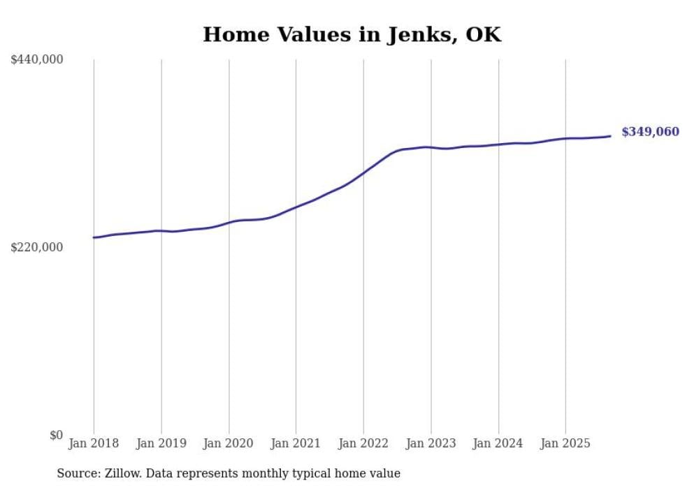 Stacker compiled a list of cities with the most expensive homes in the Tulsa metro area using data from Zillow. Charts show the monthly typical home value since January 2018. Data was available for 48 cities and towns.