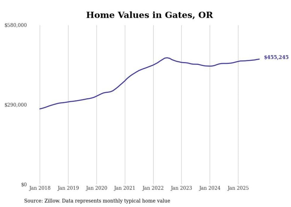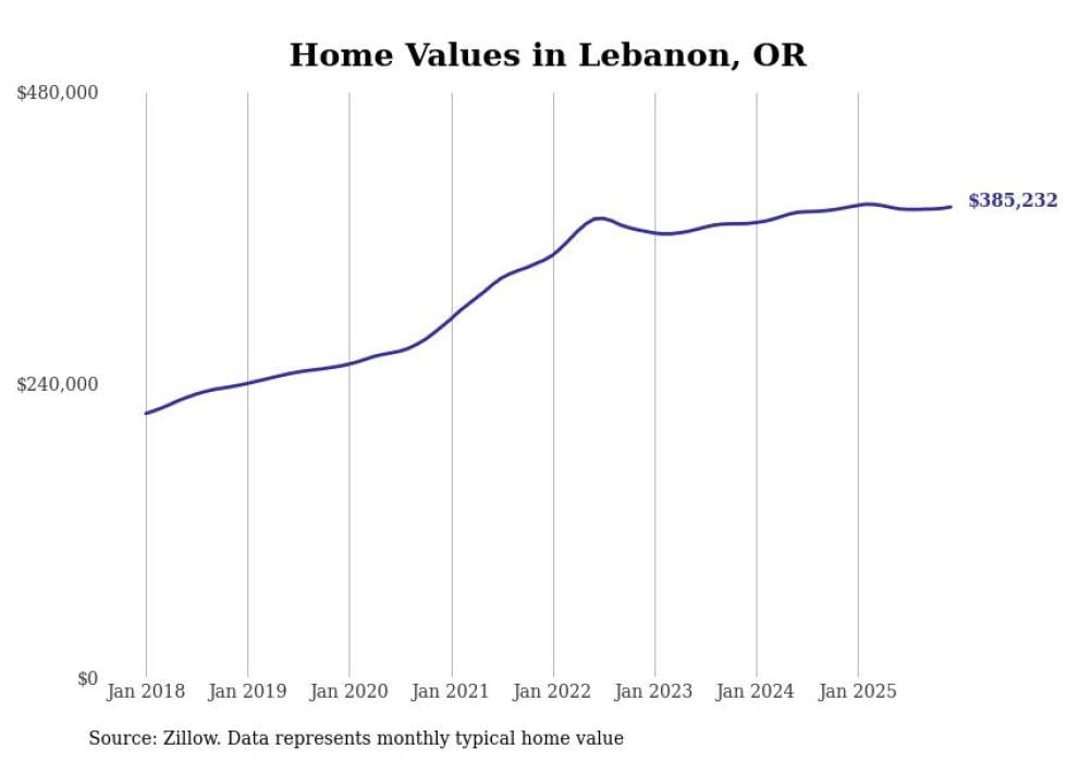 Stacker compiled a list of cities with the most expensive homes in the Albany-Lebanon, OR metro area using data from Zillow. Charts show the monthly typical home value since January 2018.
