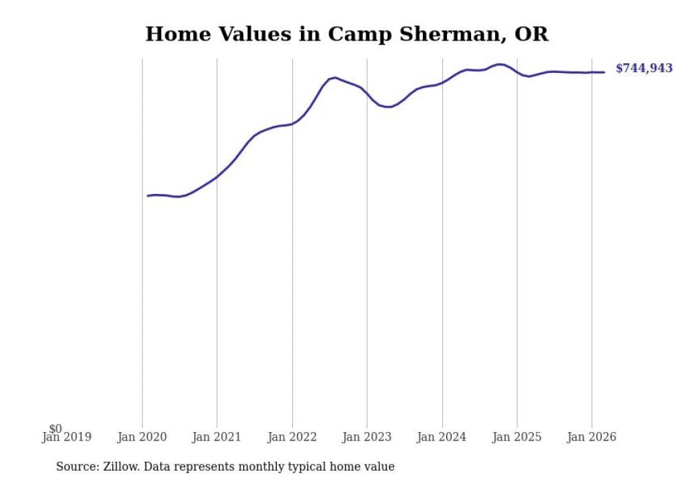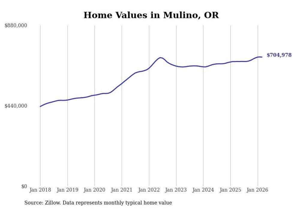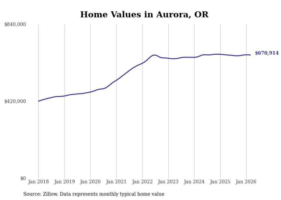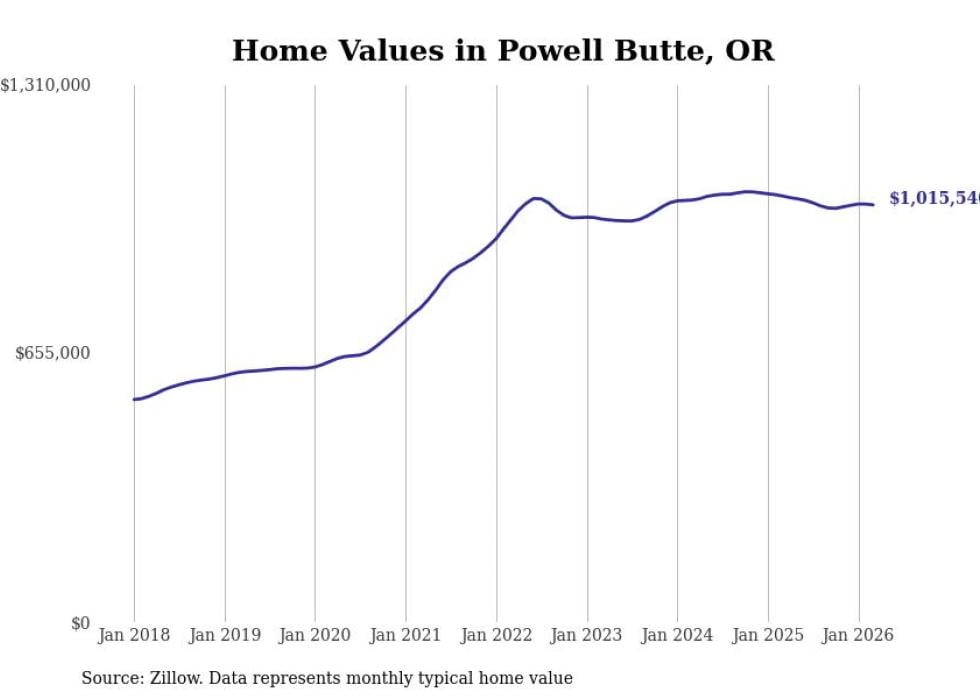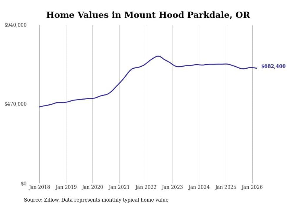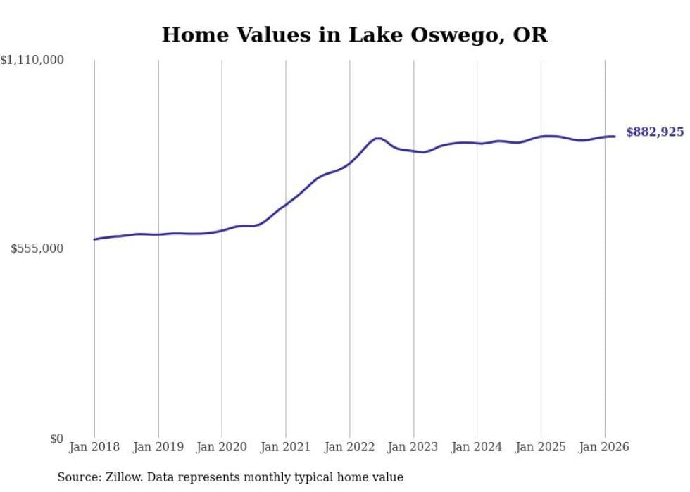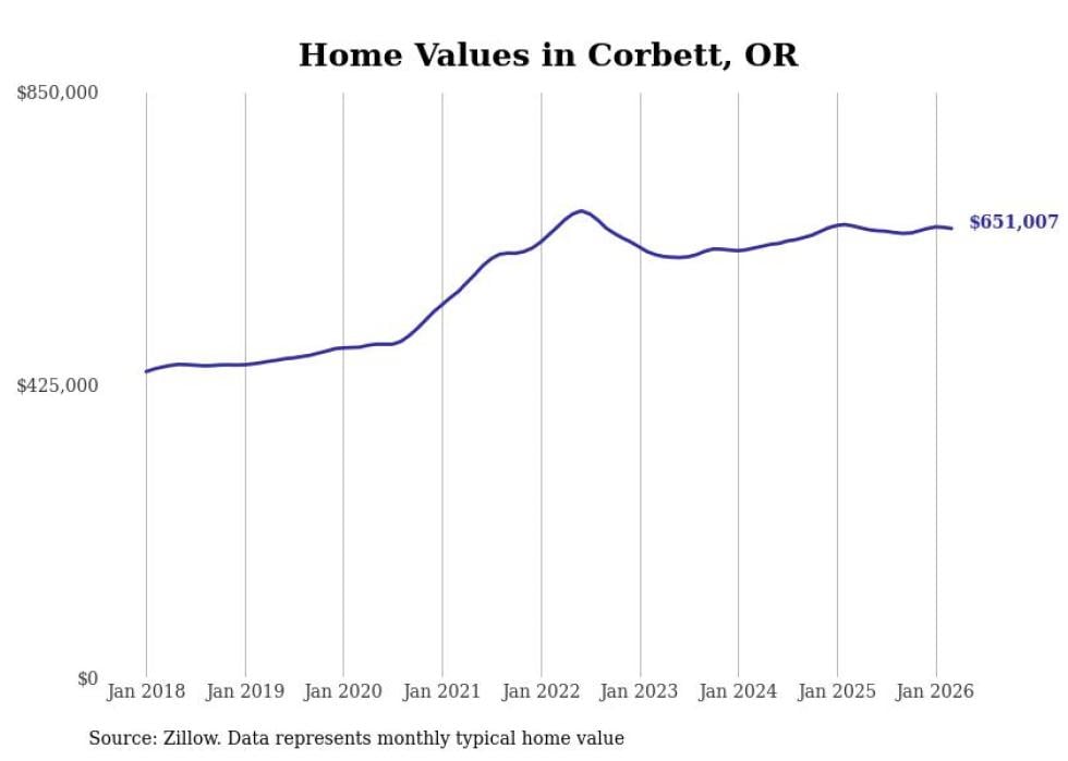 Stacker compiled a list of cities with the most expensive homes in Oregon using data from Zillow. Cities are ranked by the Zillow Home Values Index for all homes as of March 2026. The charts in this story were created automatically using Matplotlib.