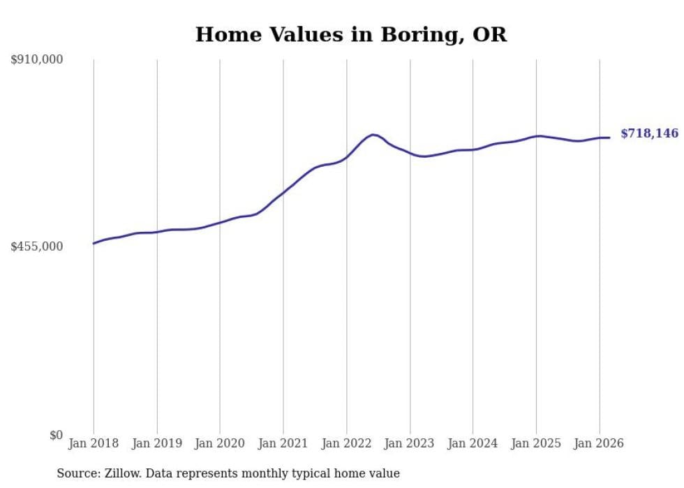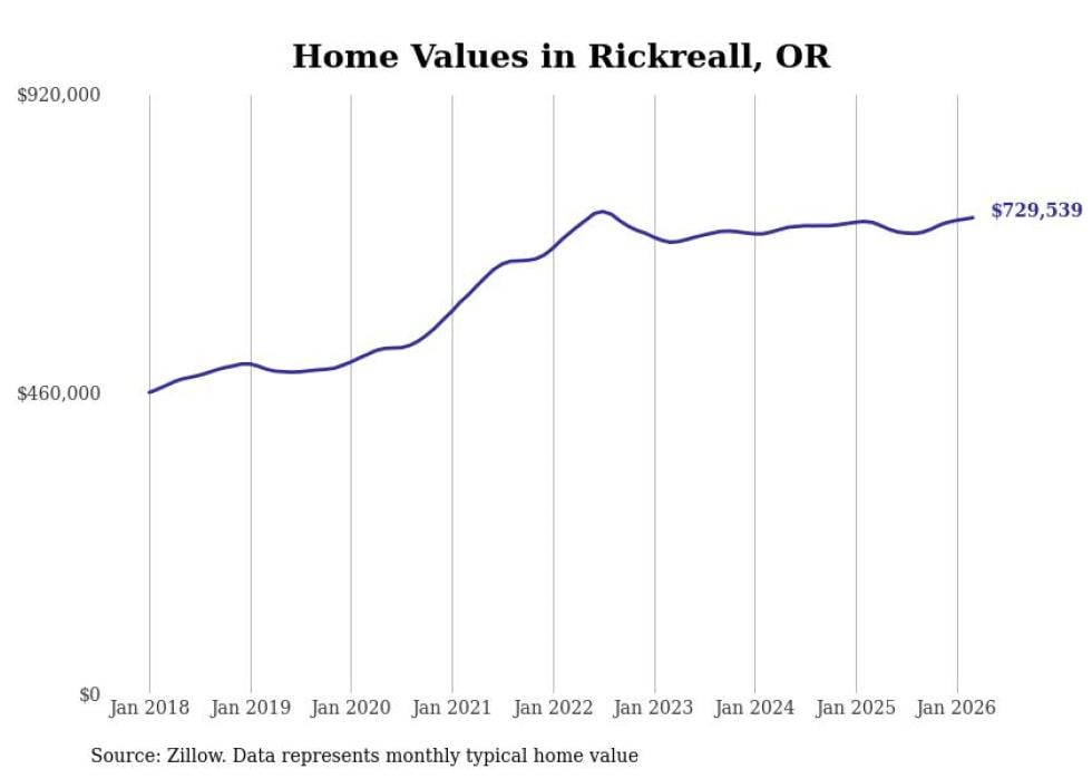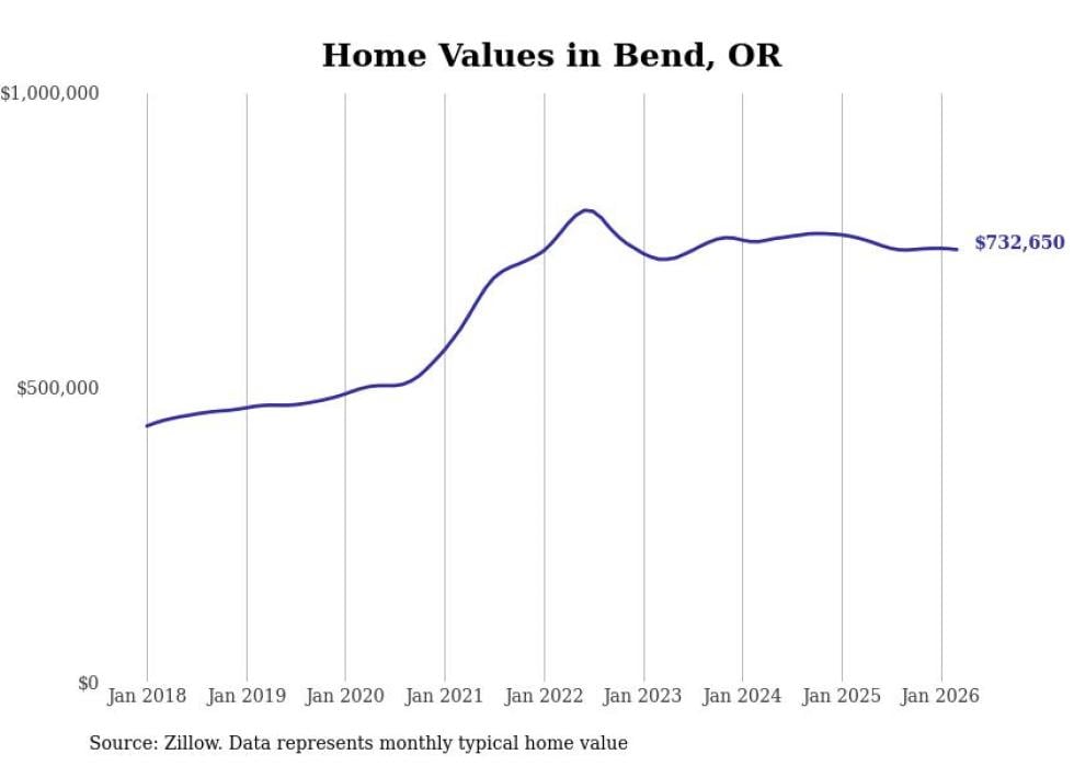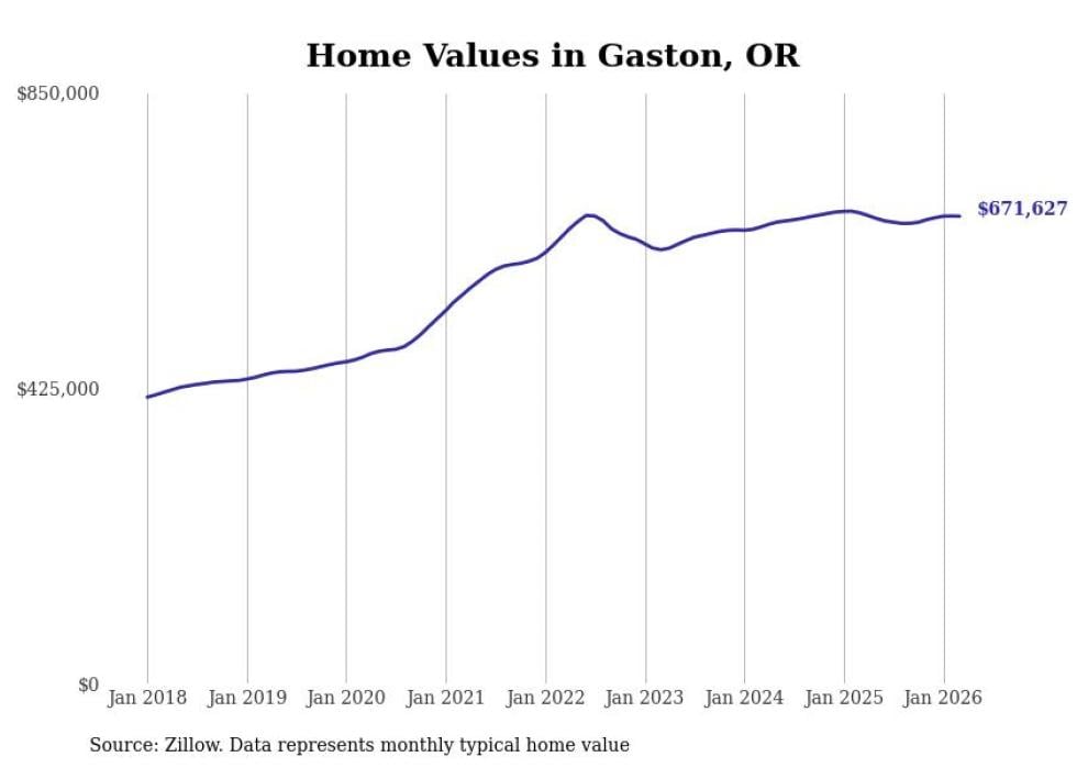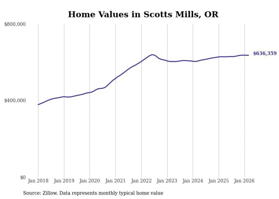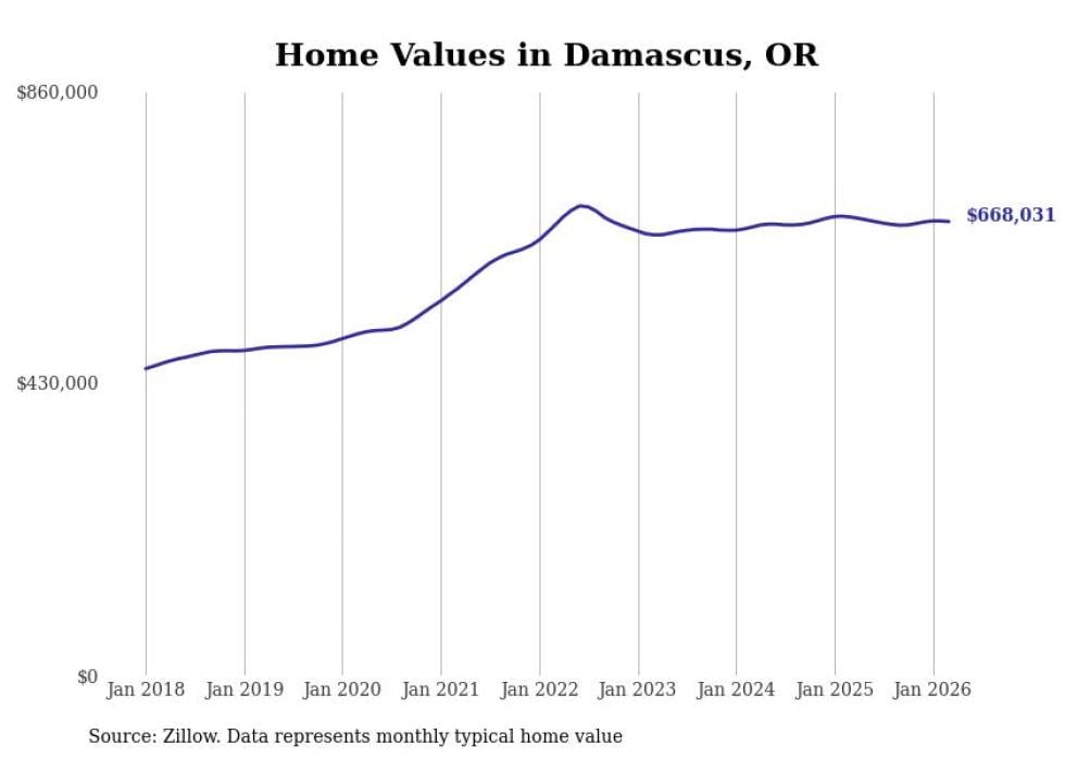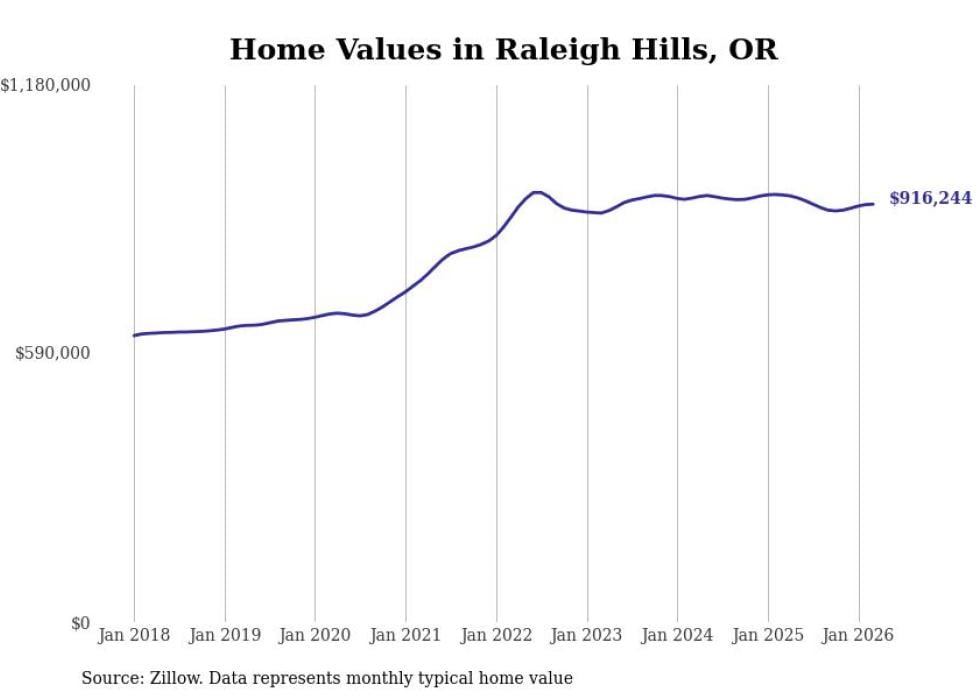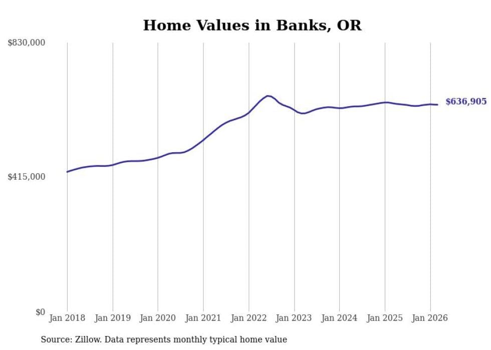 Stacker compiled a list of cities with the most expensive homes in Oregon using data from Zillow. Cities are ranked by the Zillow Home Values Index for all homes as of March 2026. The charts in this story were created automatically using Matplotlib.