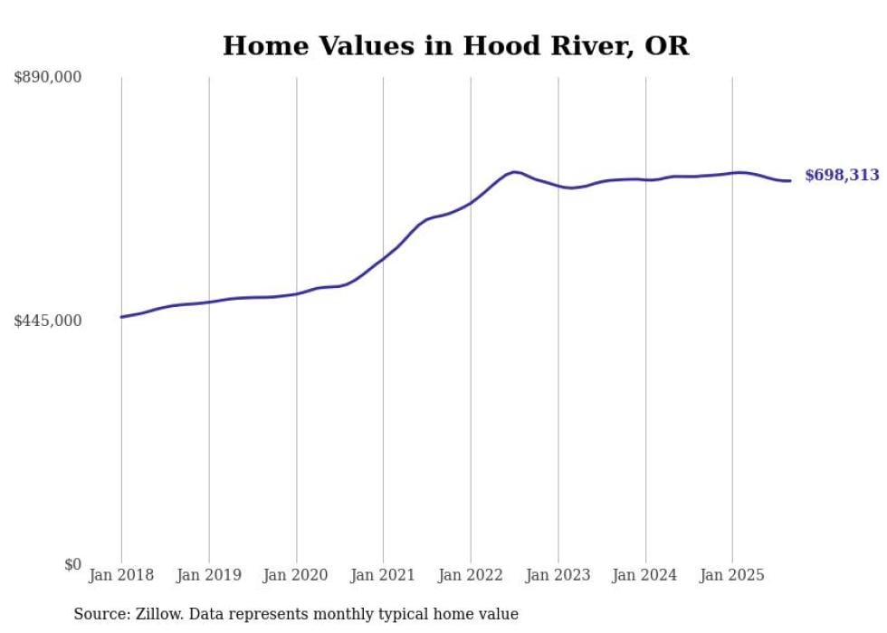 Stacker compiled a list of cities with the most expensive homes in Oregon using data from Zillow. Cities are ranked by the Zillow Home Values Index for all homes as of September 2025. The charts in this story were created automatically using Matplotlib.