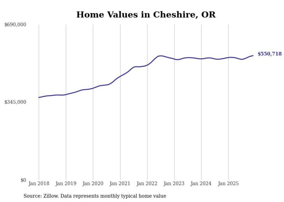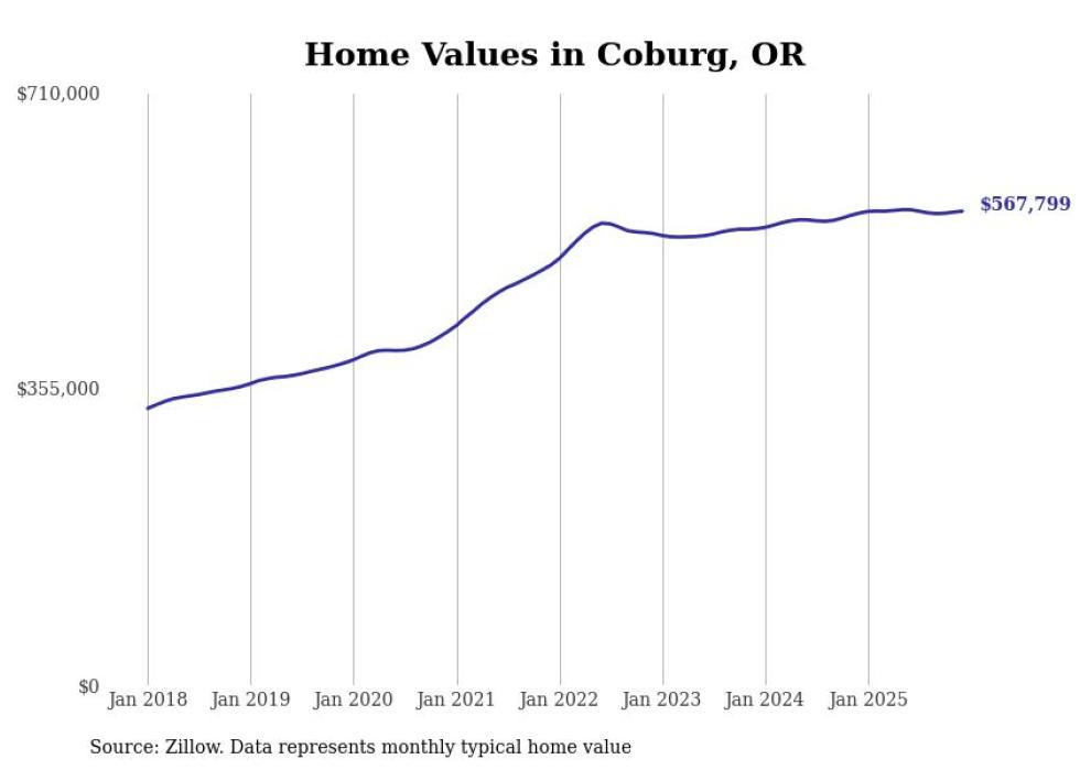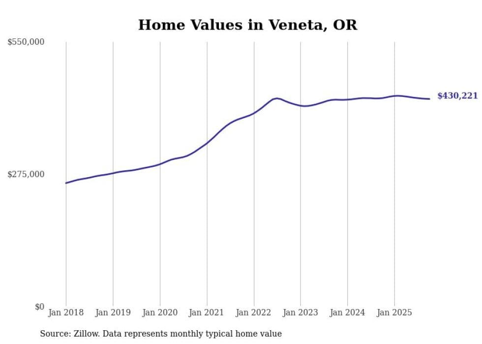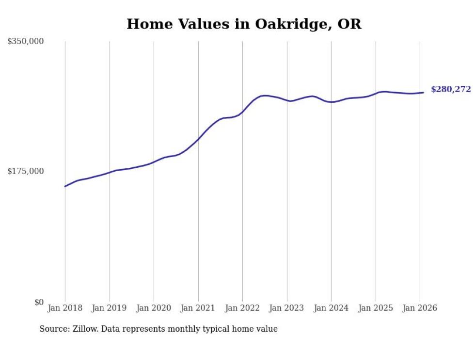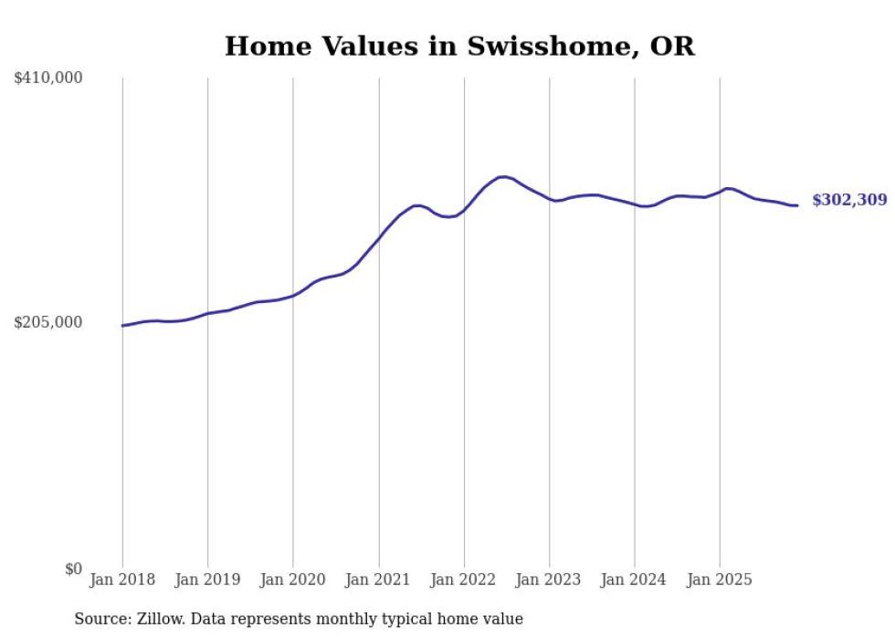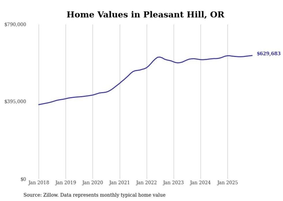 Stacker compiled a list of cities with the most expensive homes in the Eugene-Springfield, OR metro area using data from Zillow. Charts show the monthly typical home value since January 2018.