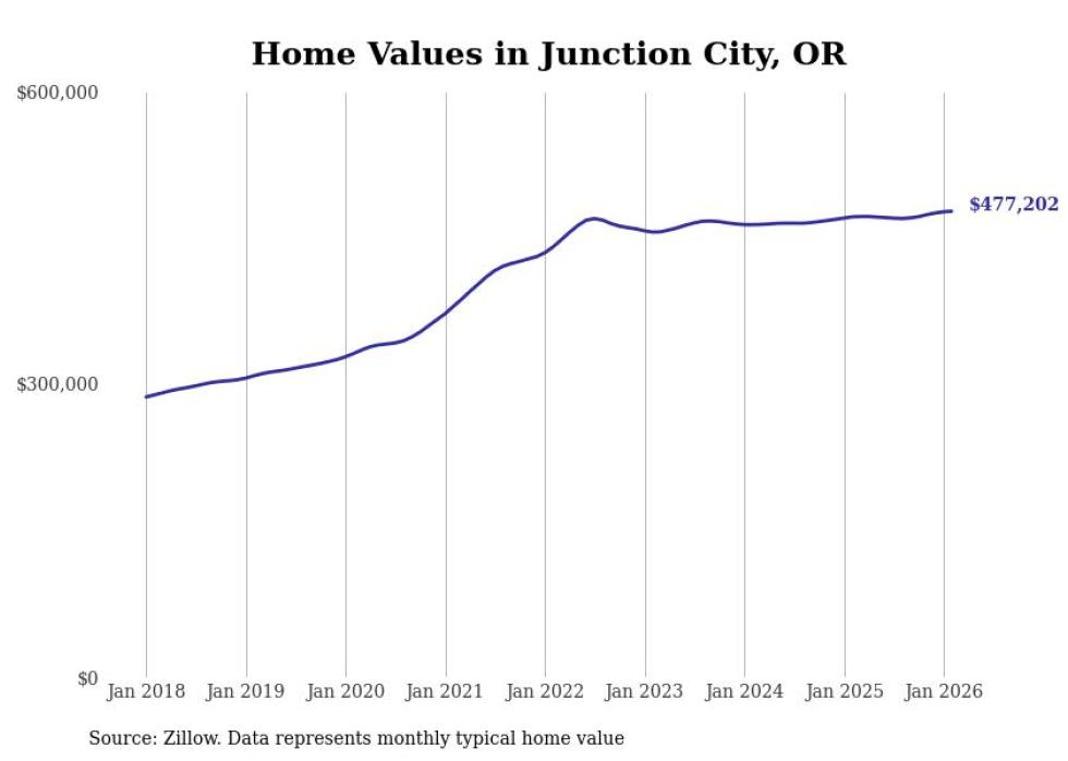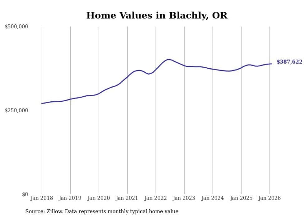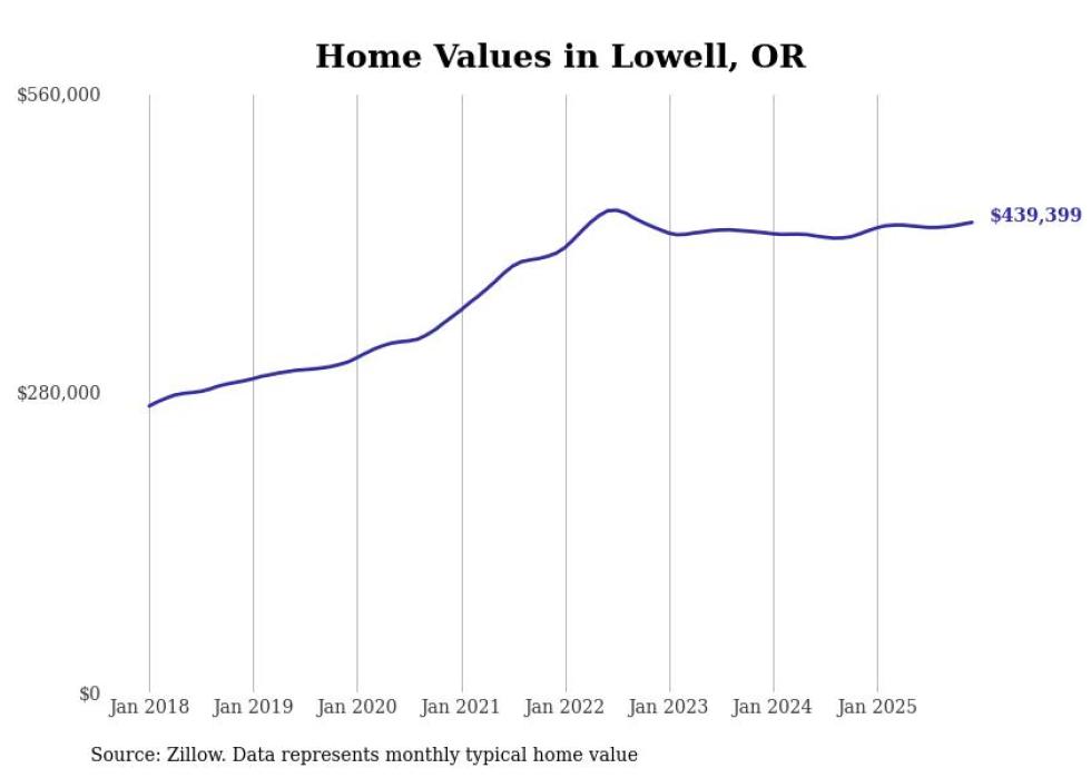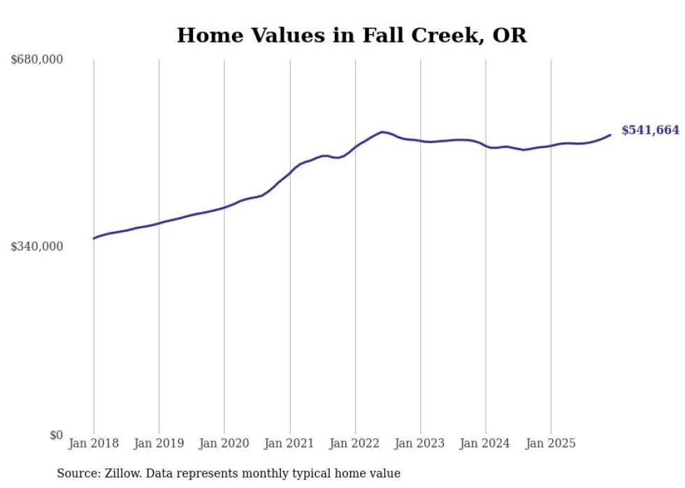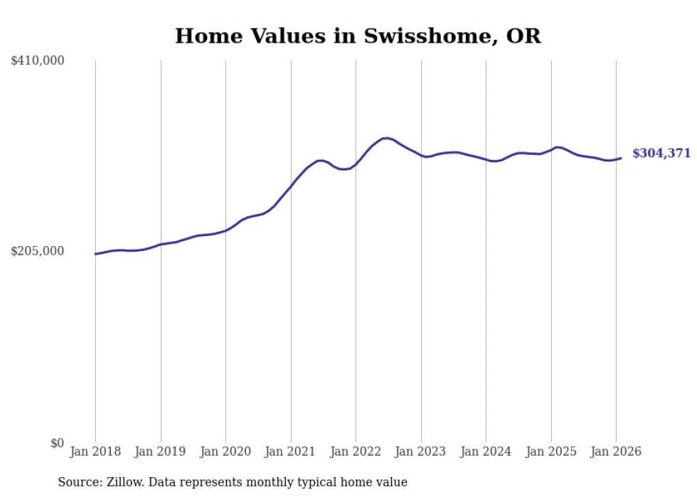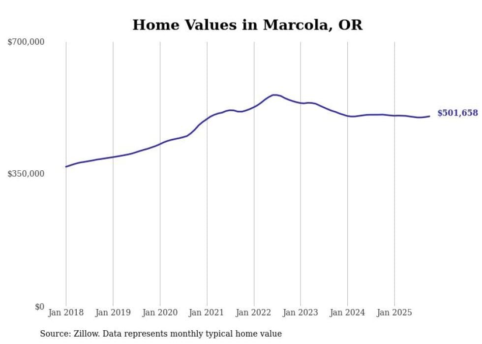Stacker compiled a list of cities with the most expensive homes in the Eugene-Springfield, OR metro area using data from Zillow. Charts show the monthly typical home value since January 2018.