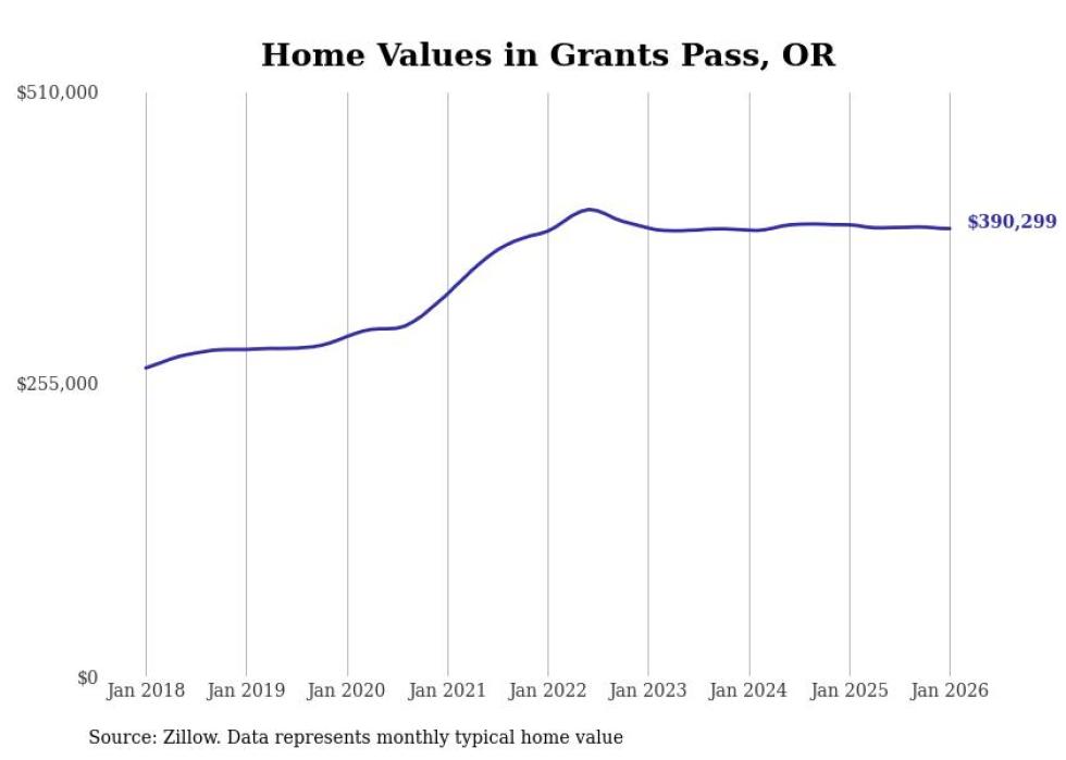 Cities with the fastest-growing home prices in the Grants Pass metro area