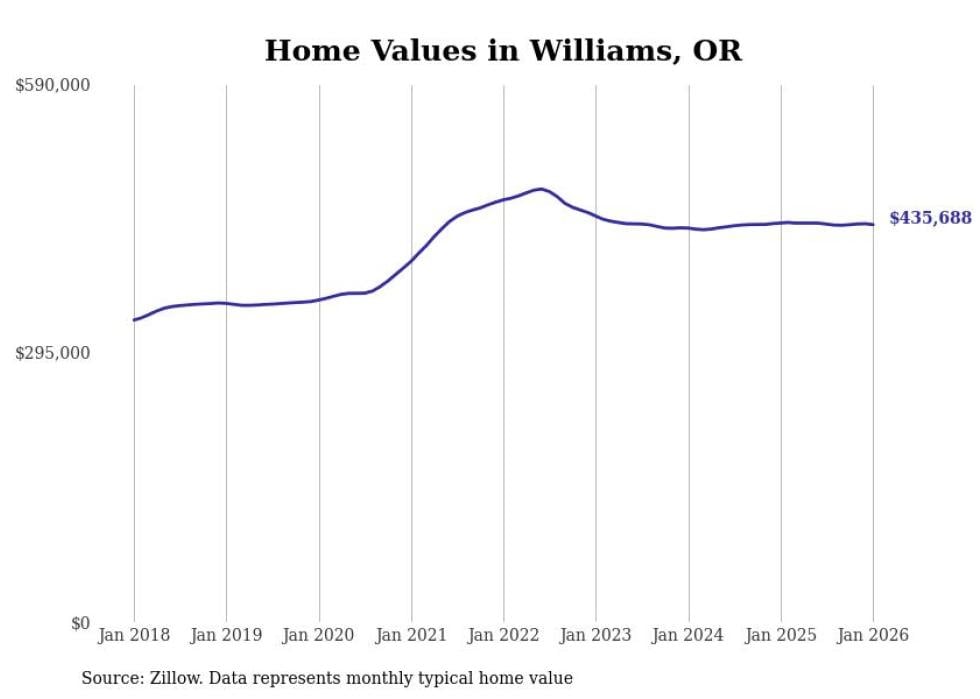 Stacker compiled a list of cities with the most expensive homes in the Grants Pass, OR metro area using data from Zillow. Charts show the monthly typical home value since January 2018.
