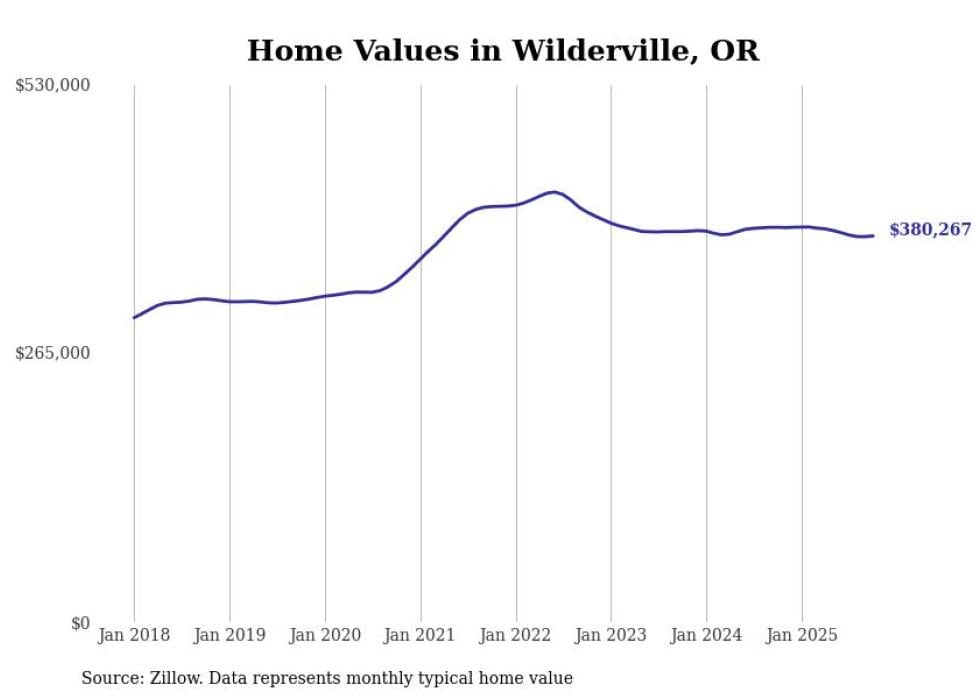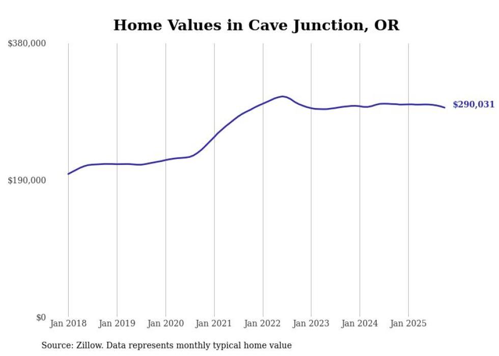 Stacker compiled a list of cities with the most expensive homes in the Grants Pass metro area using data from Zillow. Charts show the monthly typical home value since January 2018. All 7 cities and towns with data available were included in the list.