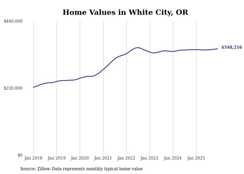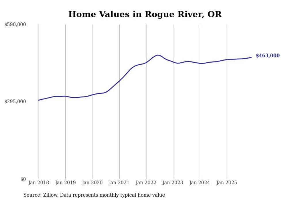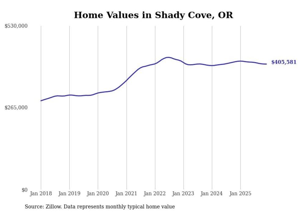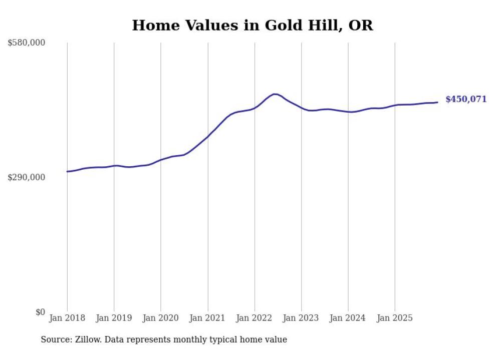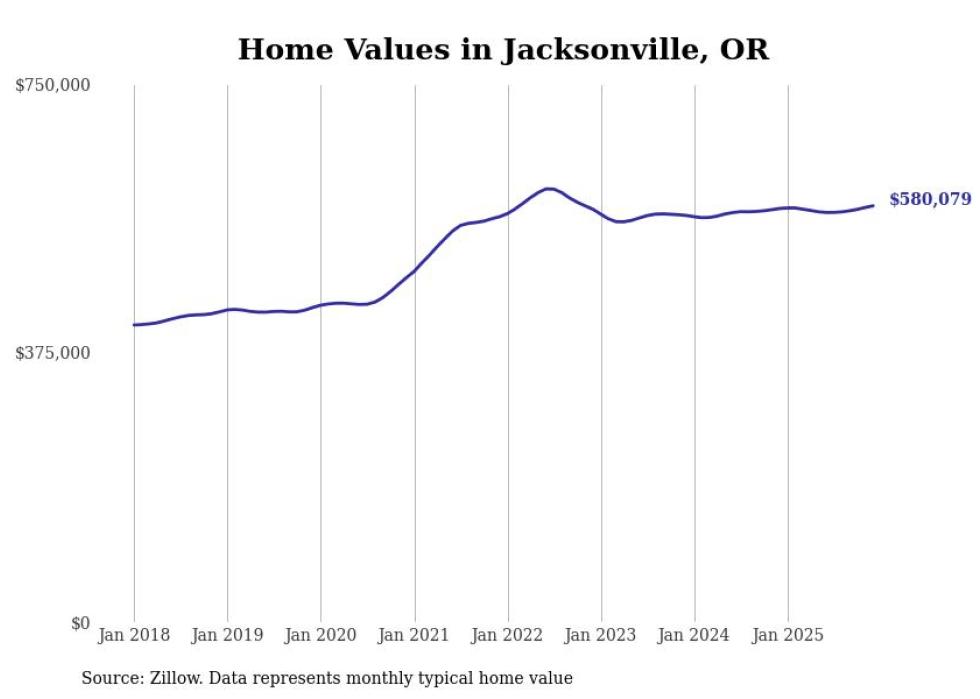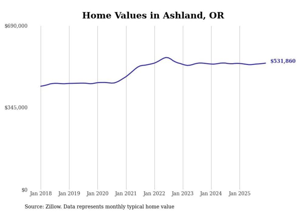 Stacker compiled a list of cities with the most expensive homes in the Medford, OR metro area using data from Zillow. Charts show the monthly typical home value since January 2018.
