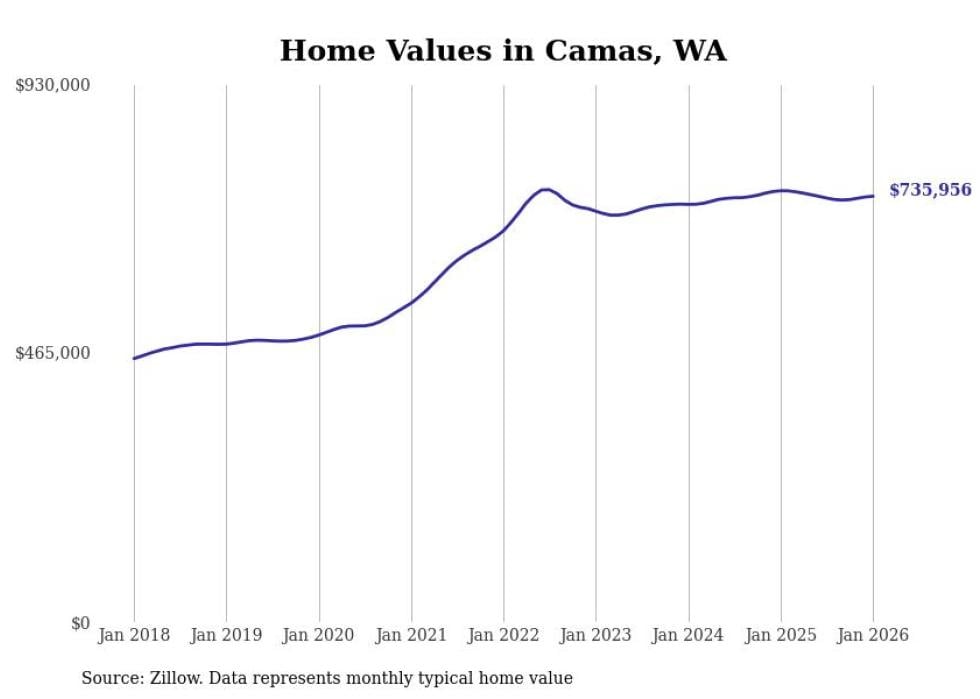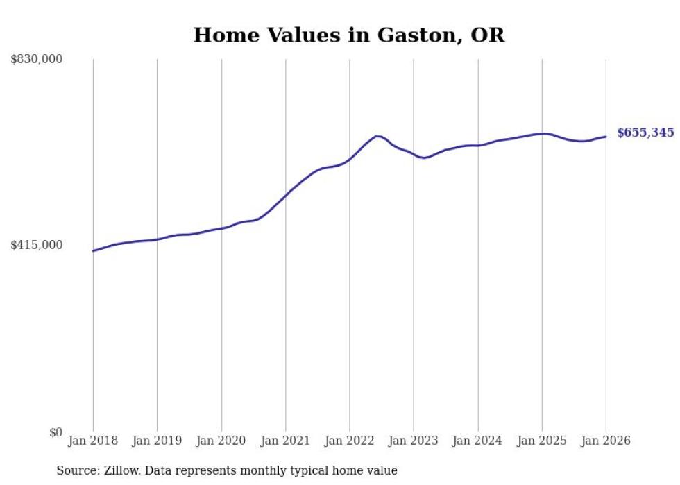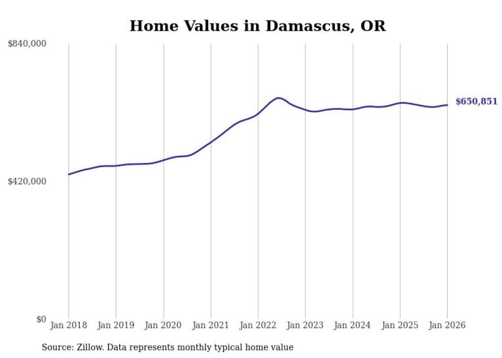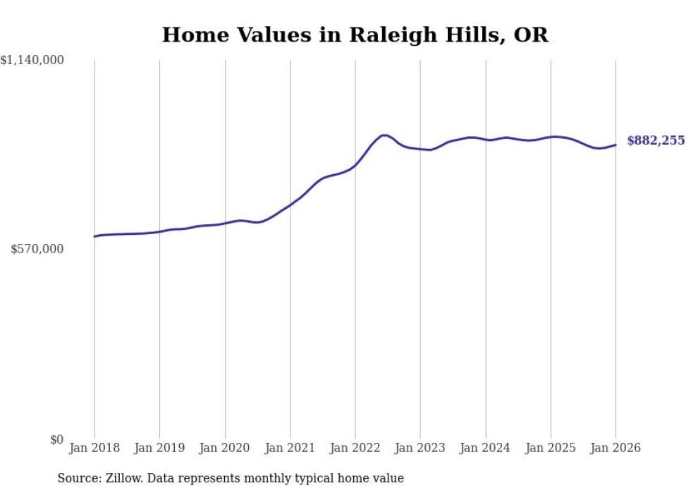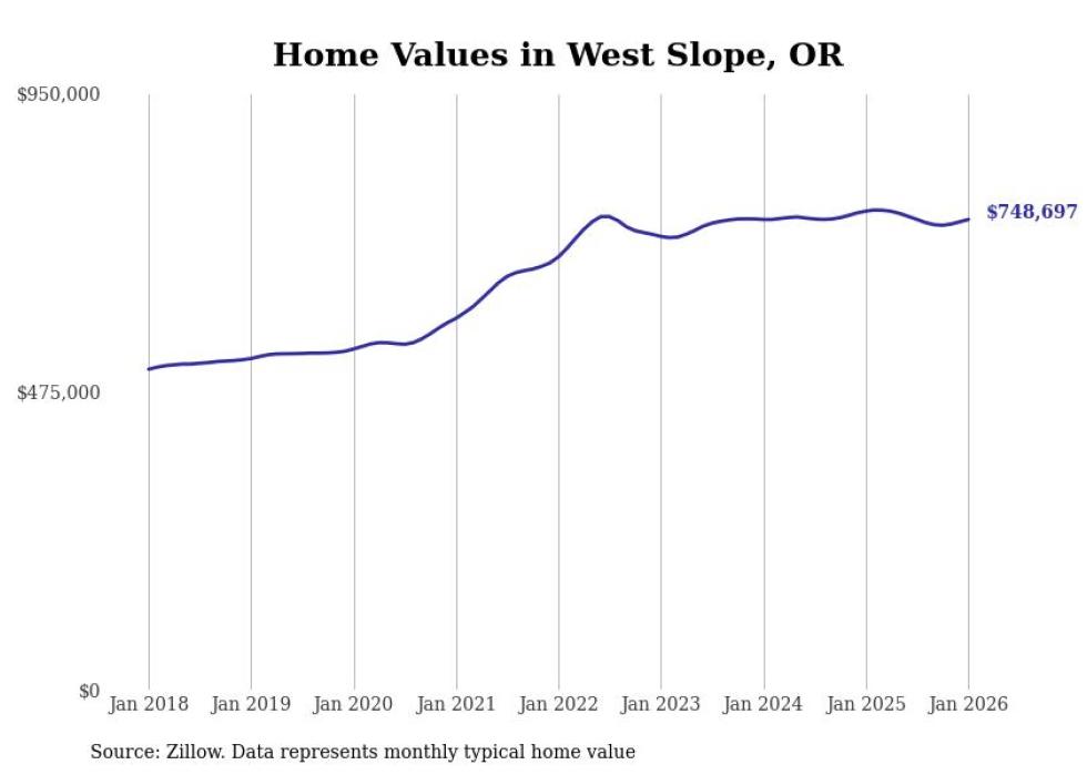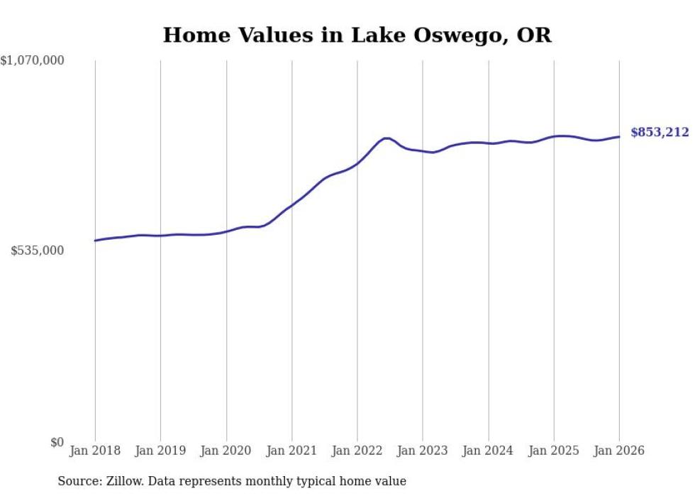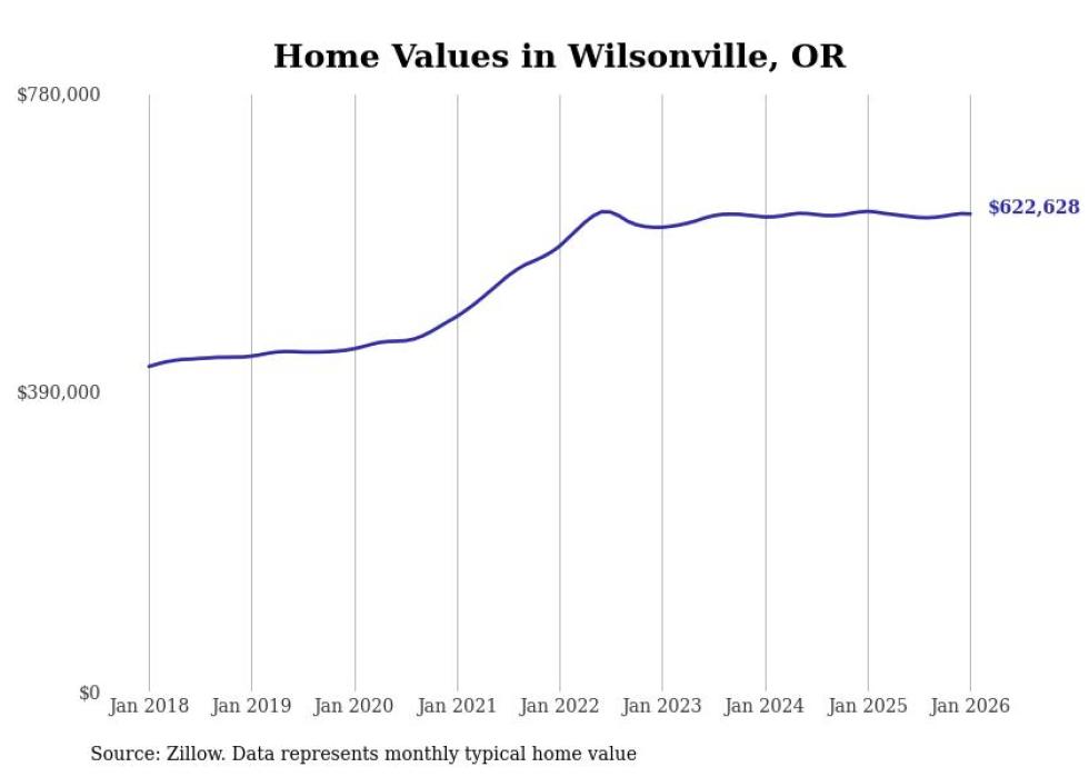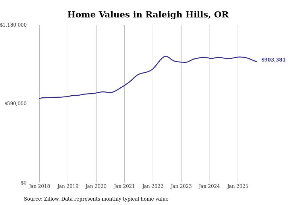 Stacker compiled a list of cities with the most expensive homes in the Portland, Oregon metro area using data from Zillow. Charts show the monthly typical home value since January 2018. Data was available for 80 cities and towns.