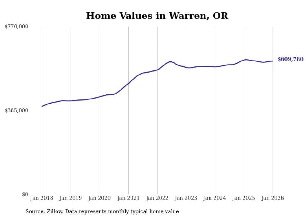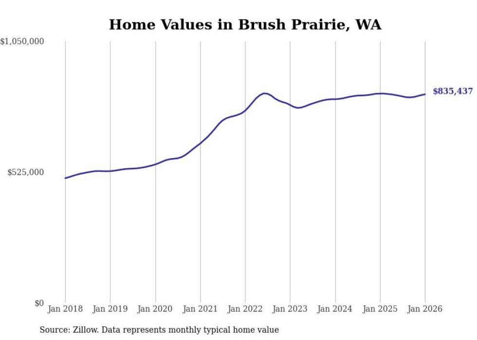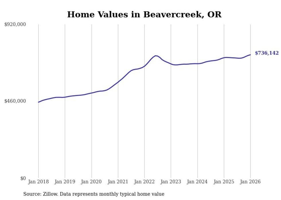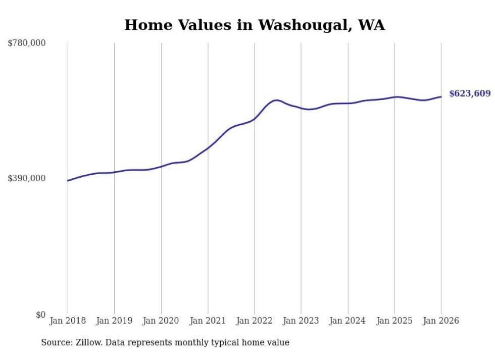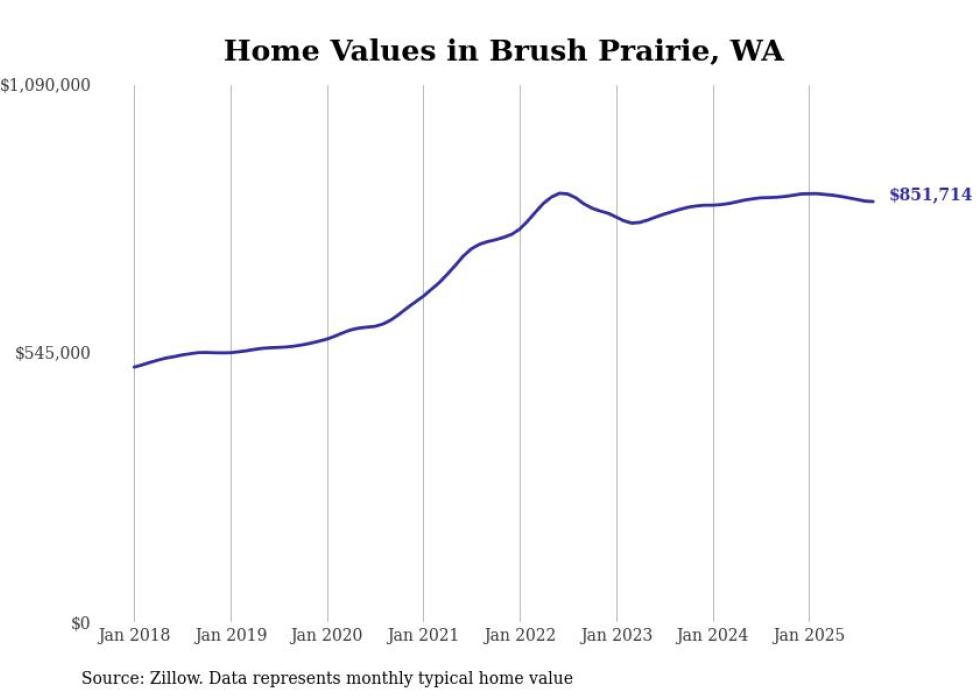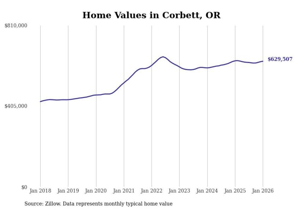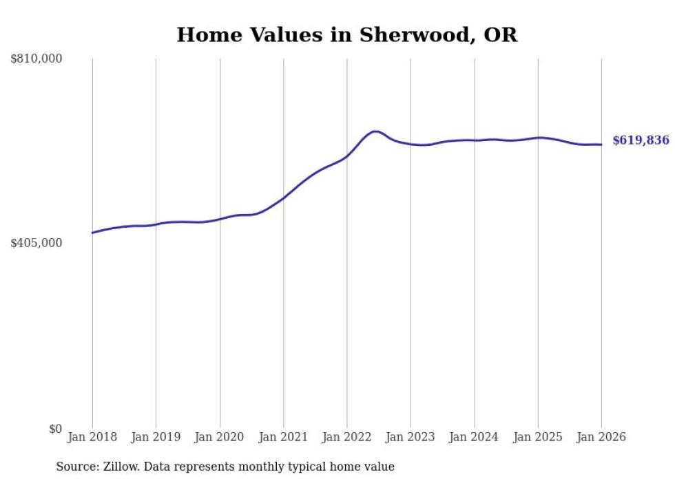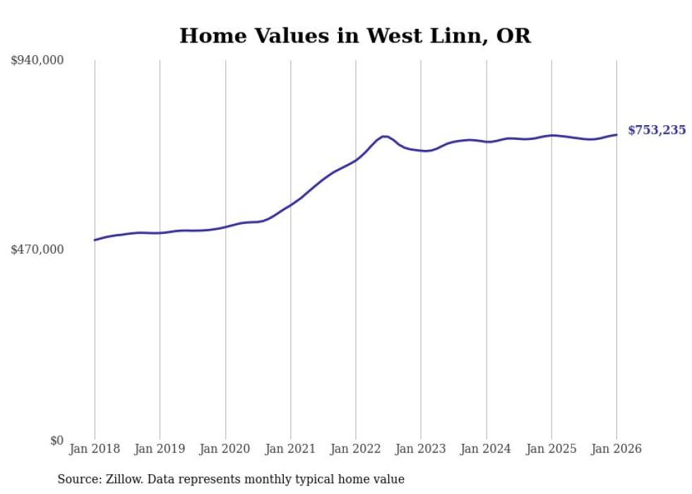 Stacker compiled a list of cities with the most expensive homes in the Portland, Oregon metro area using data from Zillow. Charts show the monthly typical home value since January 2018. Data was available for 80 cities and towns.