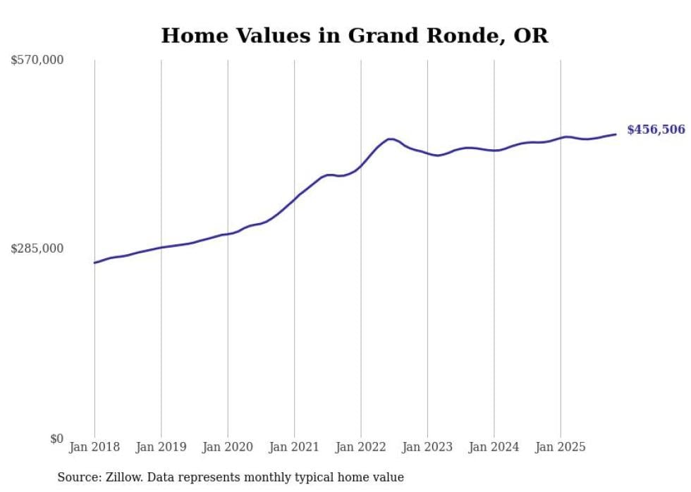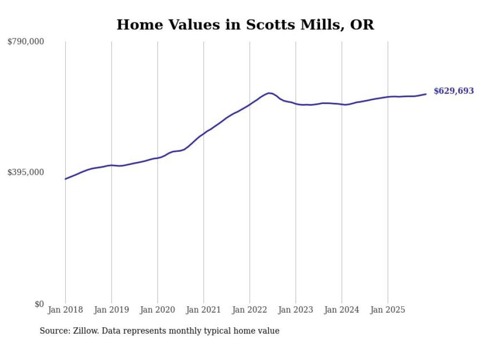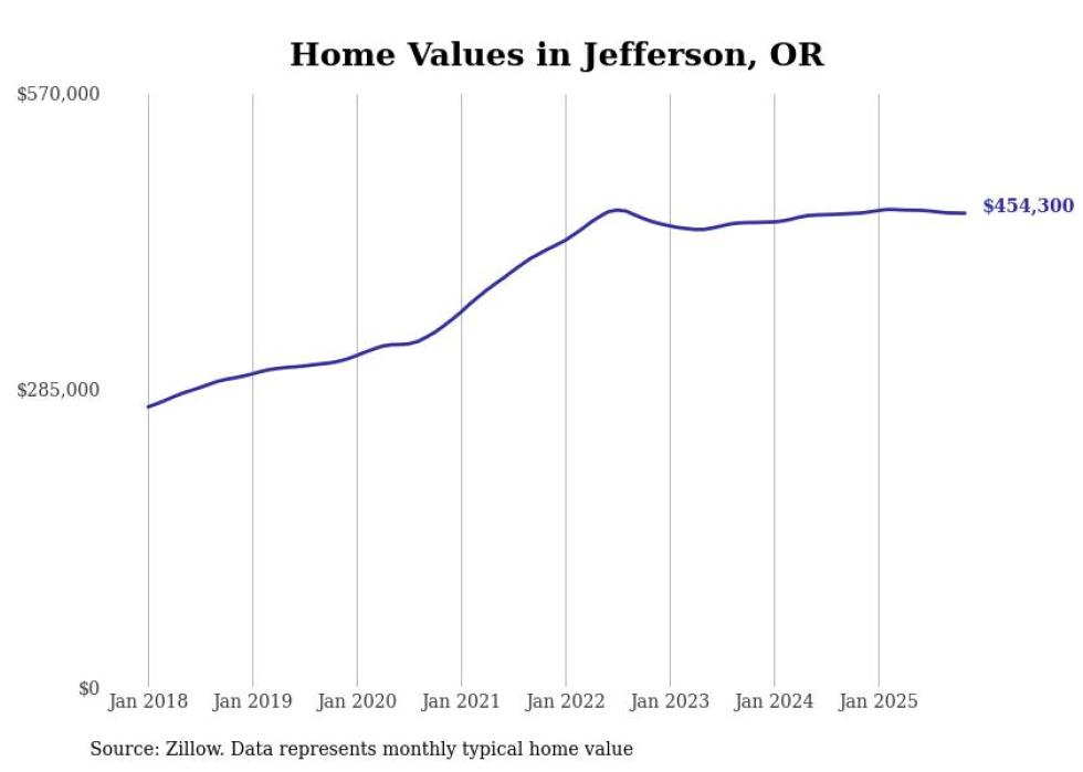 Stacker compiled a list of cities with the most expensive homes in the Salem, OR metro area using data from Zillow. Charts show the monthly typical home value since January 2018.