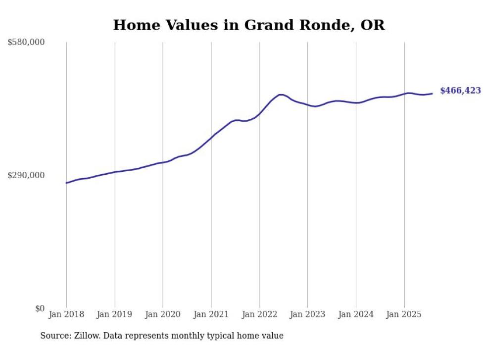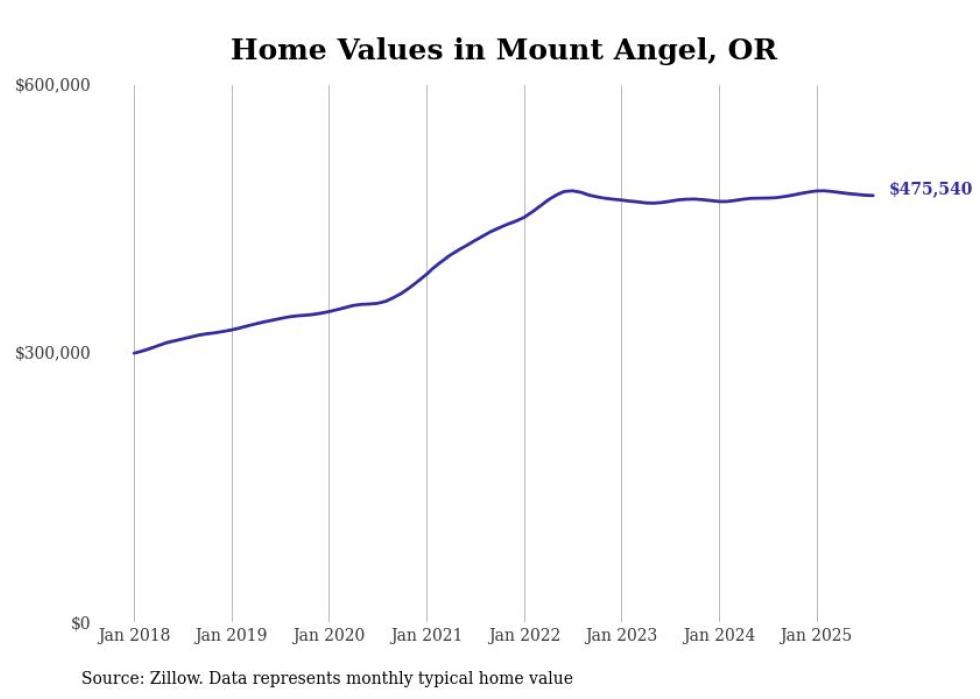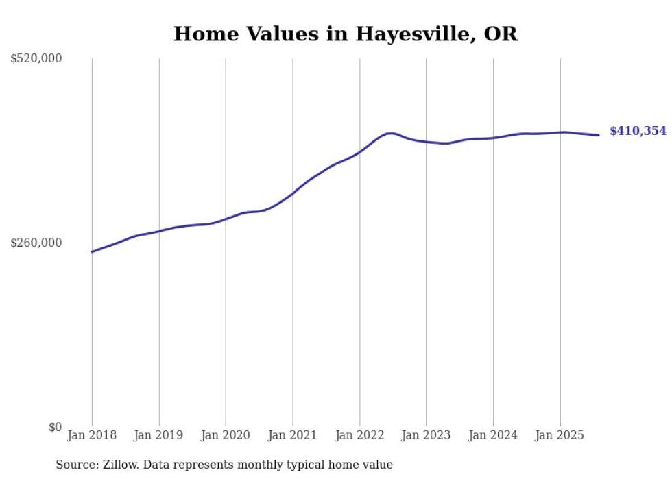 Stacker compiled a list of cities with the most expensive homes in the Salem metro area using data from Zillow. Charts show the monthly typical home value since January 2018. All 26 cities and towns with data available were included in the list.