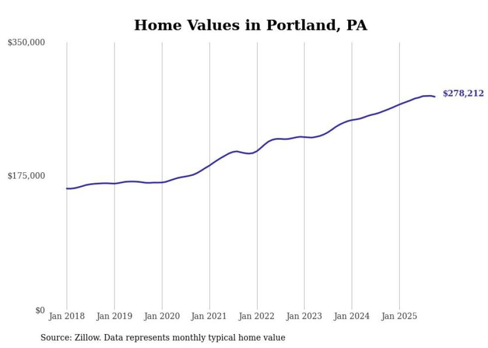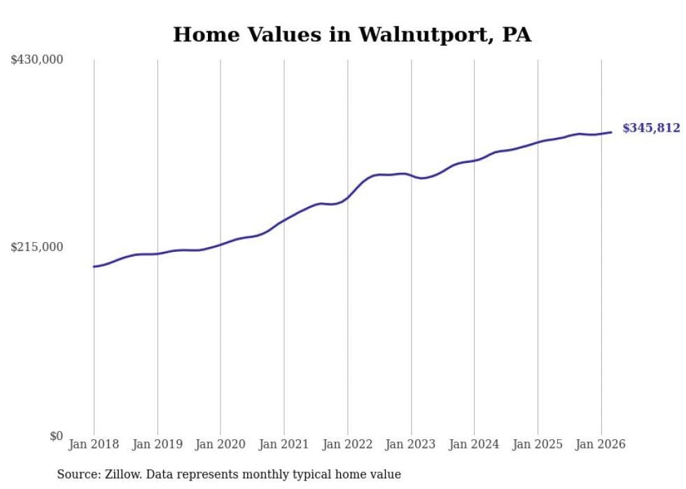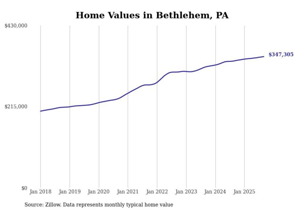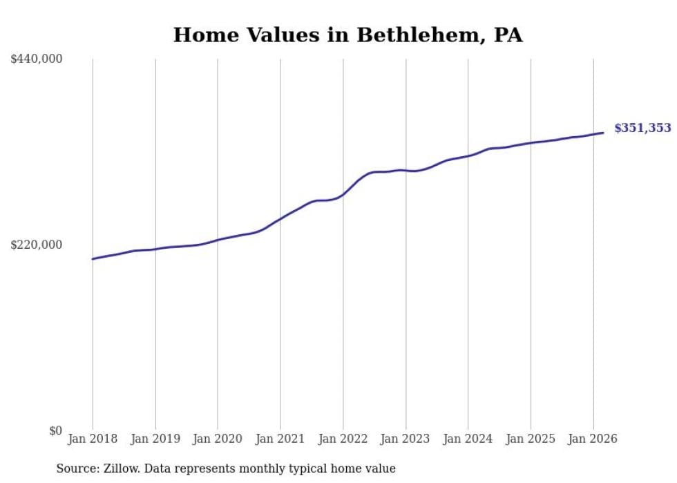 Stacker compiled a list of cities with the most expensive homes in the Allentown-Bethlehem-Easton, PA-NJ metro area using data from Zillow. Charts show the monthly typical home value since January 2018.