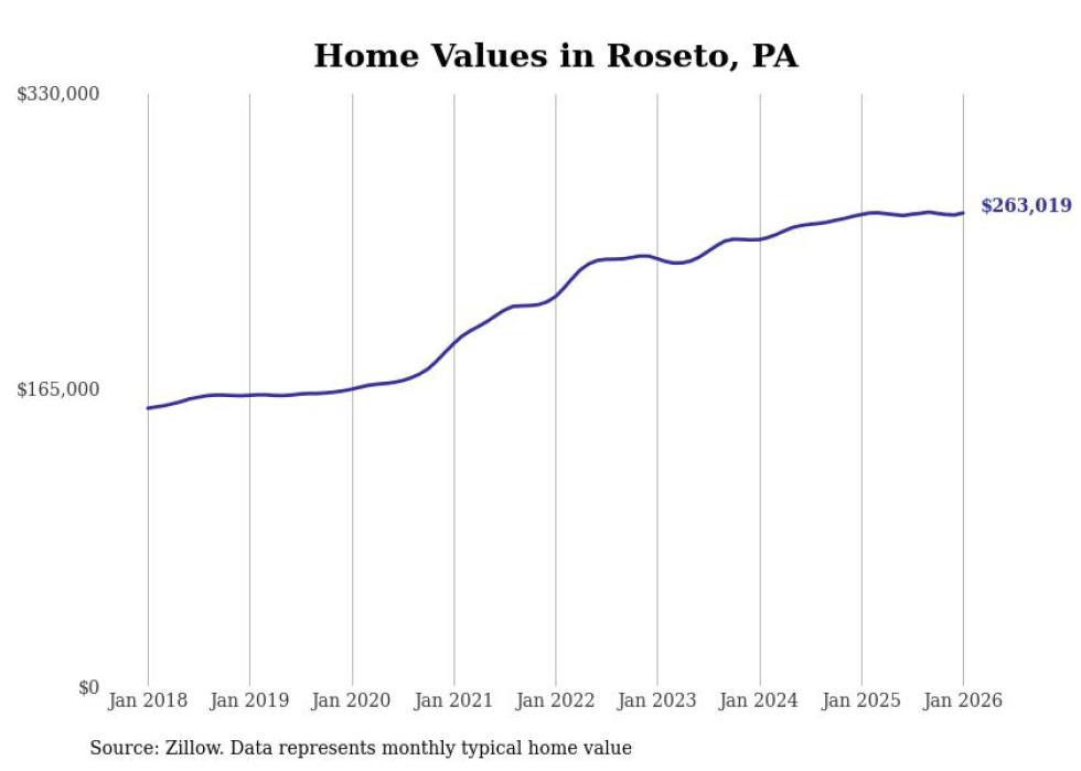 Stacker compiled a list of cities with the most expensive homes in the Allentown metro area using data from Zillow. Charts show the monthly typical home value since January 2018. Data was available for 42 cities and towns.