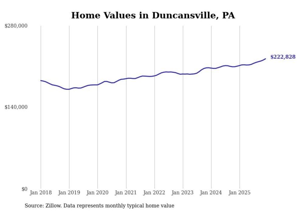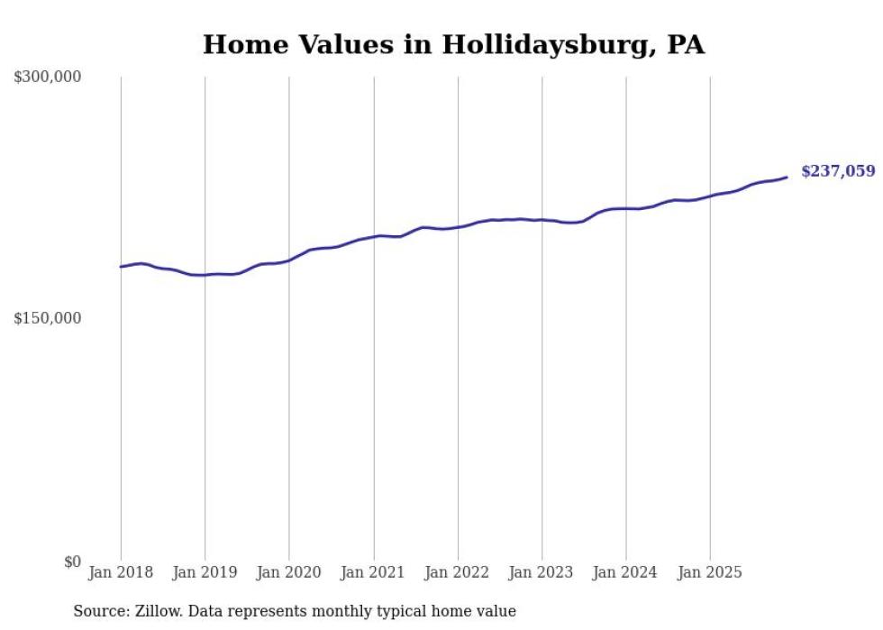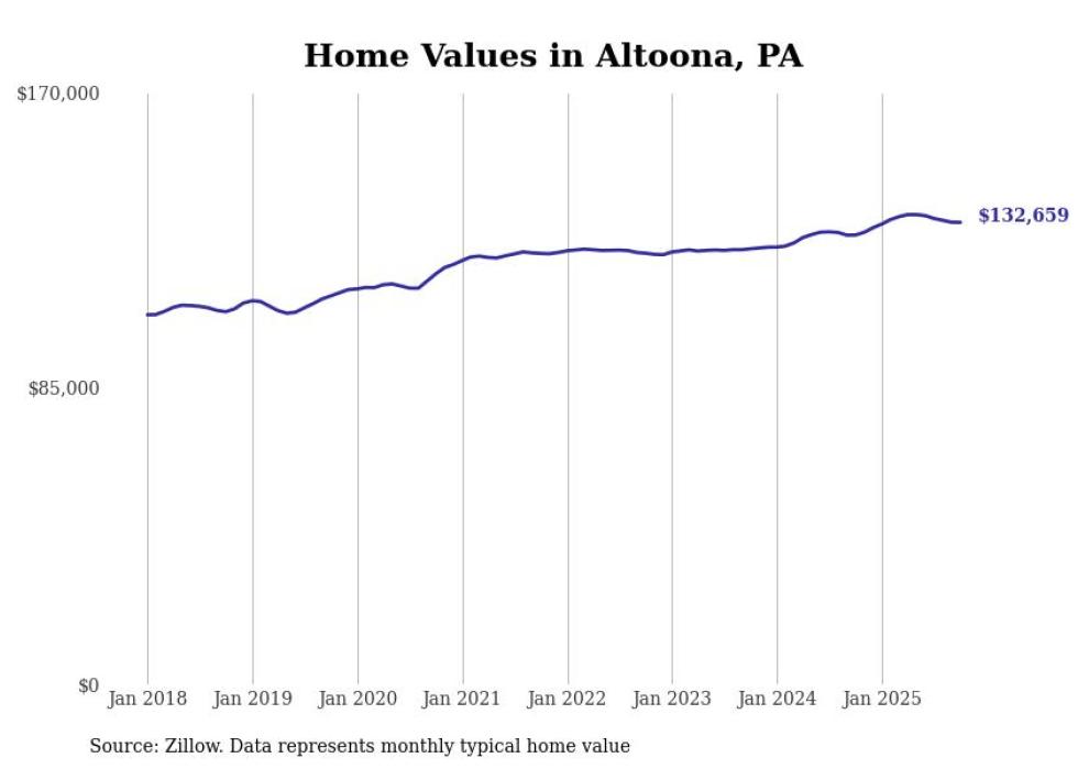Stacker compiled a list of cities with the most expensive homes in the Altoona, PA metro area using data from Zillow. Charts show the monthly typical home value since January 2018.