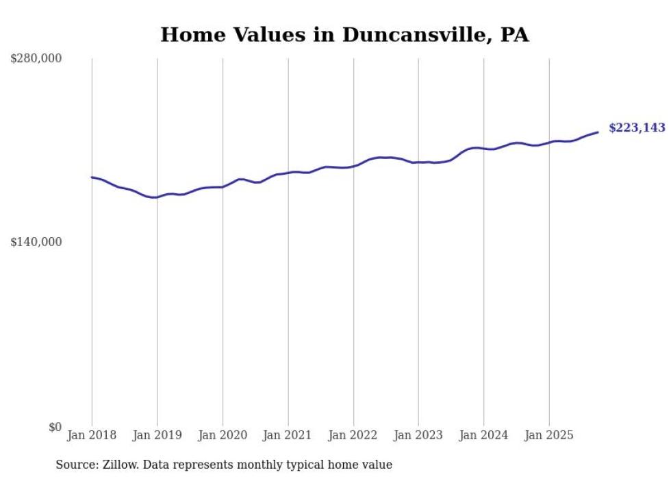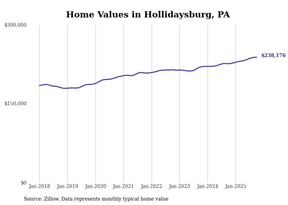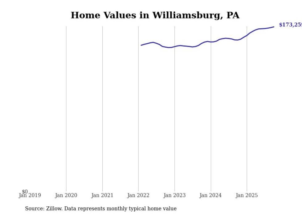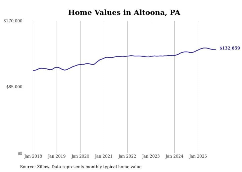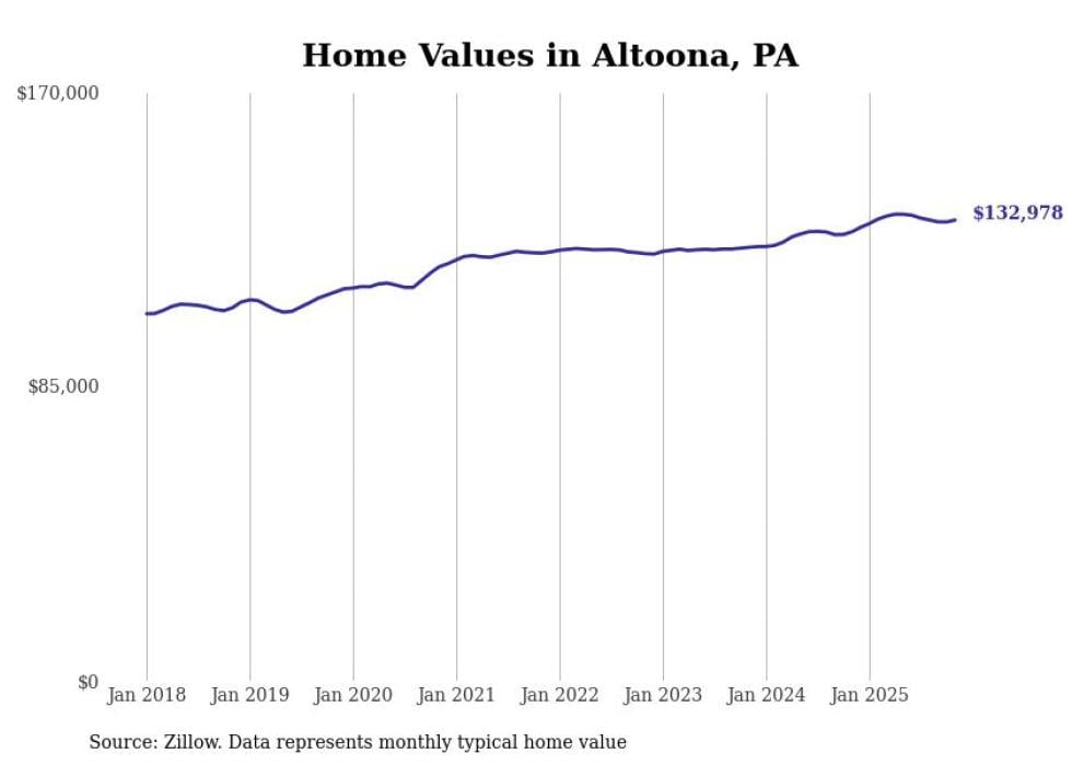 Stacker compiled a list of cities with the most expensive homes in the Altoona metro area using data from Zillow. Charts show the monthly typical home value since January 2018. All 8 cities and towns with data available were included in the list.