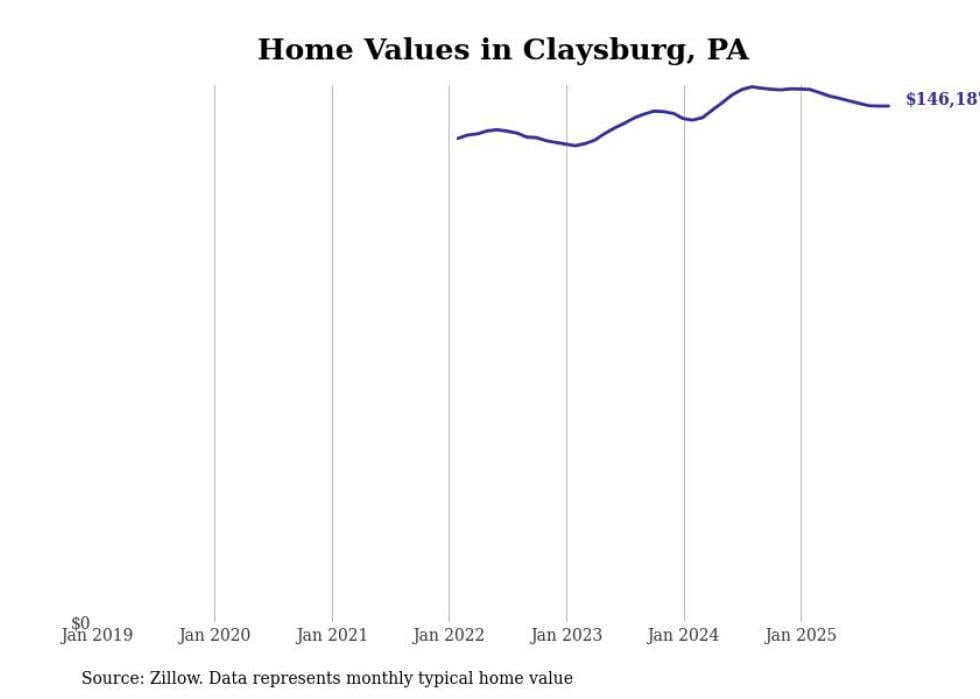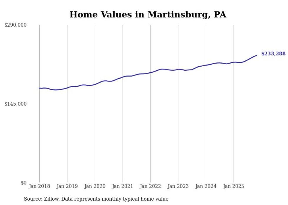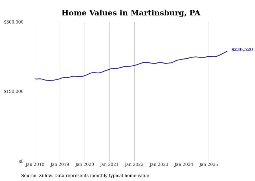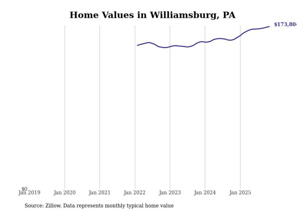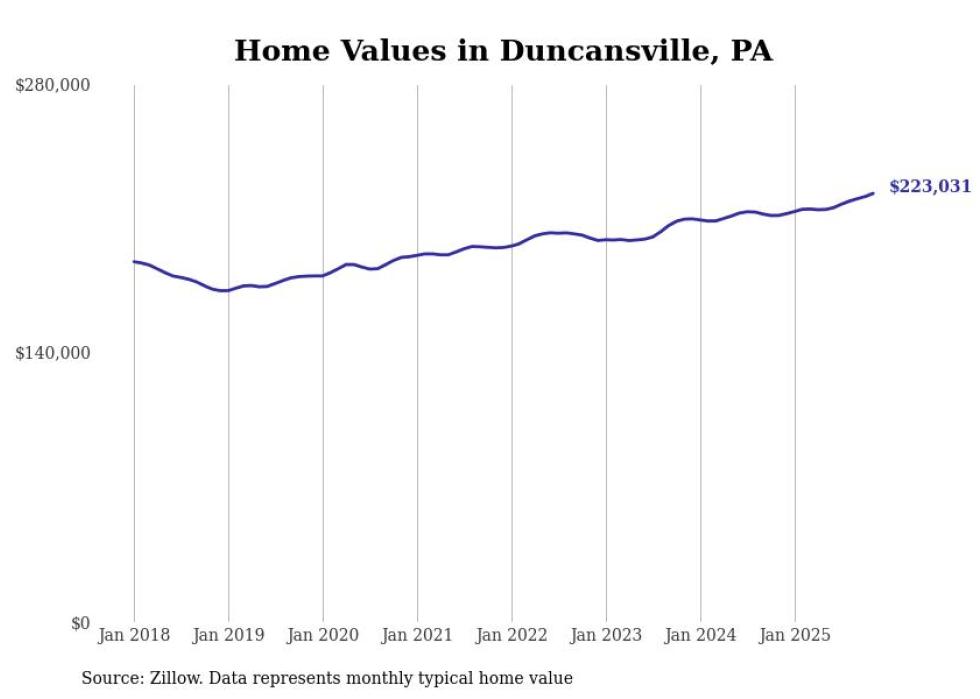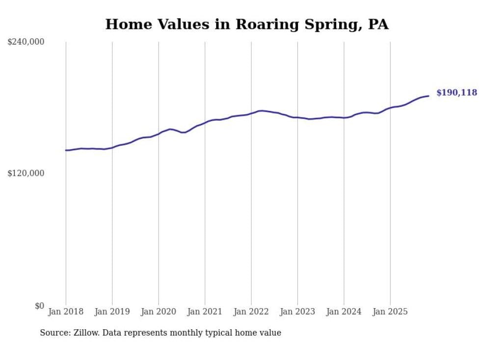 Stacker compiled a list of cities with the most expensive homes in the Altoona metro area using data from Zillow. Charts show the monthly typical home value since January 2018. All 8 cities and towns with data available were included in the list.