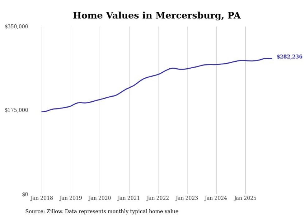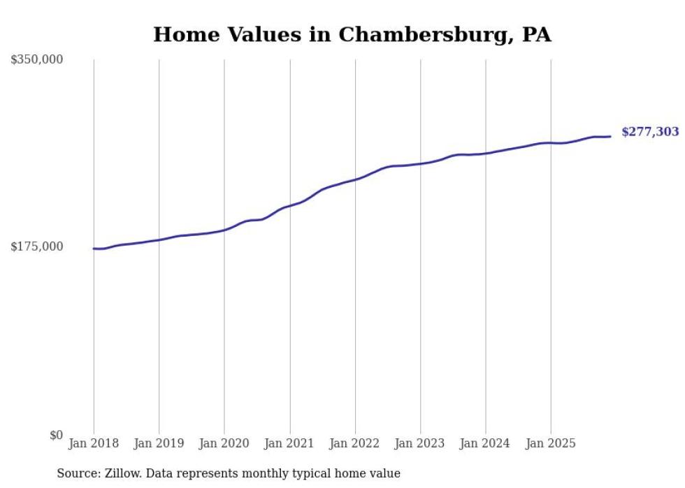 Cities with the fastest-growing home prices in the Chambersburg metro area
