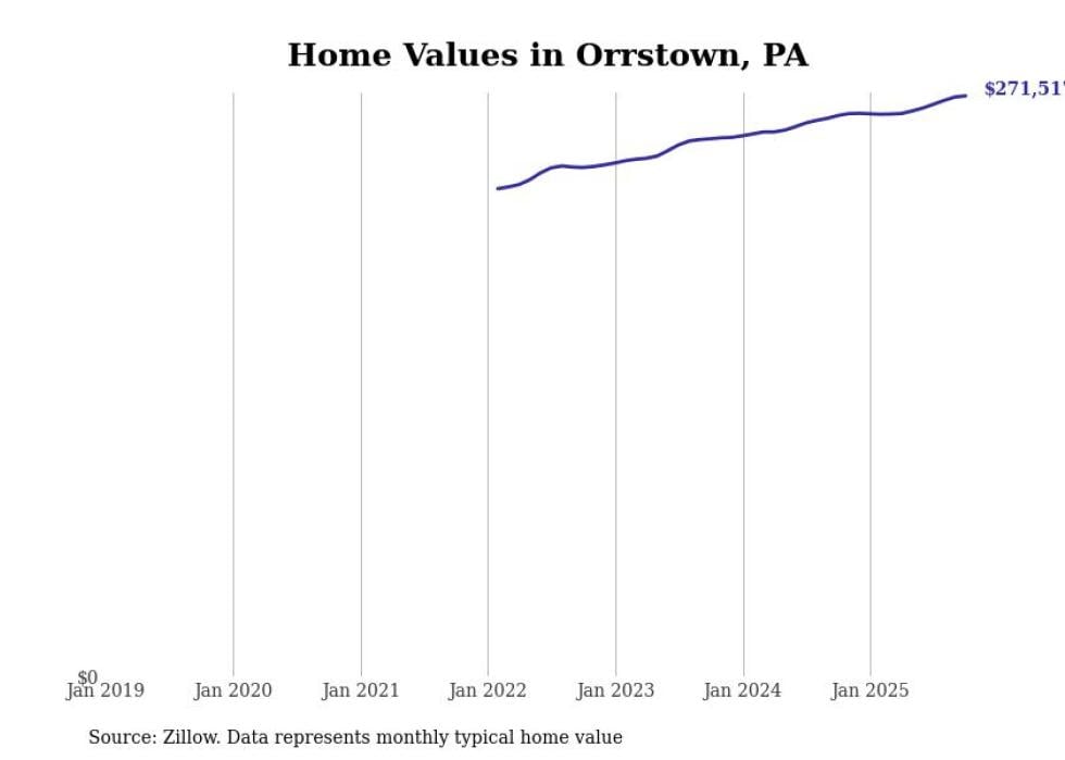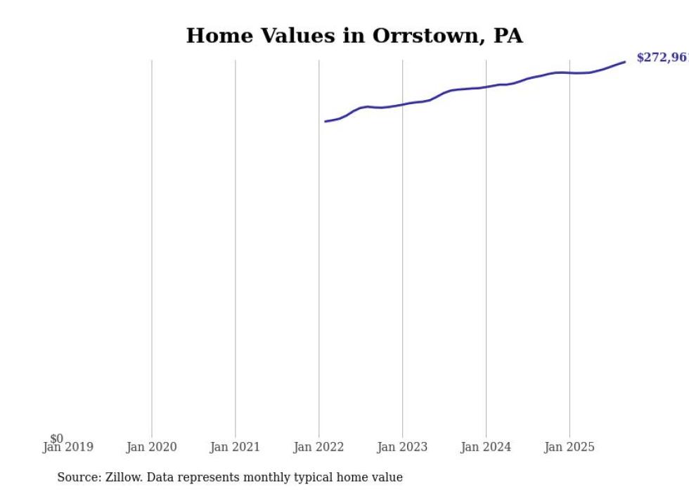 Stacker compiled a list of cities with the most expensive homes in the Chambersburg-Waynesboro, PA metro area using data from Zillow. Charts show the monthly typical home value since January 2018.
