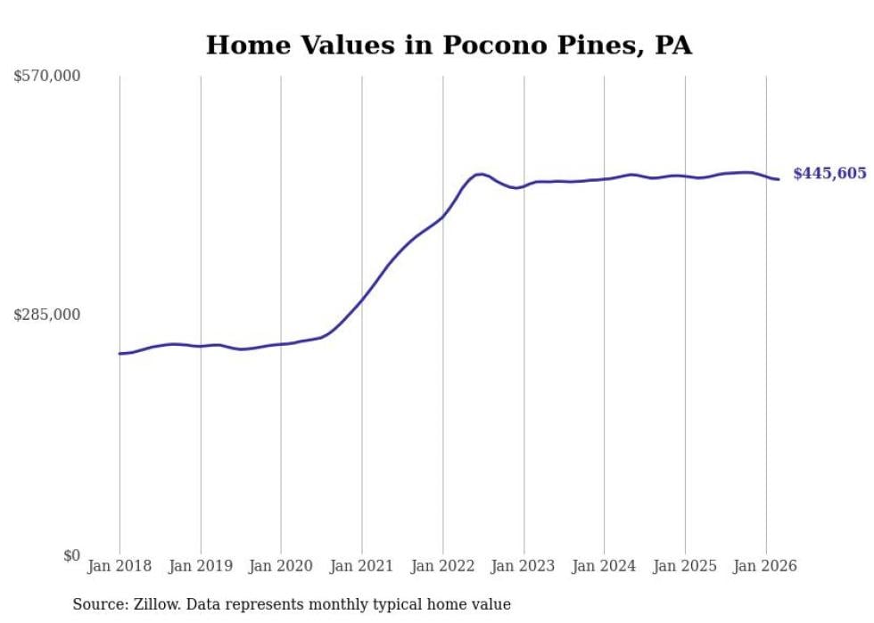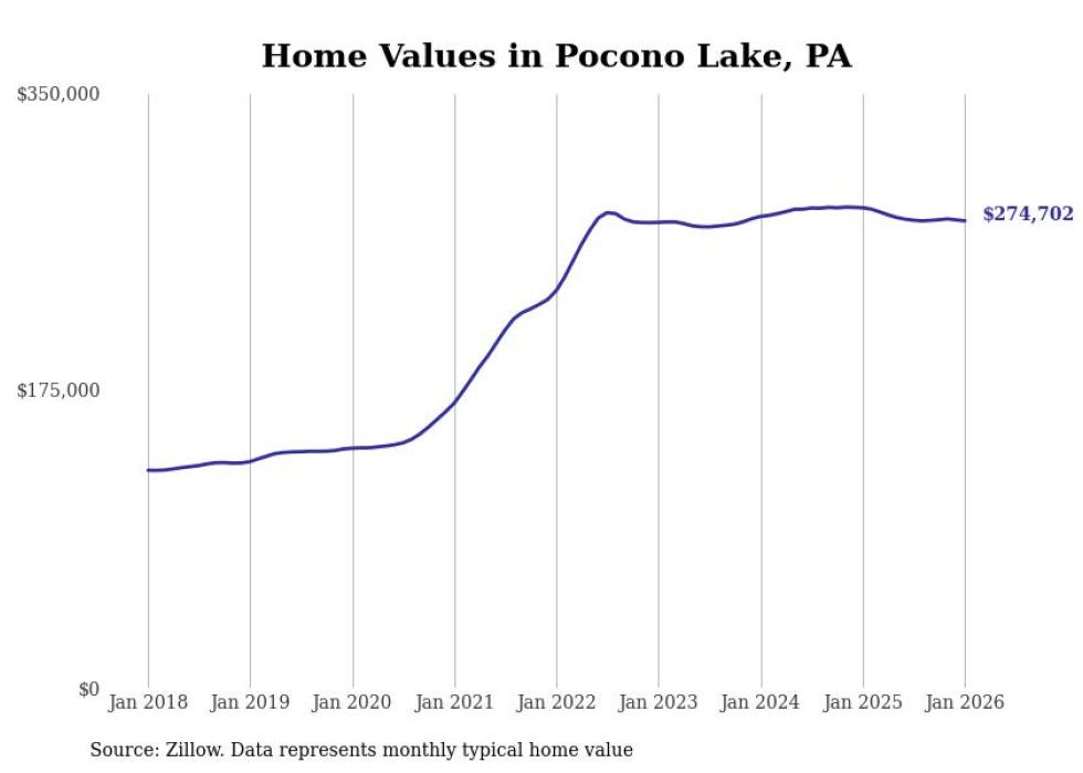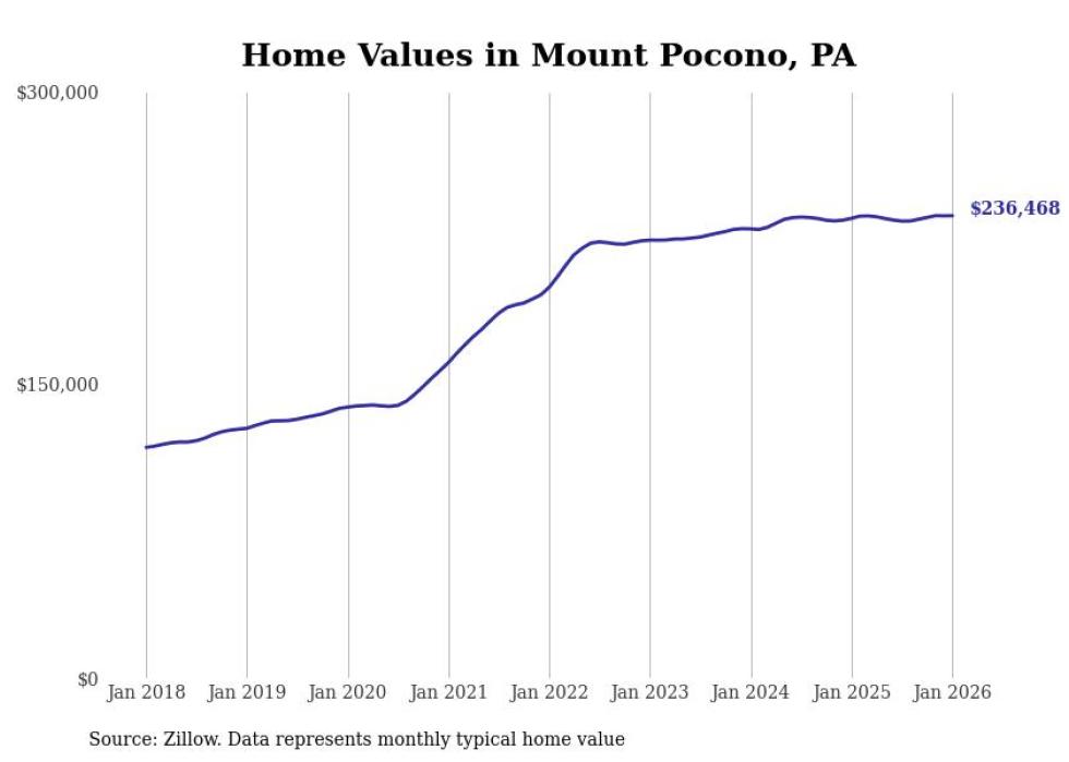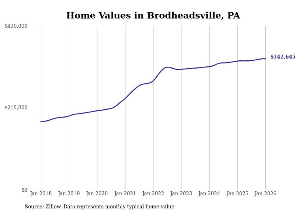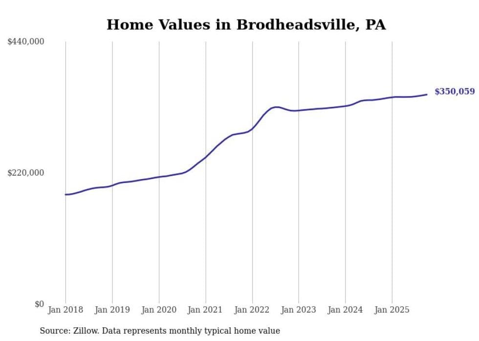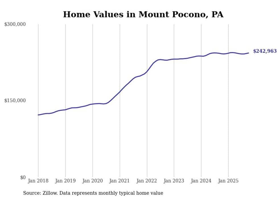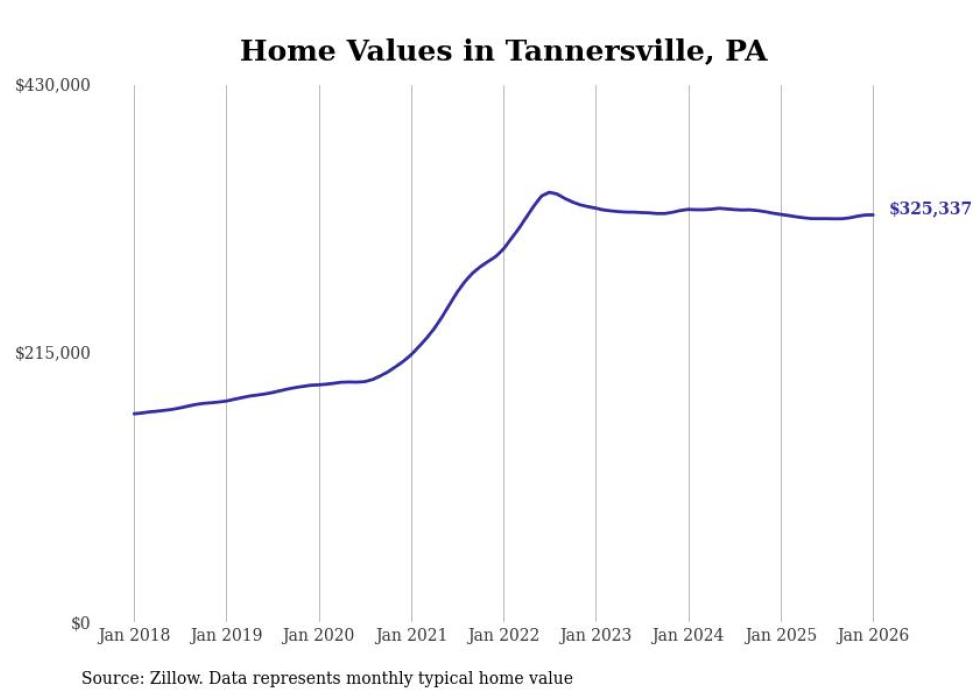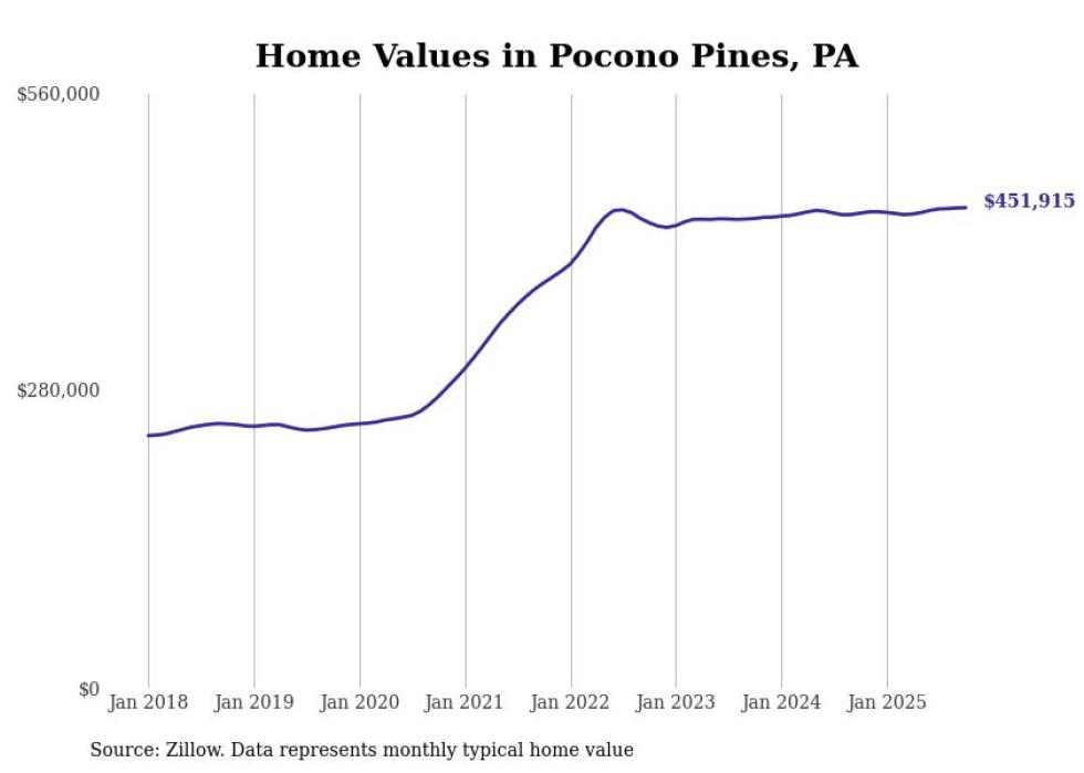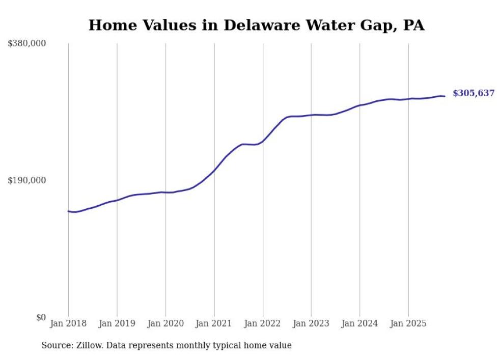 Stacker compiled a list of cities with the most expensive homes in the East Stroudsburg, PA metro area using data from Zillow. Charts show the monthly typical home value since January 2018.