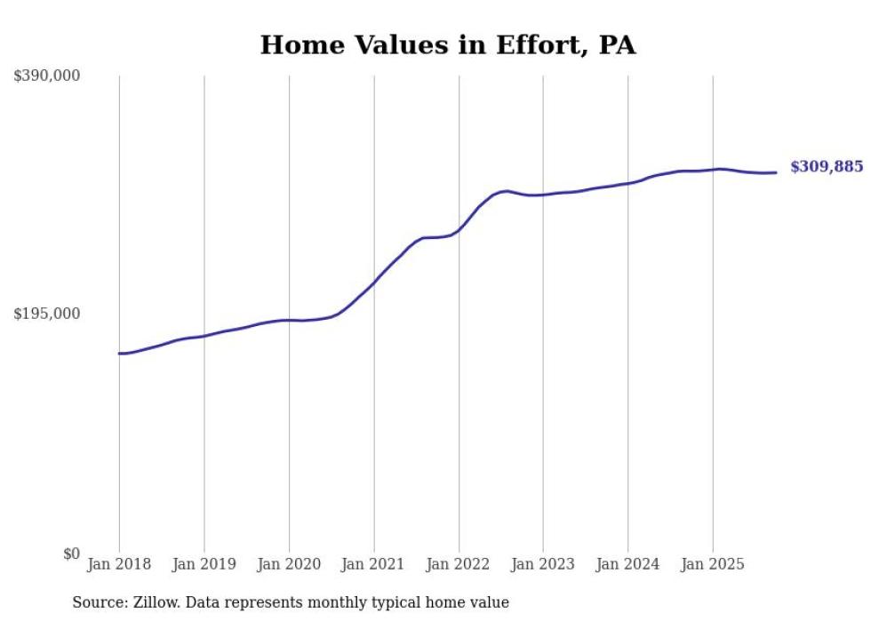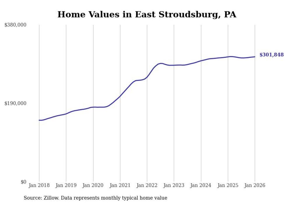 Cities with the fastest-growing home prices in the East Stroudsburg metro area