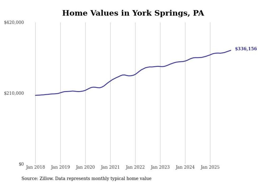 Stacker compiled a list of cities with the most expensive homes in the Gettysburg, PA metro area using data from Zillow. Charts show the monthly typical home value since January 2018.
