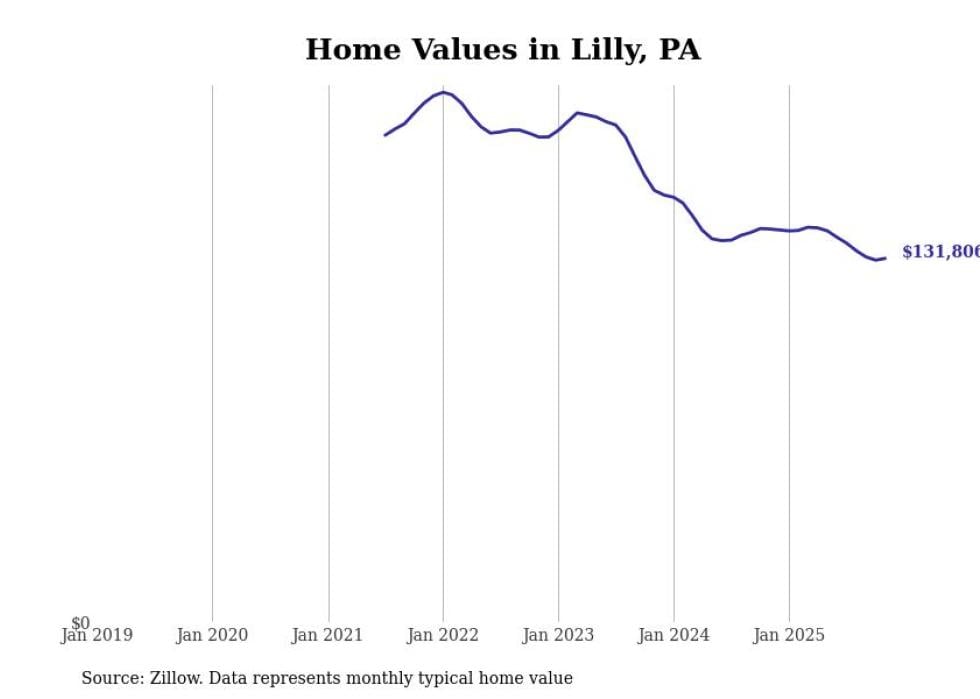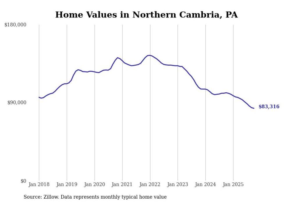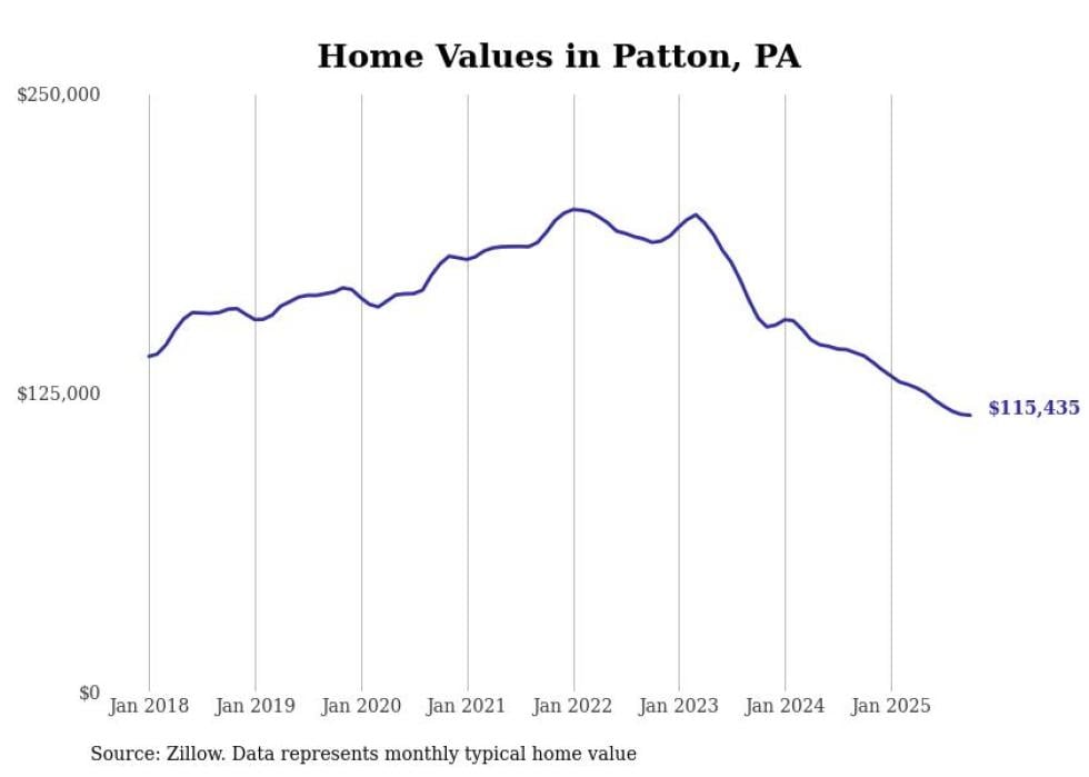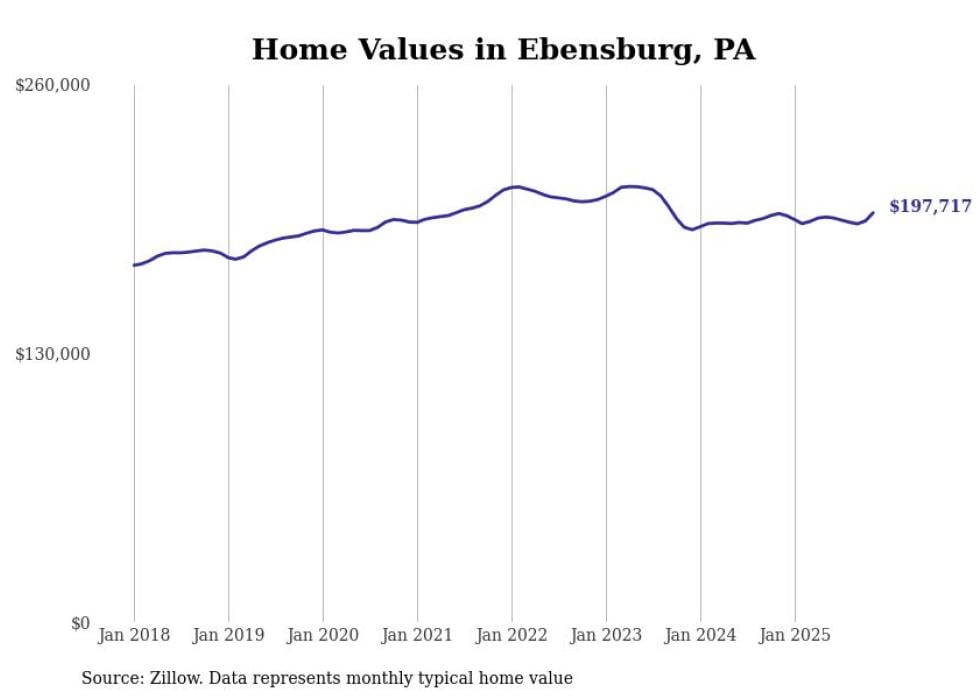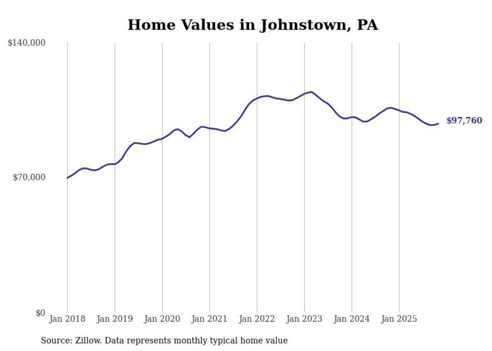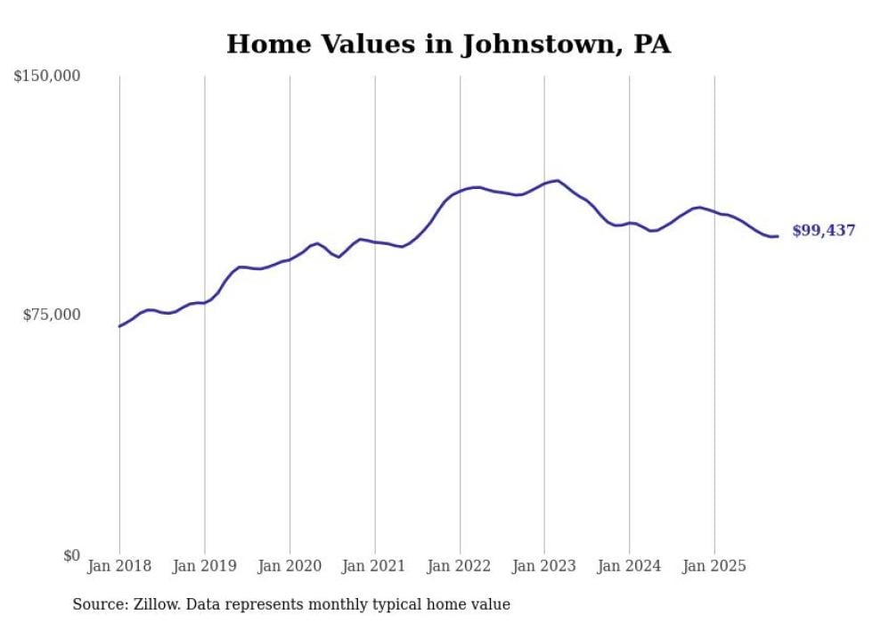Stacker compiled a list of cities with the most expensive homes in the Johnstown, PA metro area using data from Zillow. Charts show the monthly typical home value since January 2018.