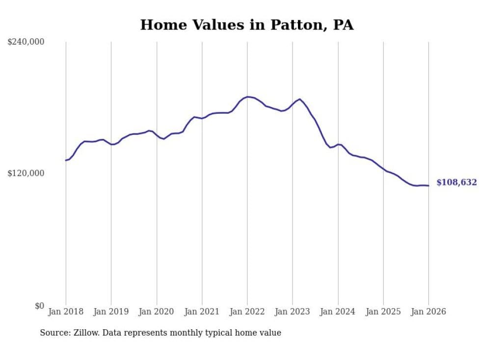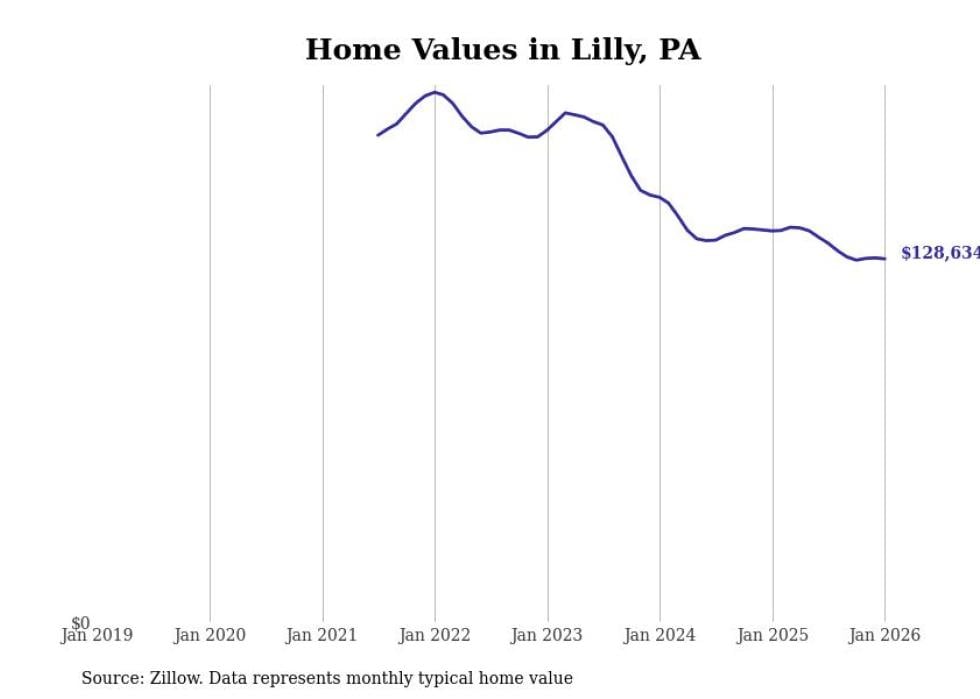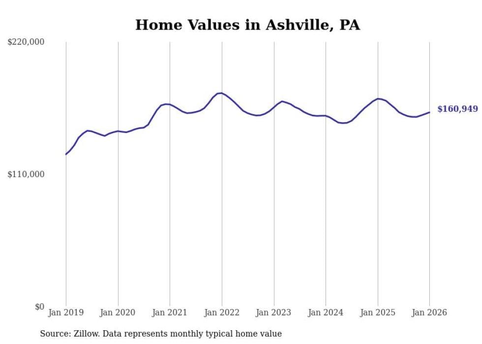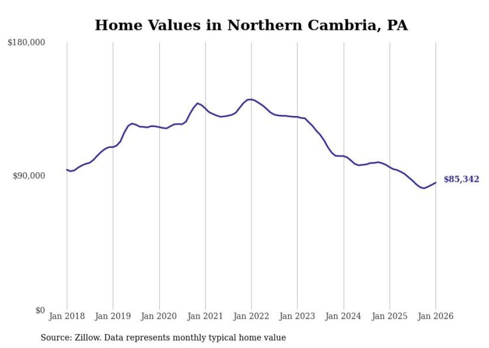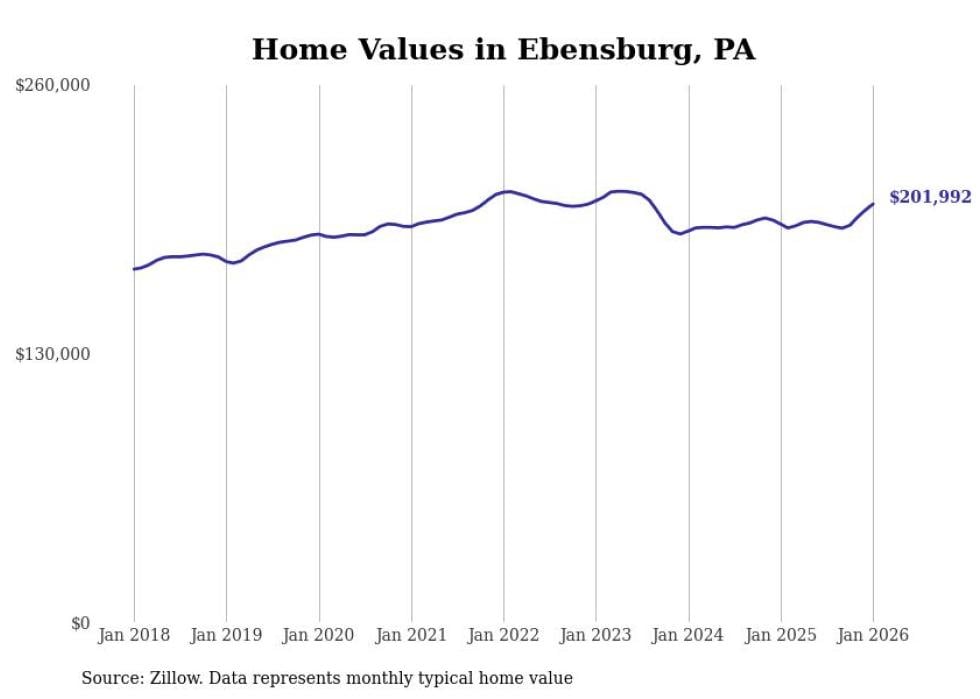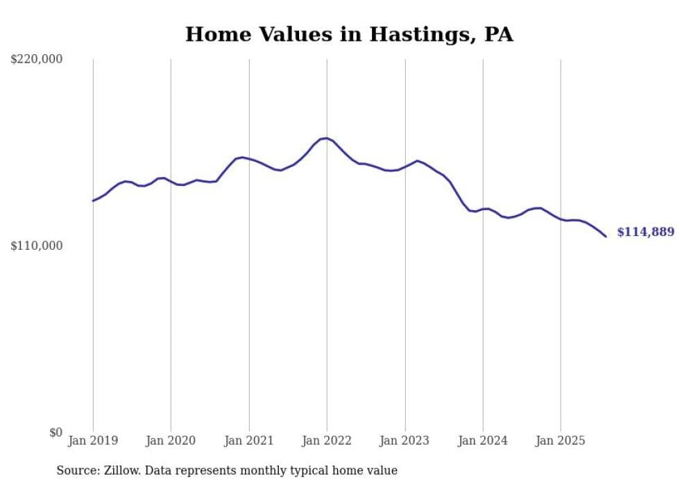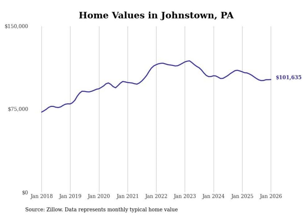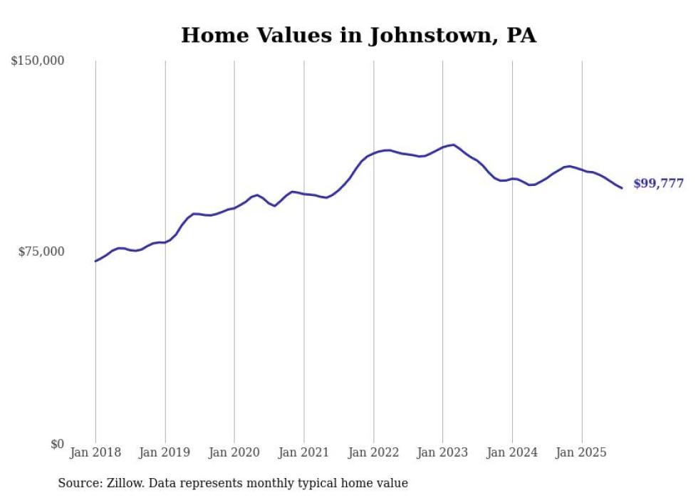 Stacker compiled a list of cities with the most expensive homes in the Johnstown metro area using data from Zillow. Charts show the monthly typical home value since January 2018. All 8 cities and towns with data available were included in the list.