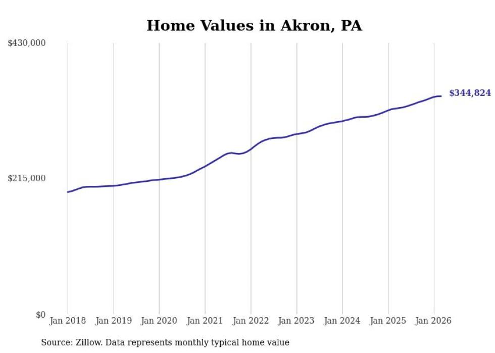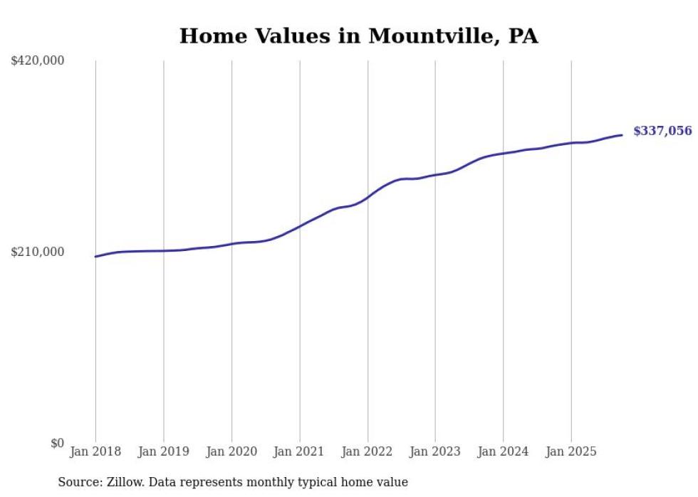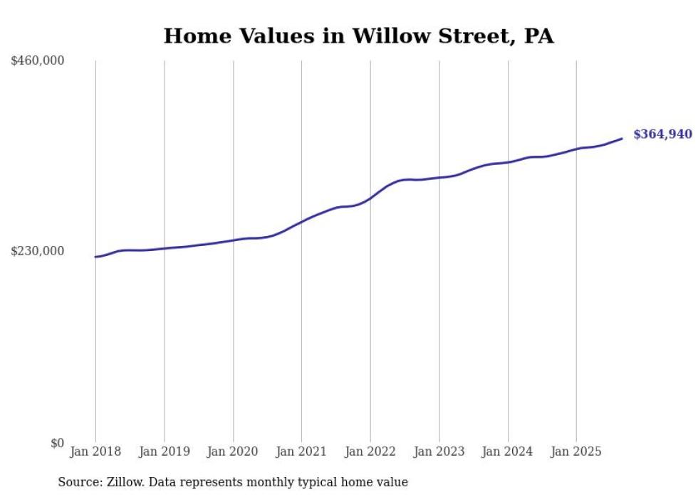 Stacker compiled a list of cities with the most expensive homes in the Lancaster metro area using data from Zillow. Charts show the monthly typical home value since January 2018. All 17 cities and towns with data available were included in the list.