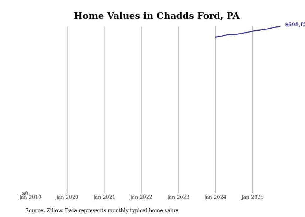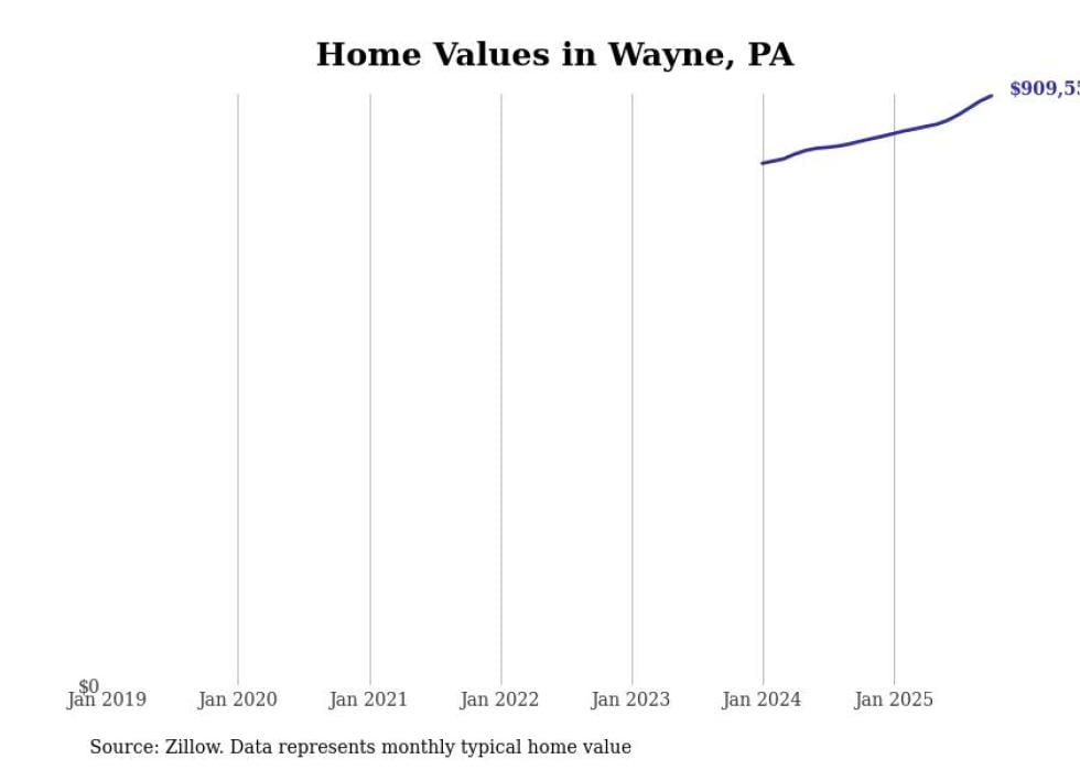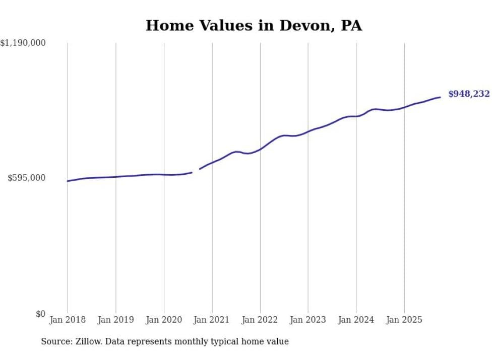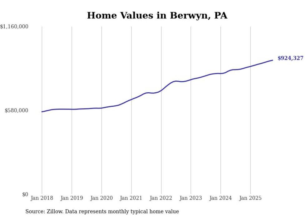 Stacker compiled a list of cities with the most expensive homes in the Philadelphia-Camden-Wilmington, PA-NJ-DE-MD metro area using data from Zillow. Charts show the monthly typical home value since January 2018.