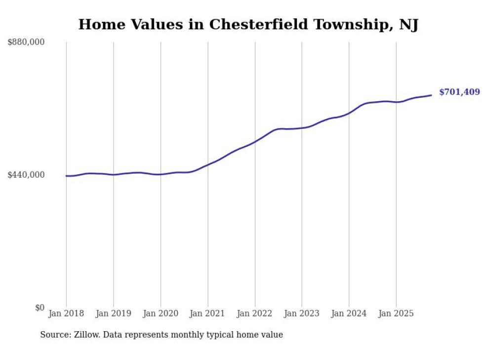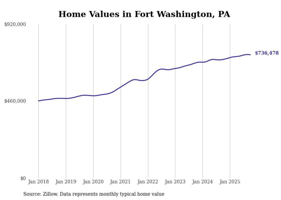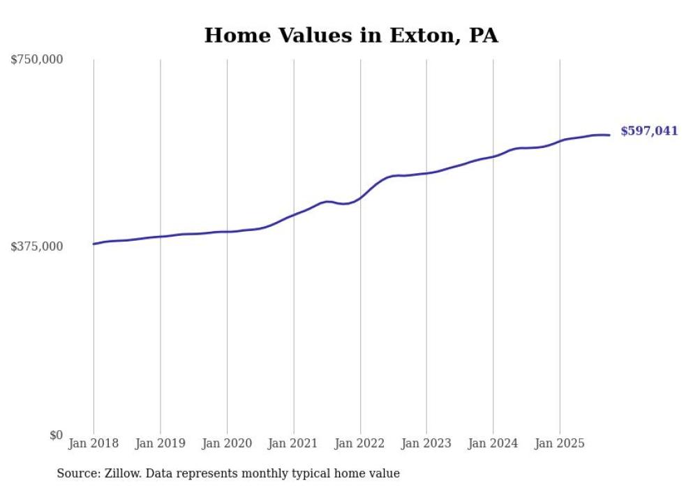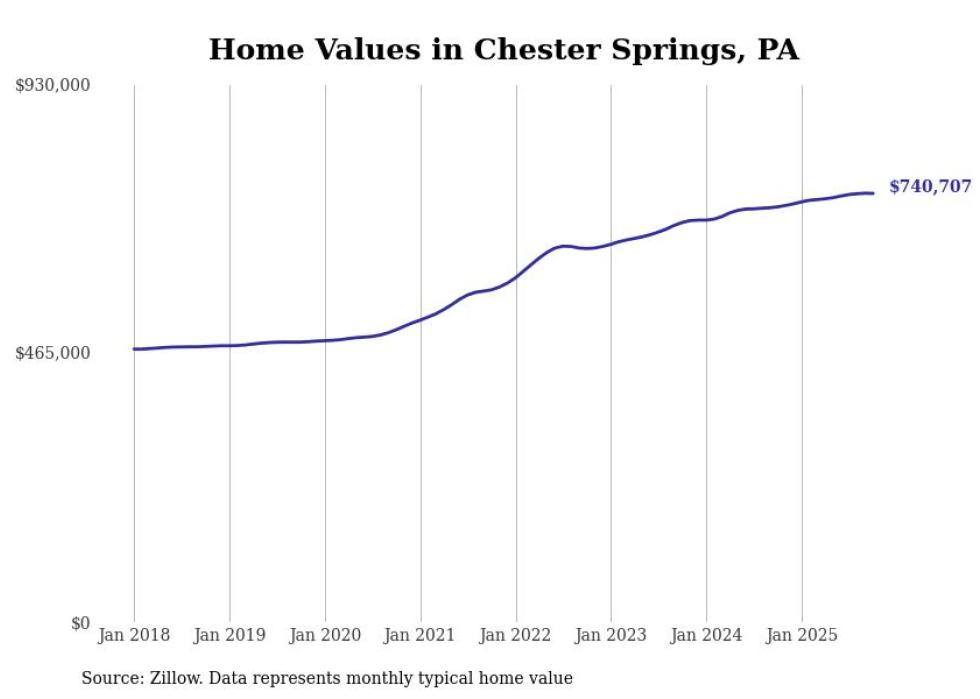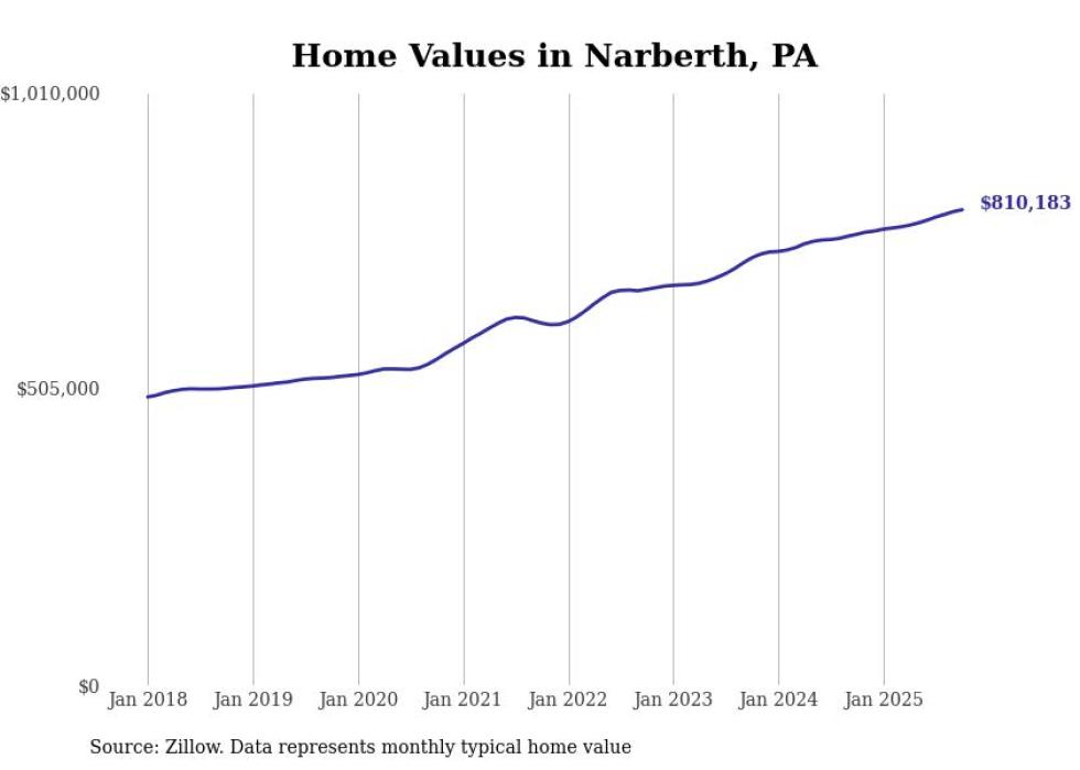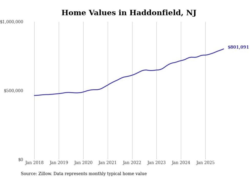 Stacker compiled a list of cities with the most expensive homes in the Philadelphia metro area using data from Zillow. Charts show the monthly typical home value since January 2018. Data was available for 235 cities and towns.