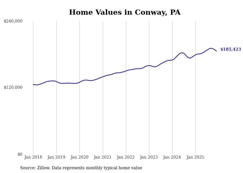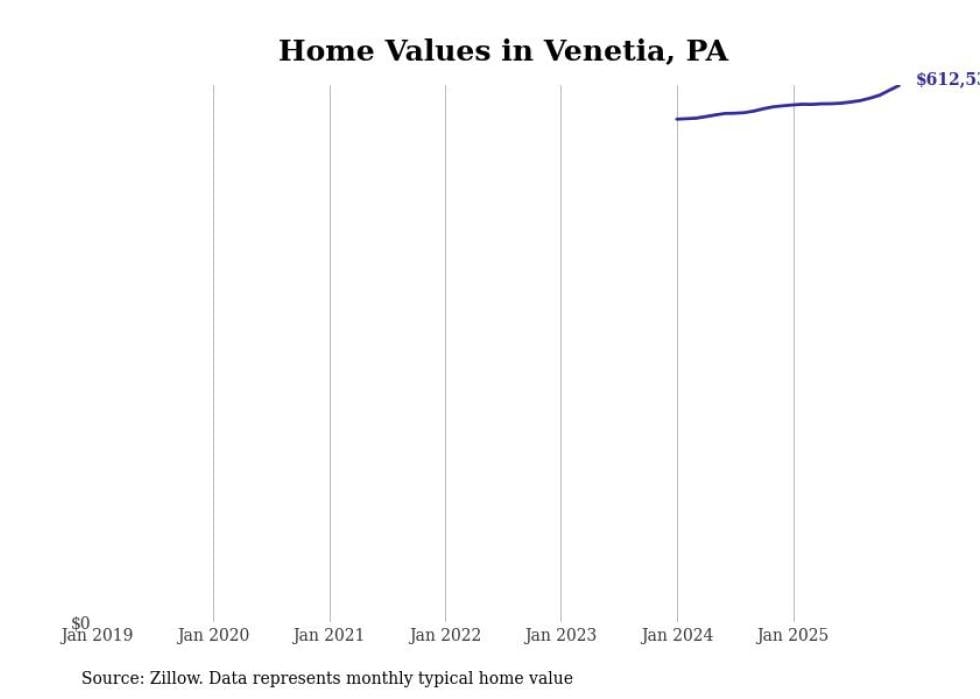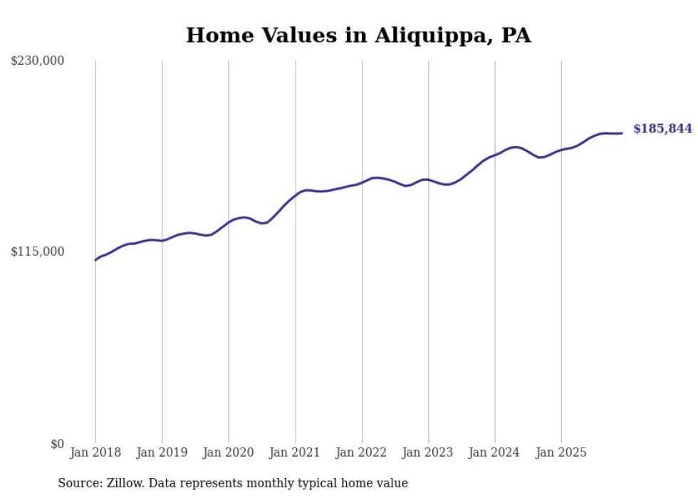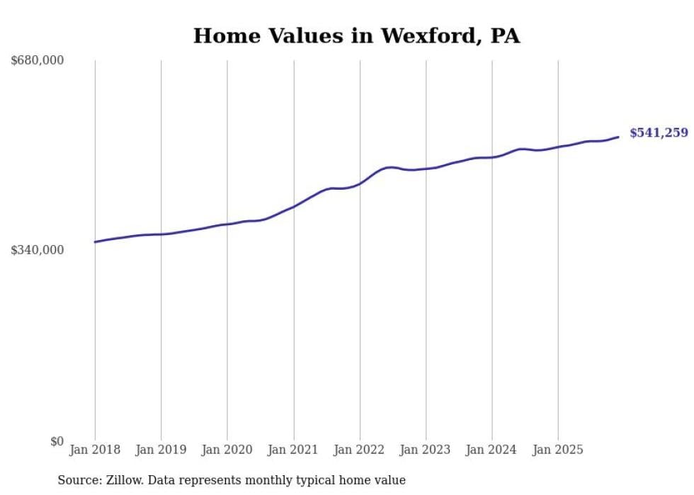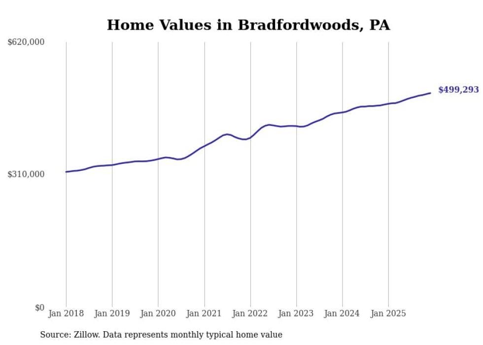 Stacker compiled a list of cities with the most expensive homes in the Pittsburgh, PA metro area using data from Zillow. Charts show the monthly typical home value since January 2018.